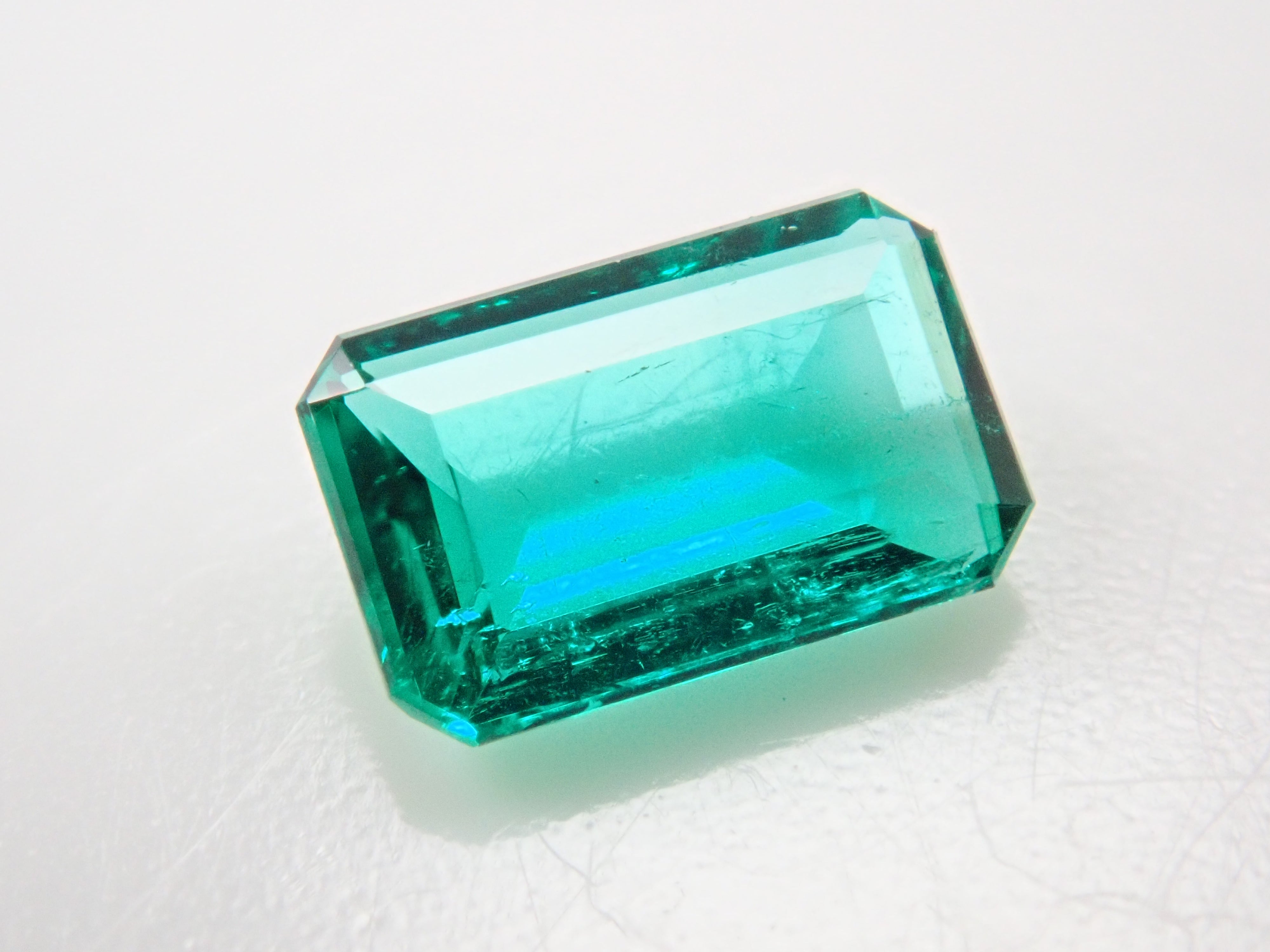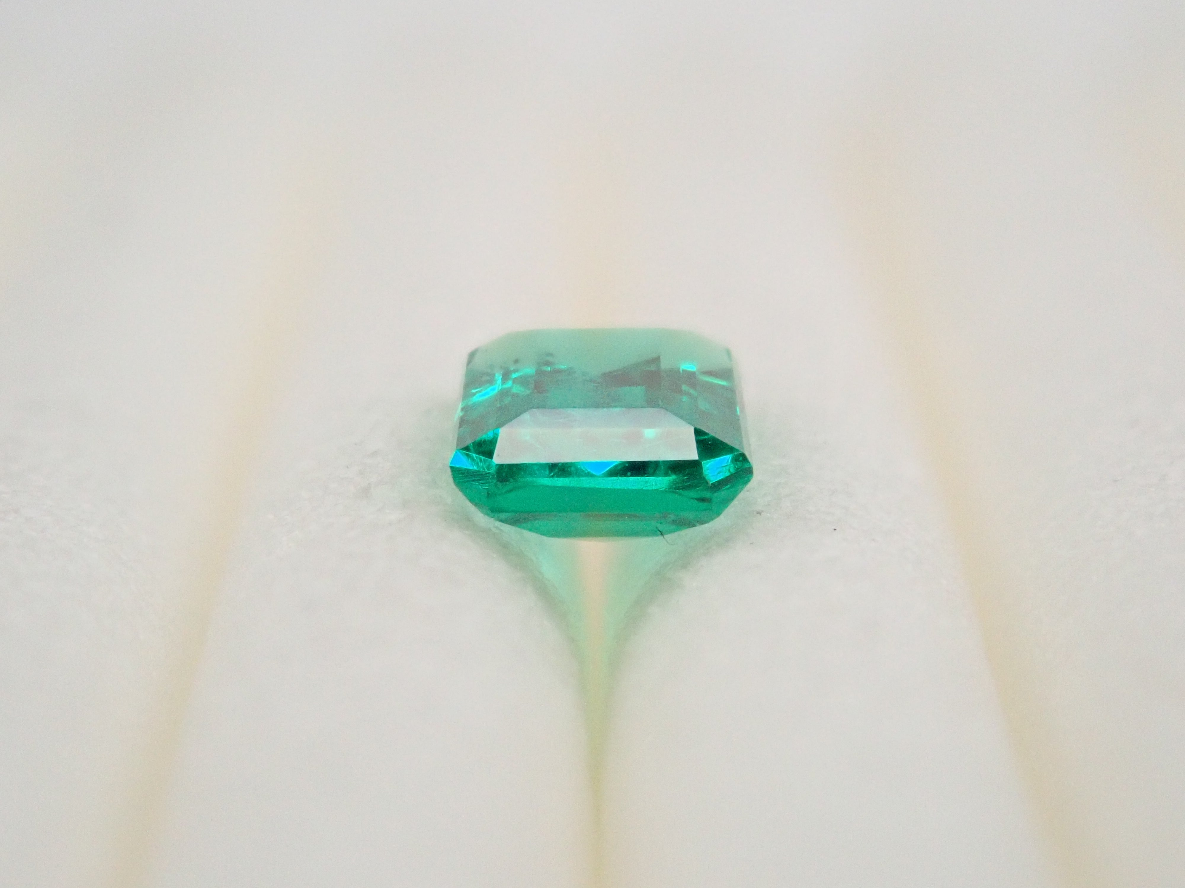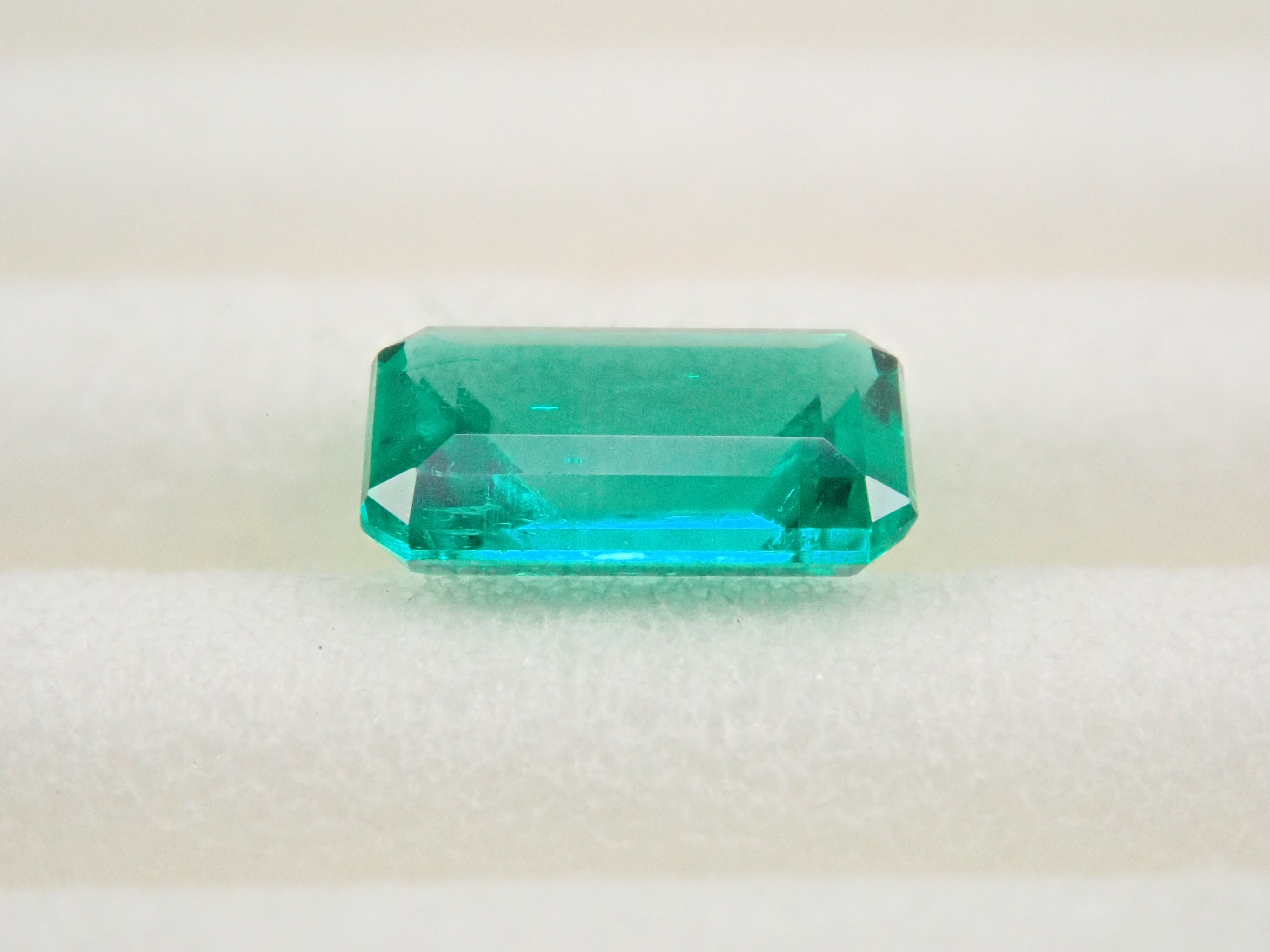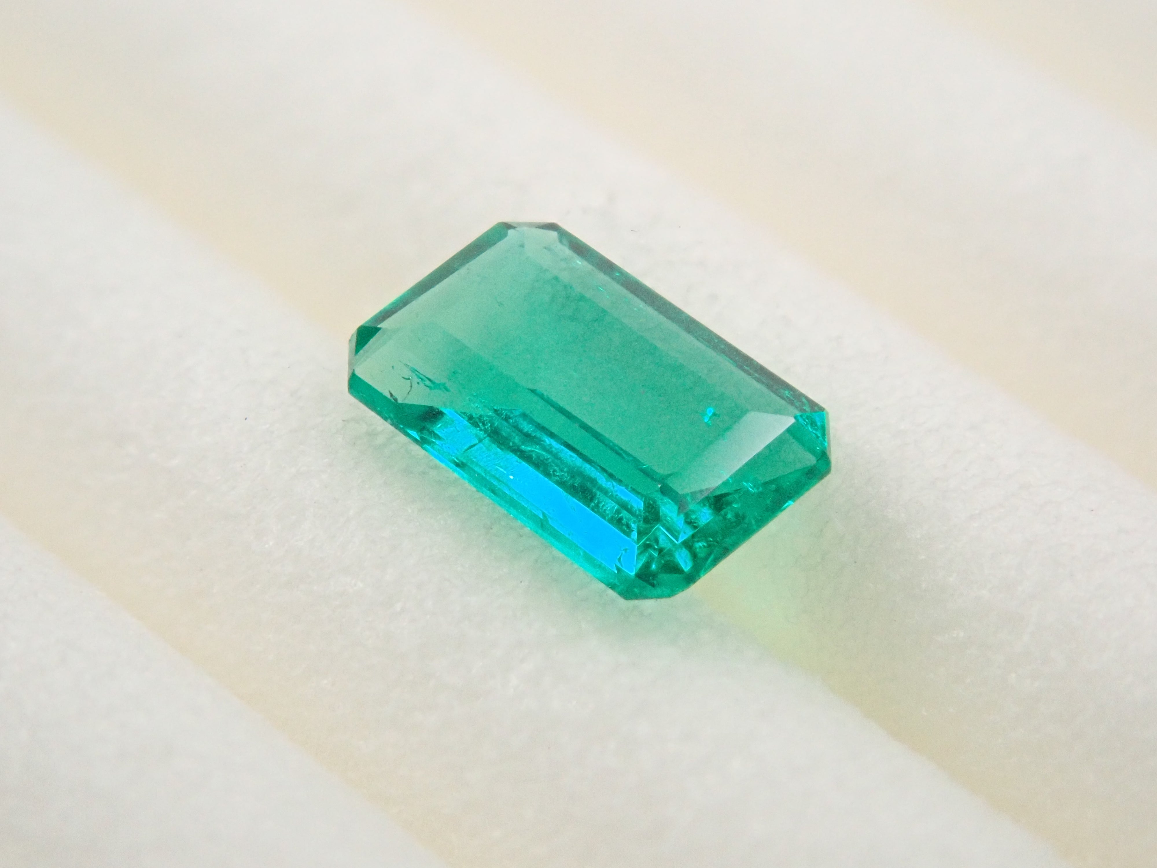 據說祖母綠的美麗綠色會因產地而異。這顆產自哥倫比亞的祖母綠,據說擁有特別深邃的綠色。祖母綠通常容易出現刮痕,因此通常會用油進行處理,使刮痕不那麼明顯。請欣賞它優雅的綠色。