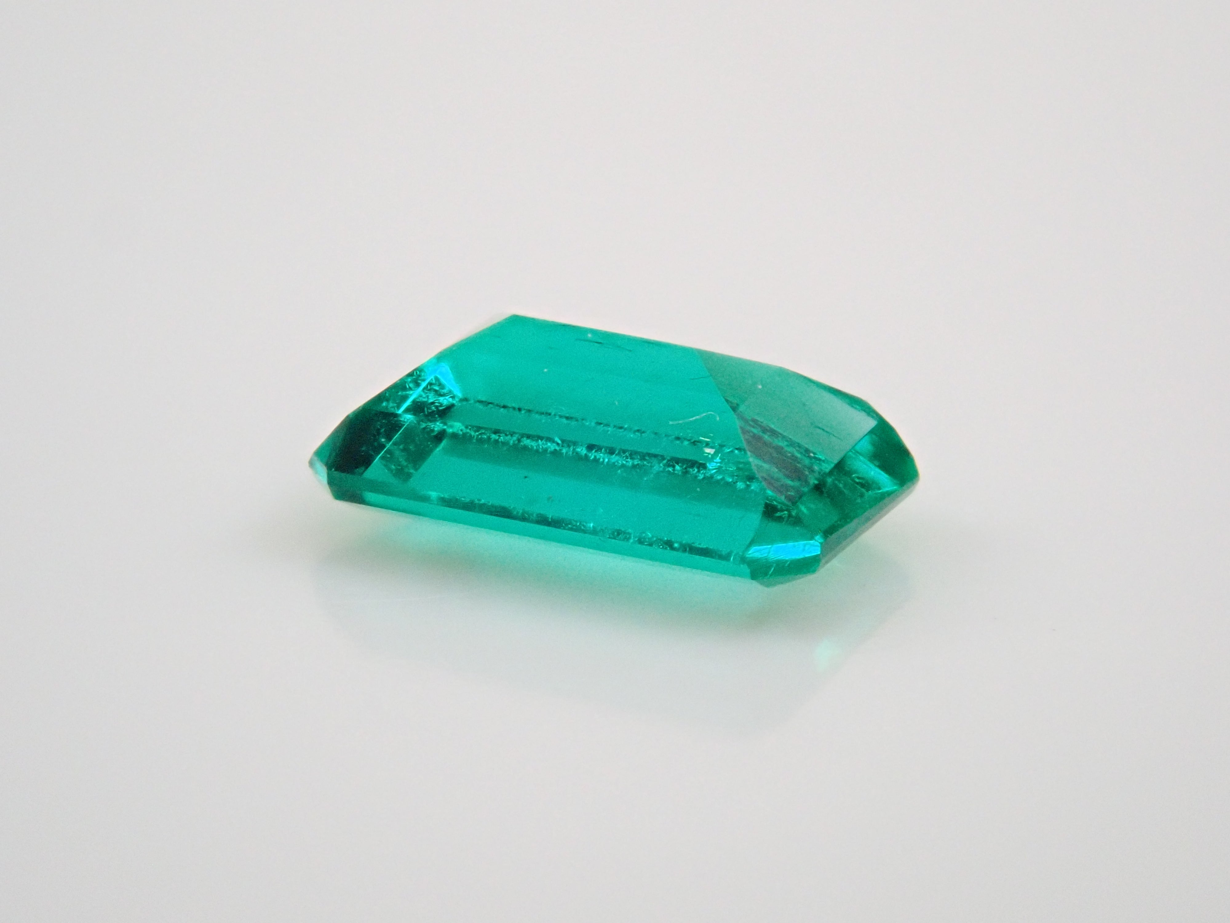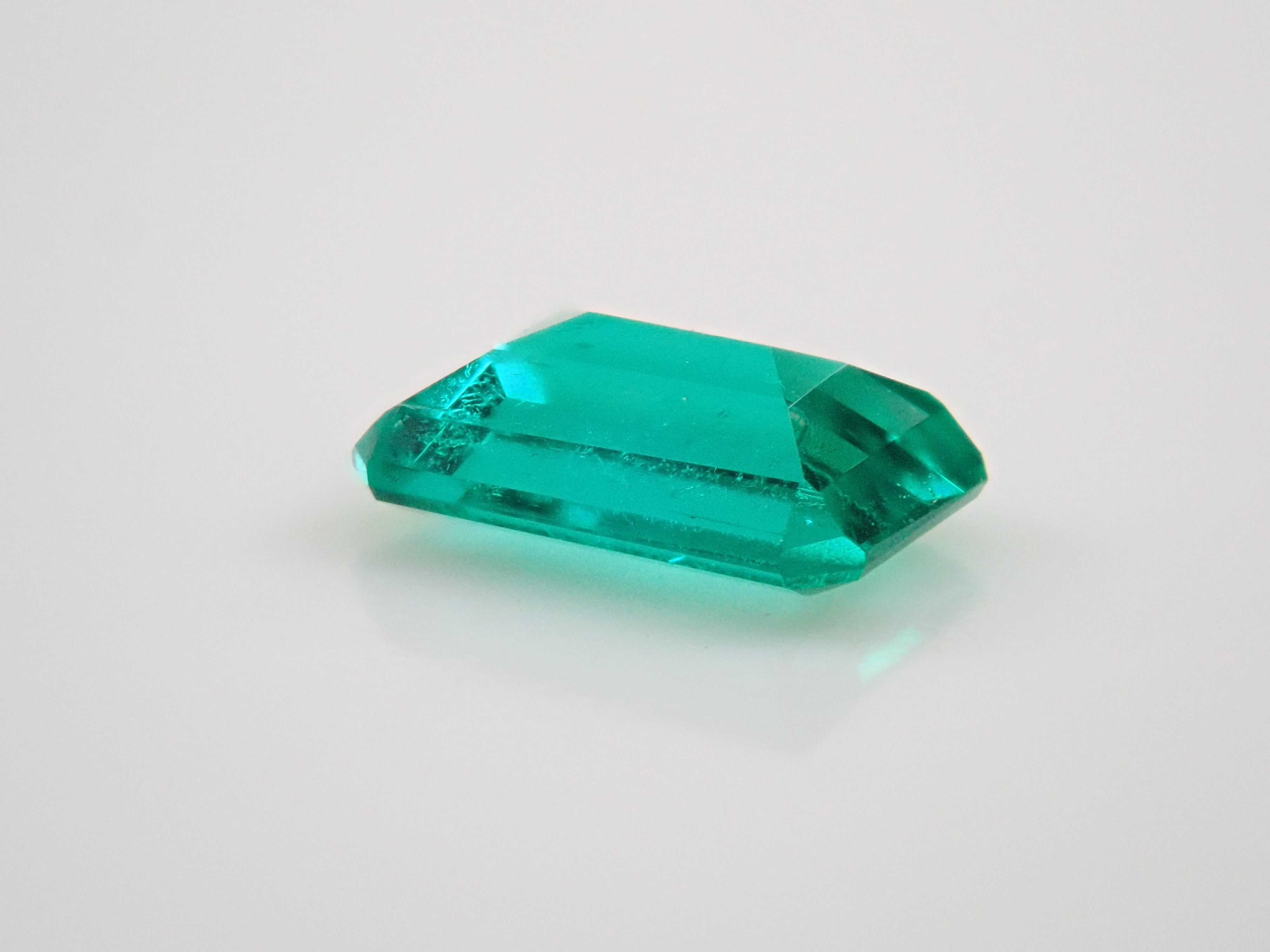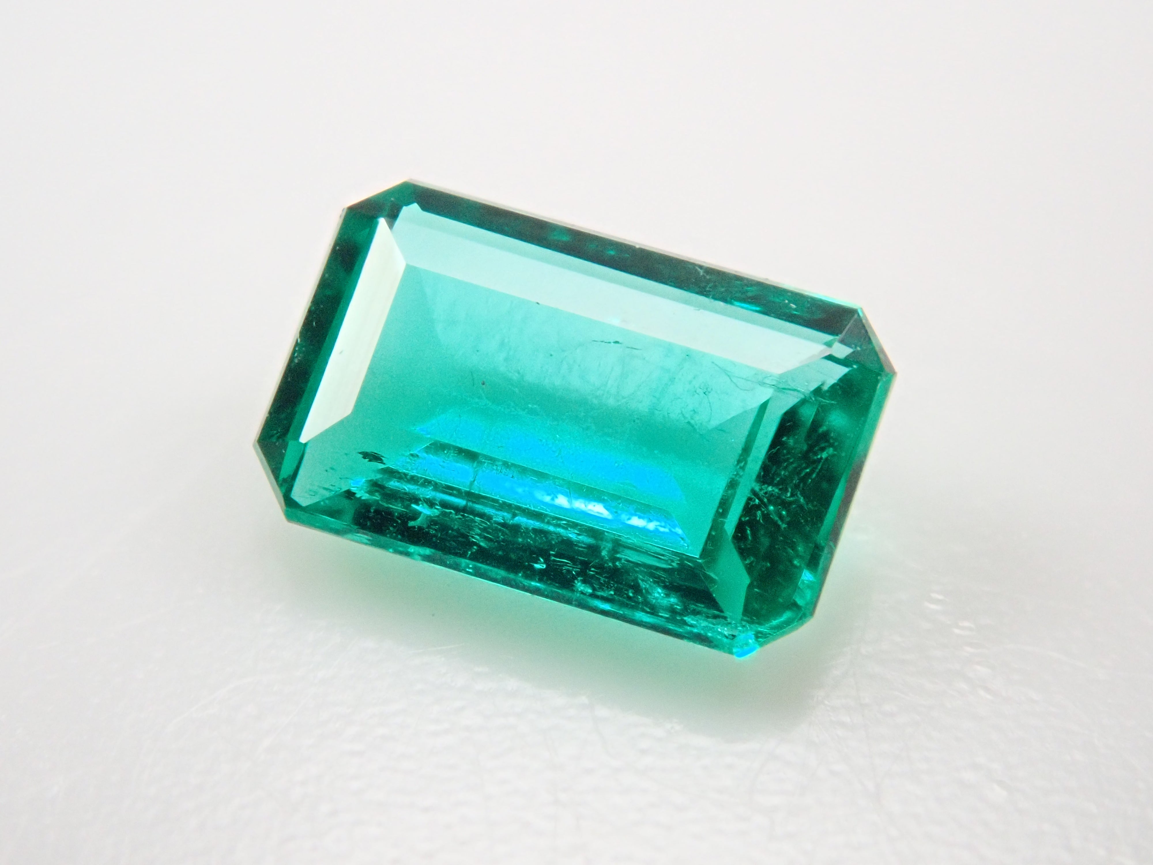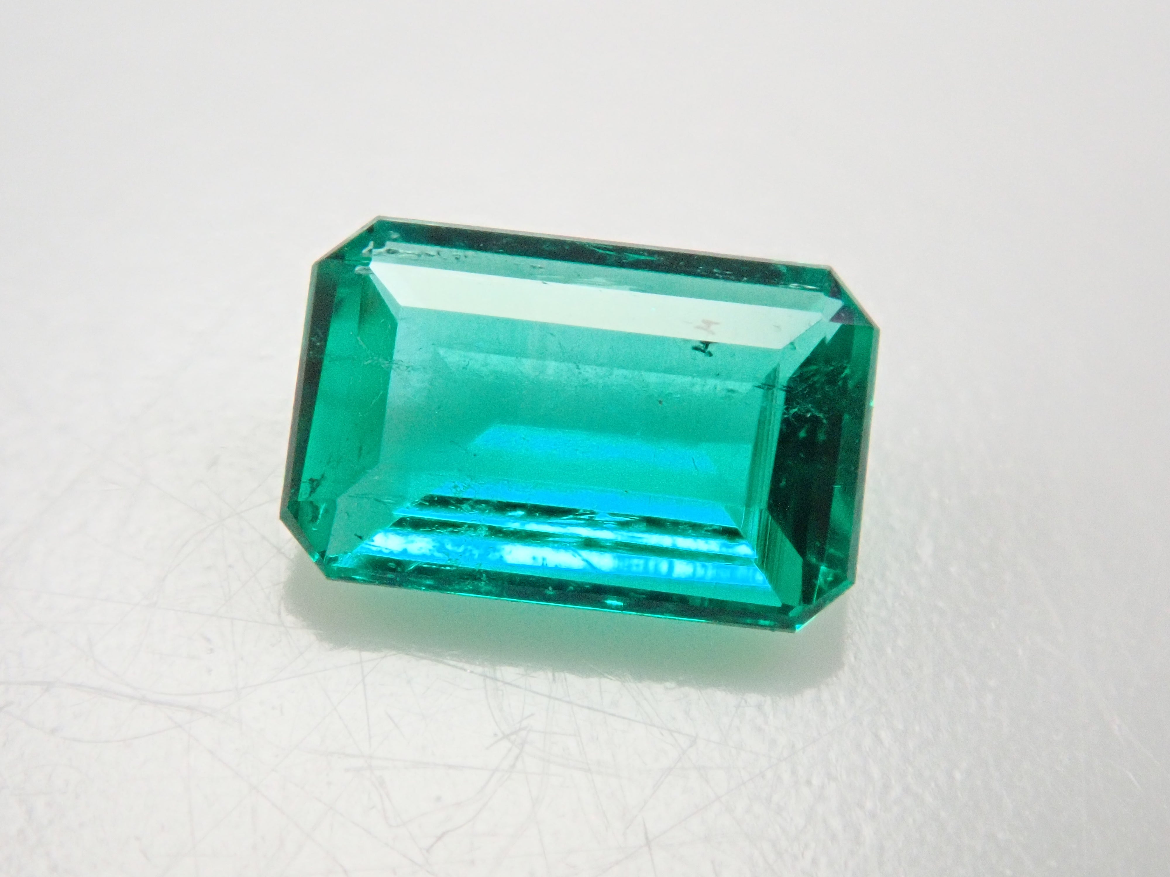 據說祖母綠的美麗綠色會因產地而異。這顆產自哥倫比亞的祖母綠,據說擁有特別深邃的綠色。祖母綠通常容易出現刮痕,因此通常會用油進行處理,使刮痕不那麼明顯。請欣賞它優雅的綠色。