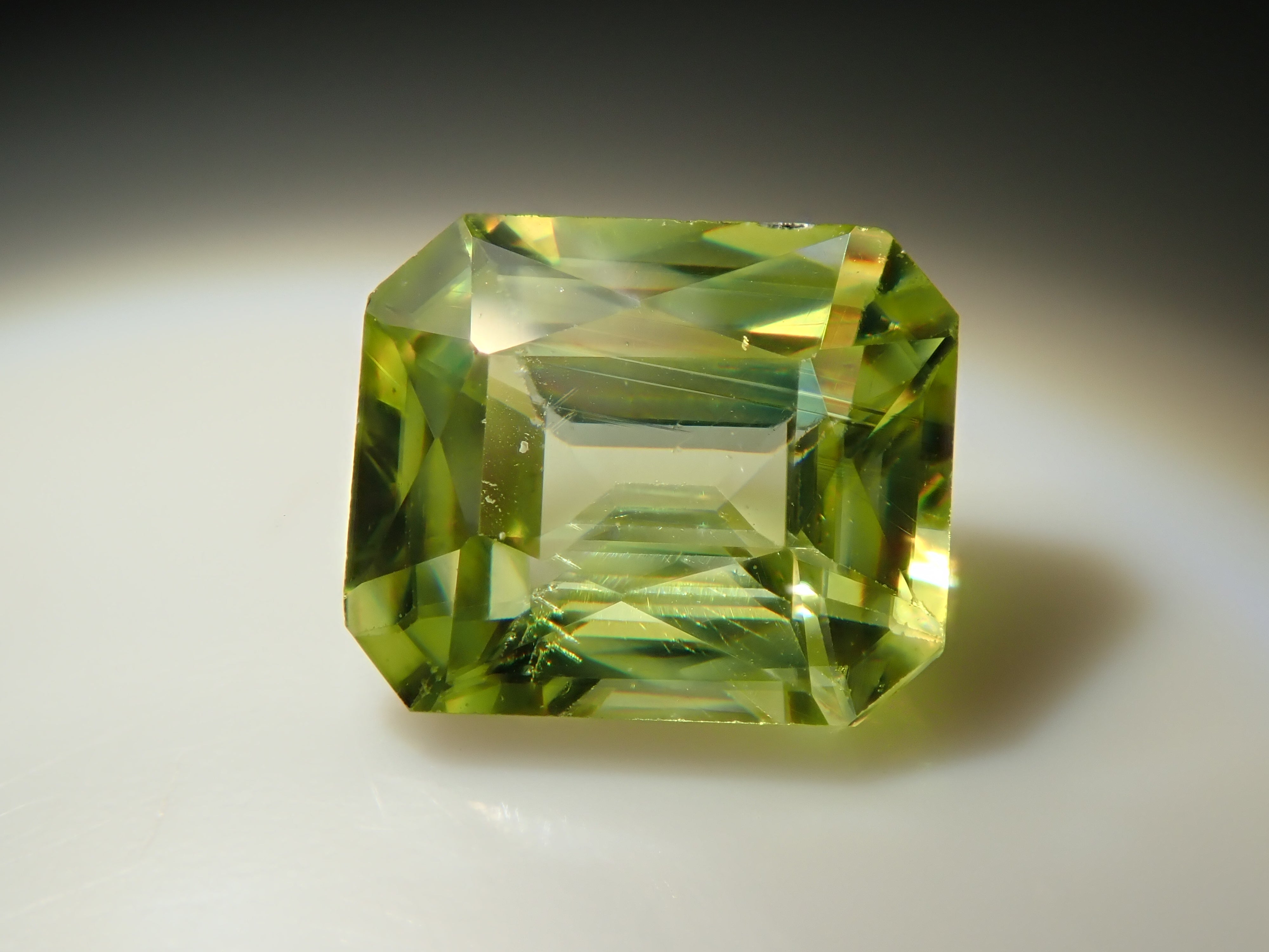 榍石散發著金色的光芒和絢麗的火彩。它是一種魅力十足的寶石,其火彩比鑽石更濃烈,越來越受到收藏家的青睞。榍石的光芒會隨著角度的變化而產生巨大的變化。不妨試試在陽光下用手掌滾動榍石,仔細觀察它。部分照片是用筆型手電筒拍攝的。