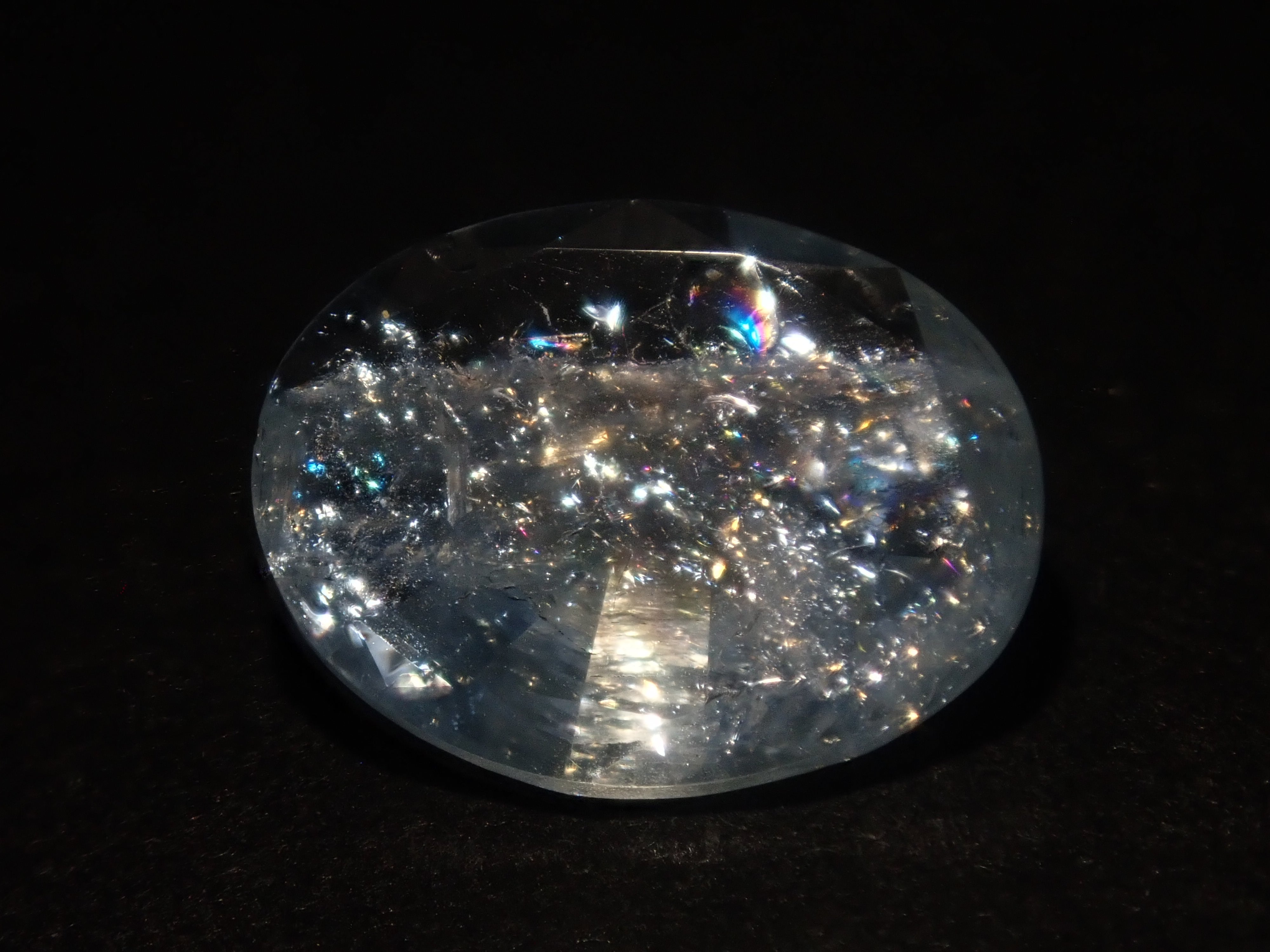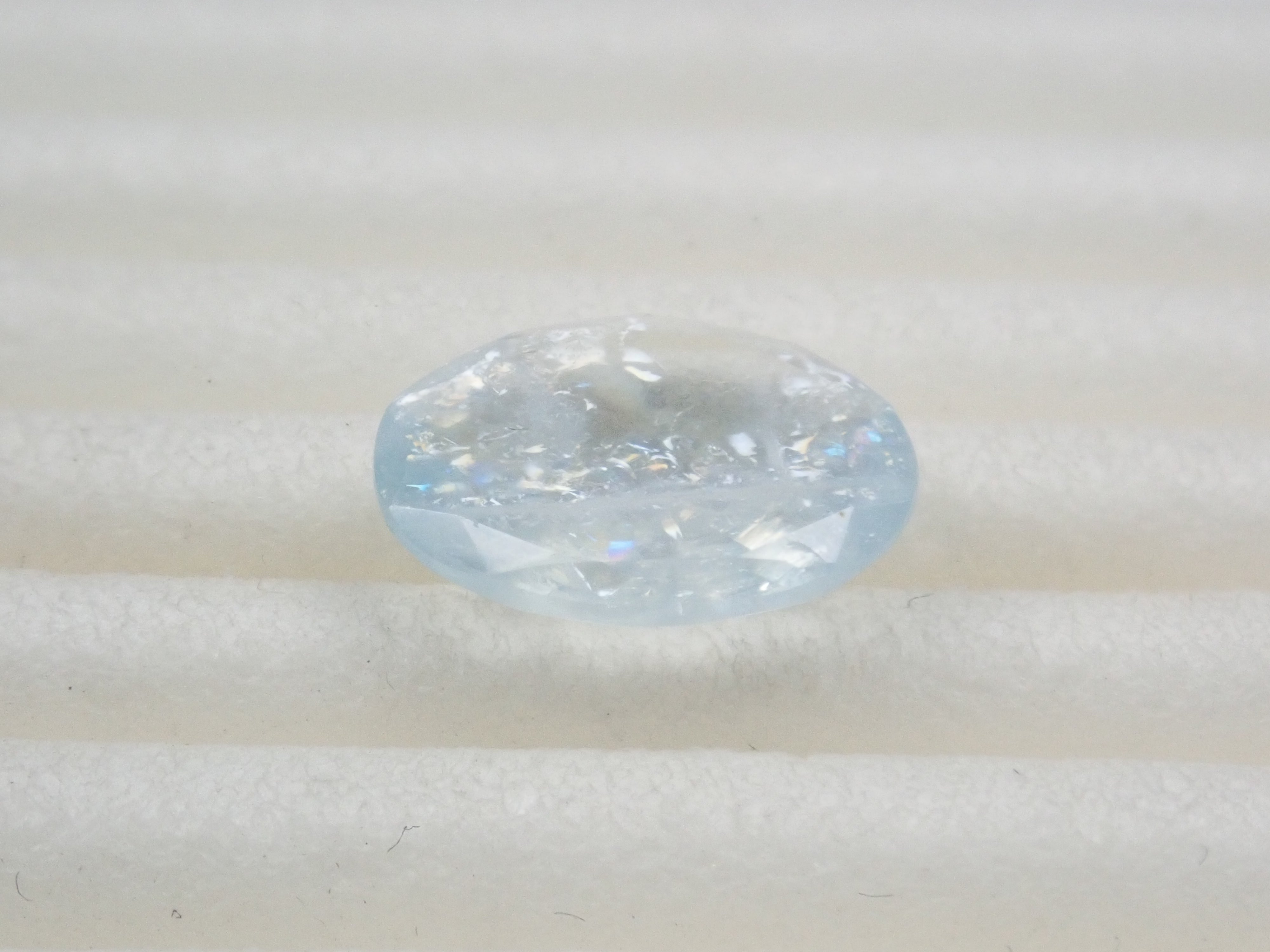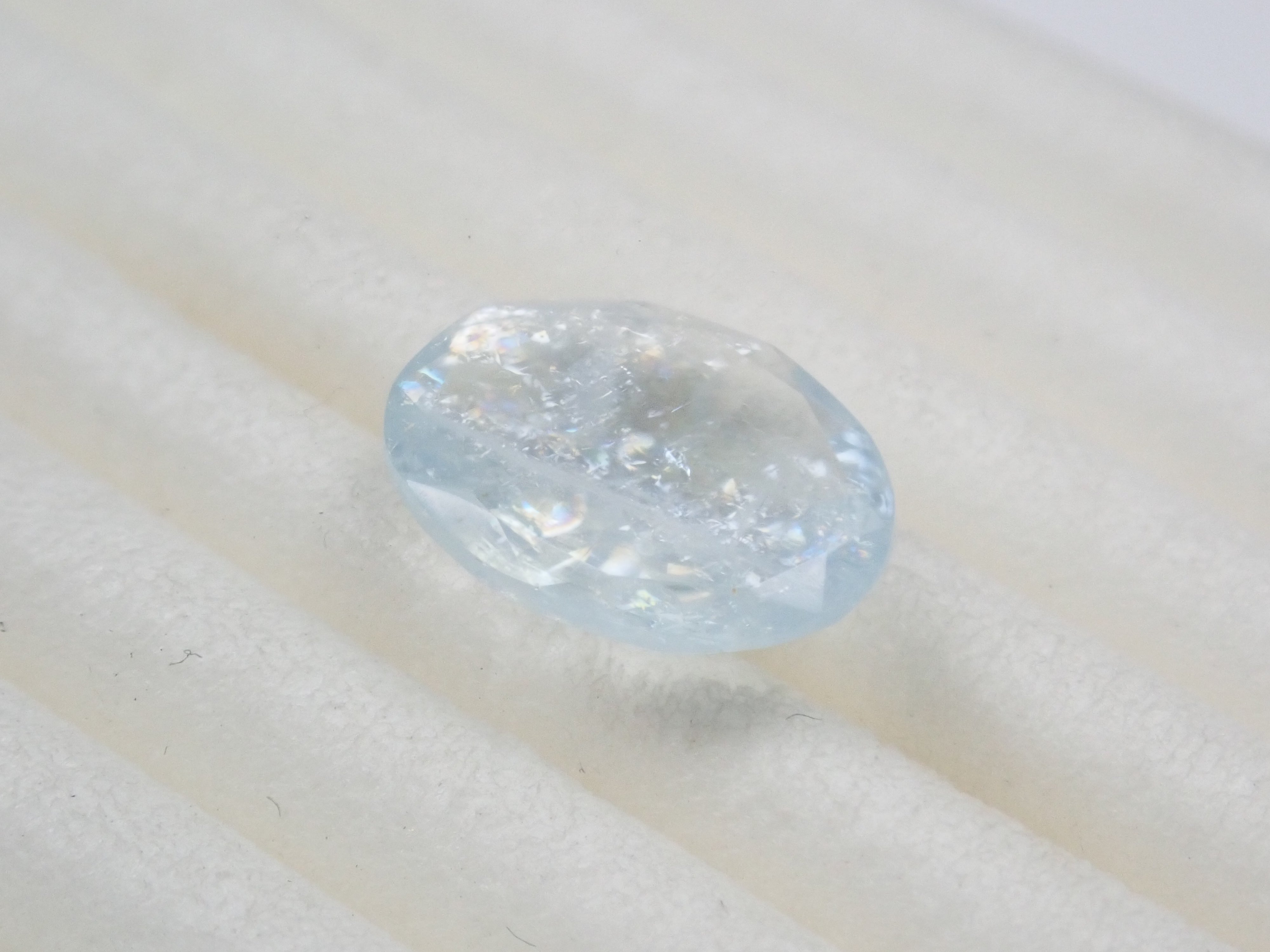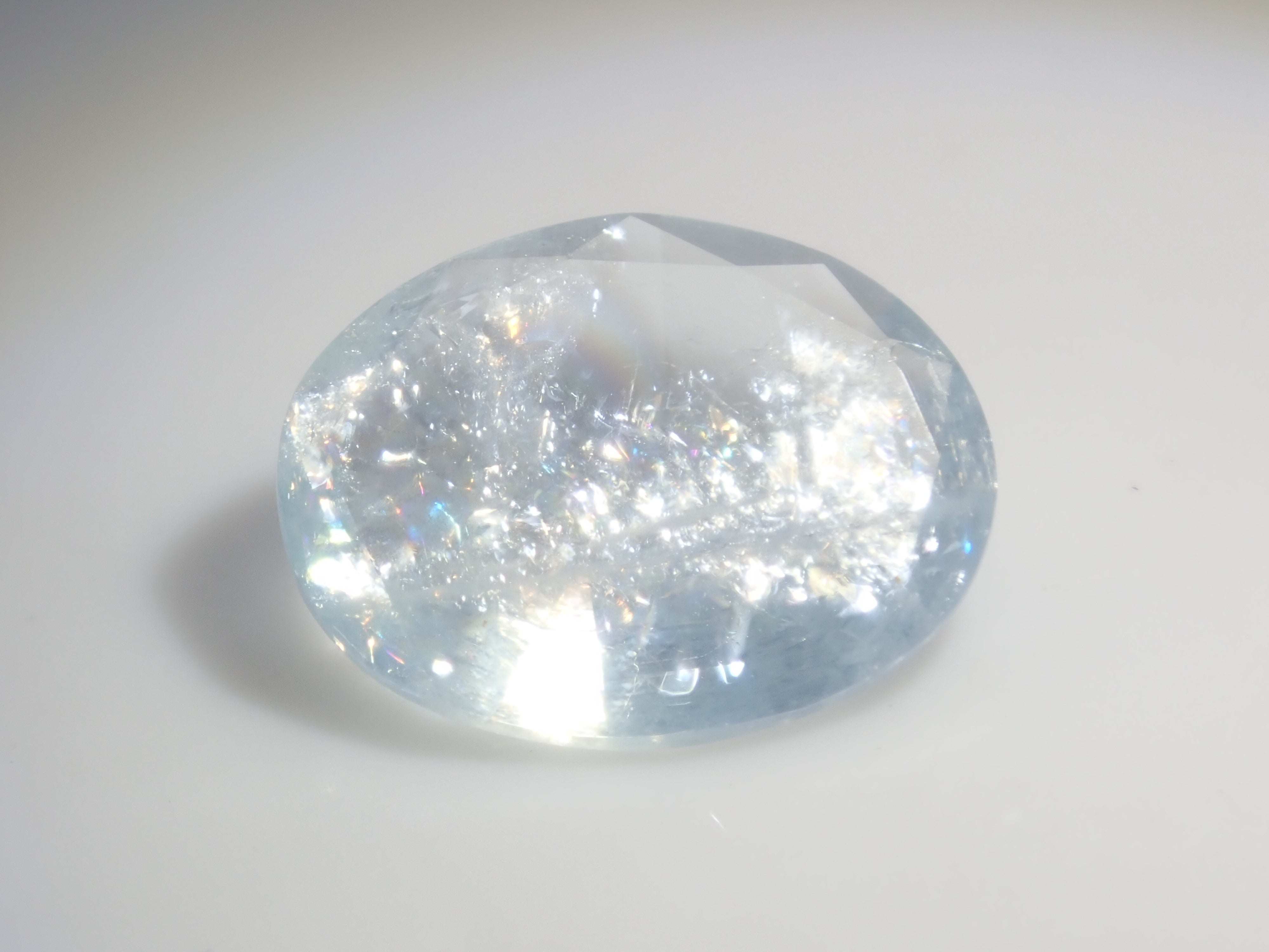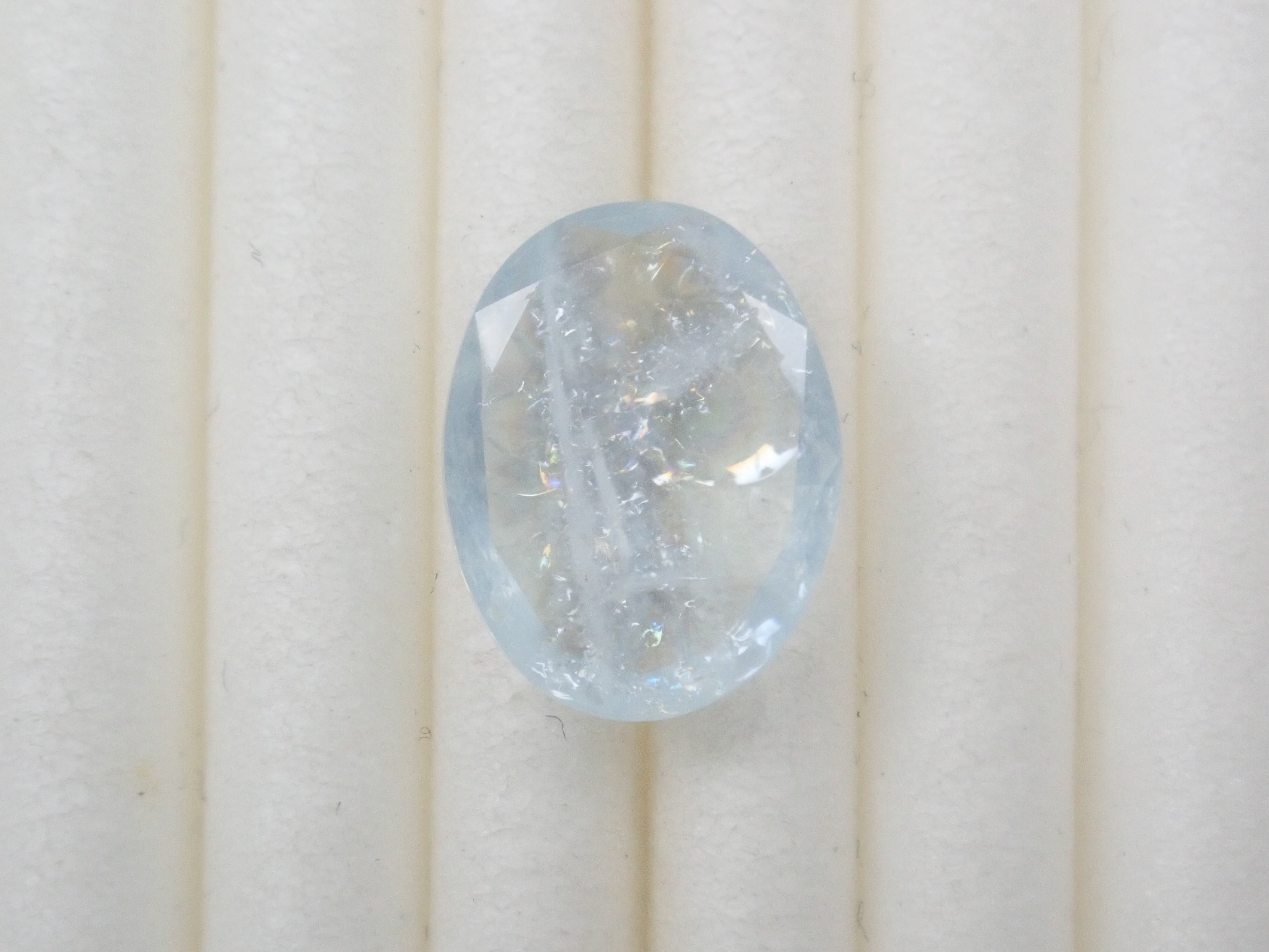 這是一顆來自巴西的 1.309 克拉橢圓形彩虹海藍寶石(彩虹色海藍寶石)。