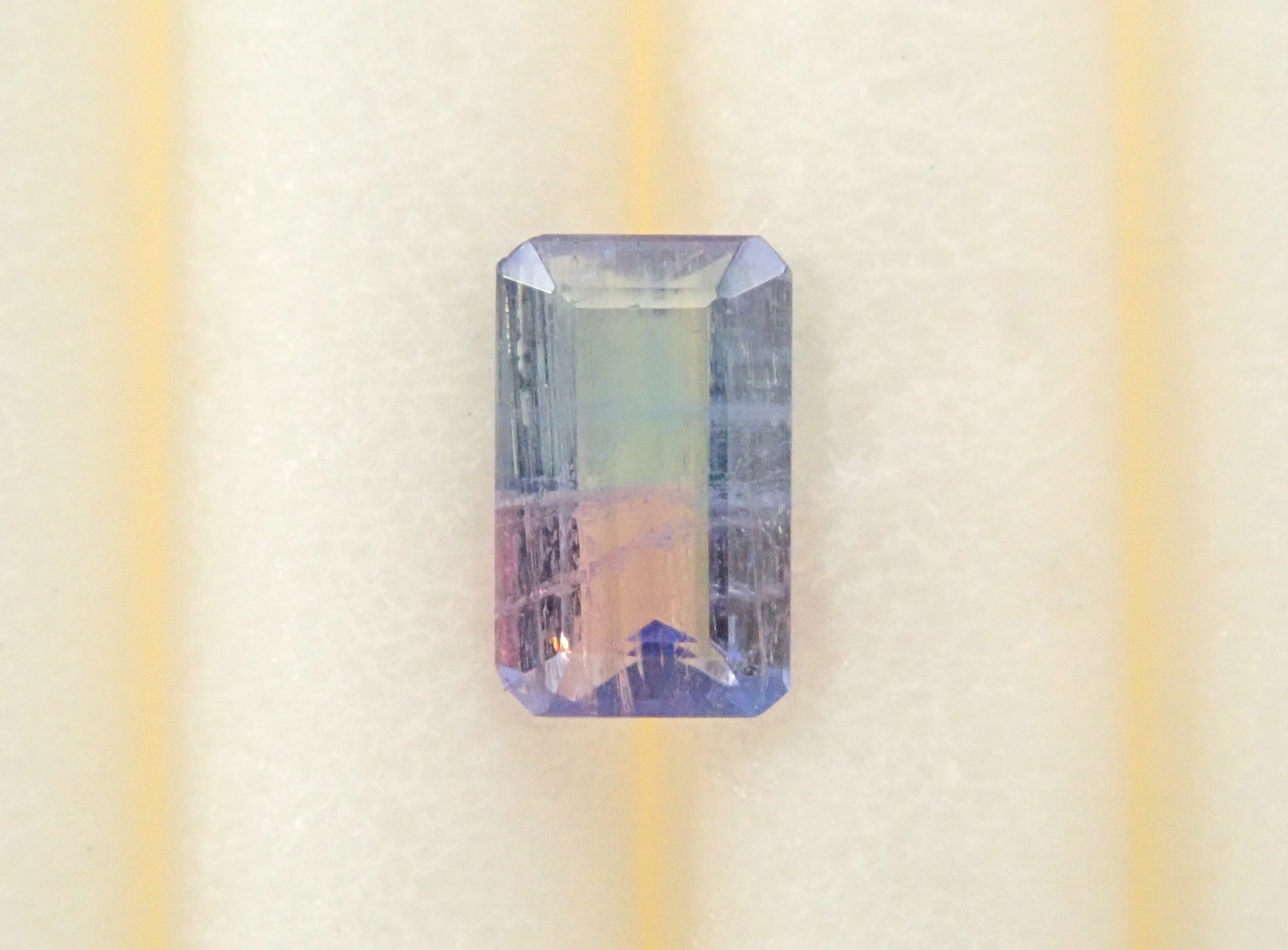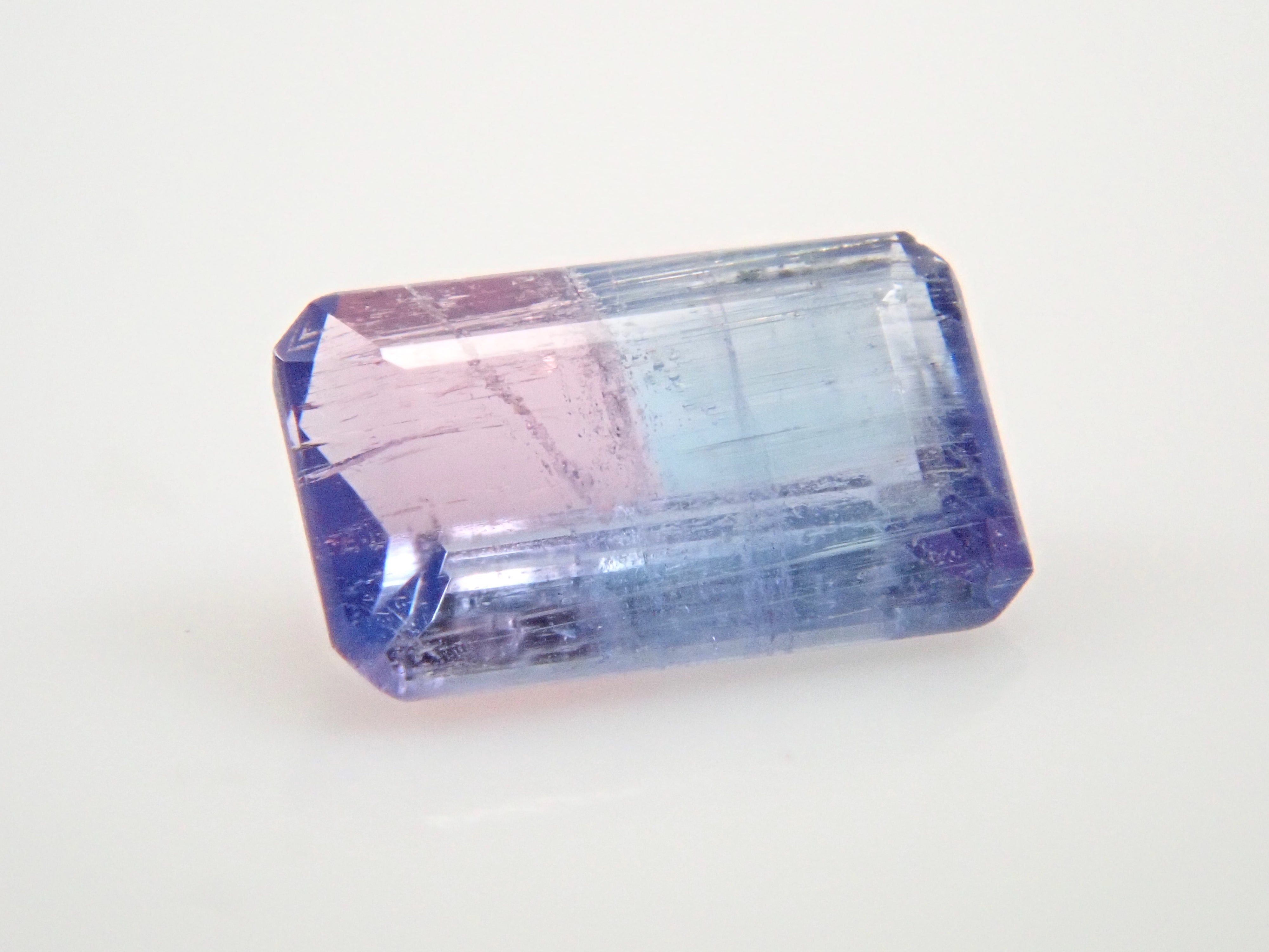 這是一顆產自巴西的未加熱的雙色帕拉伊巴碧璽,帶有藍色、紫色和紅色色調。它附有GIA證書。