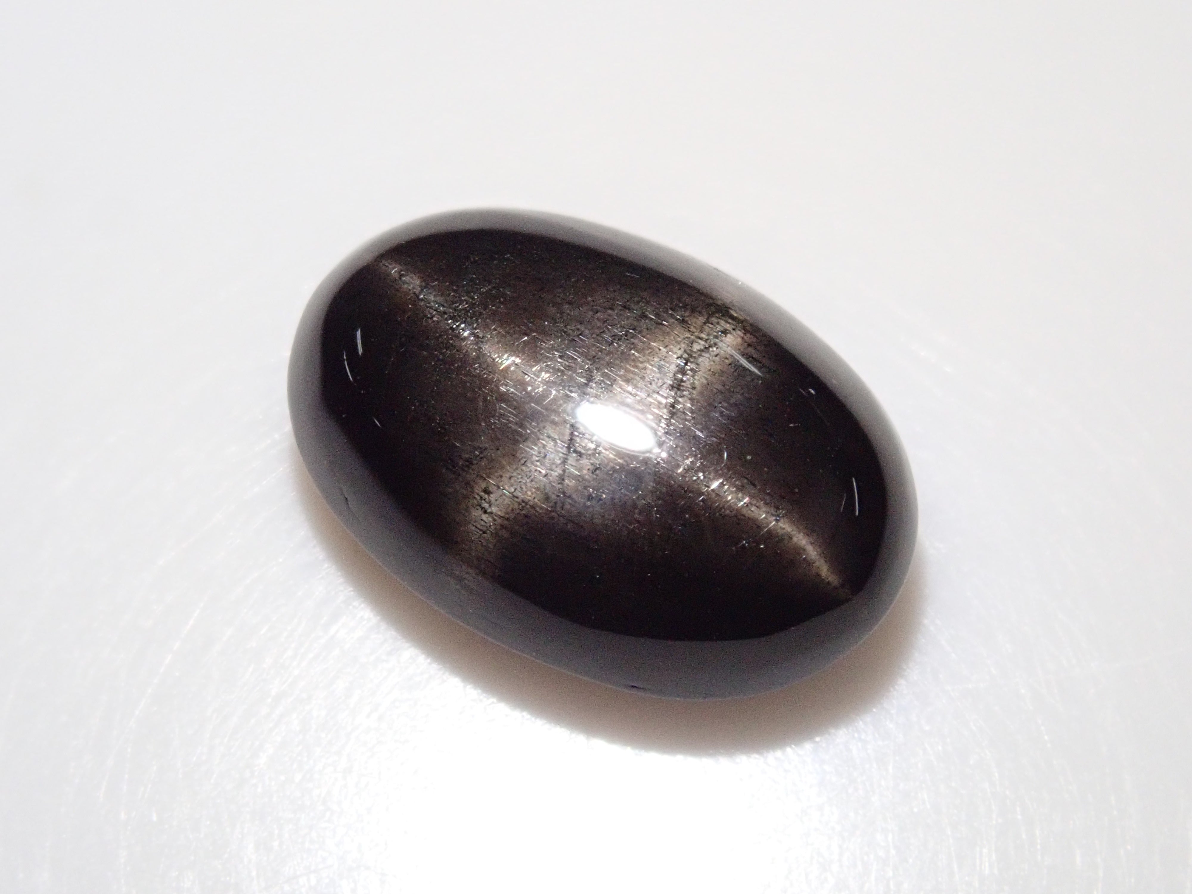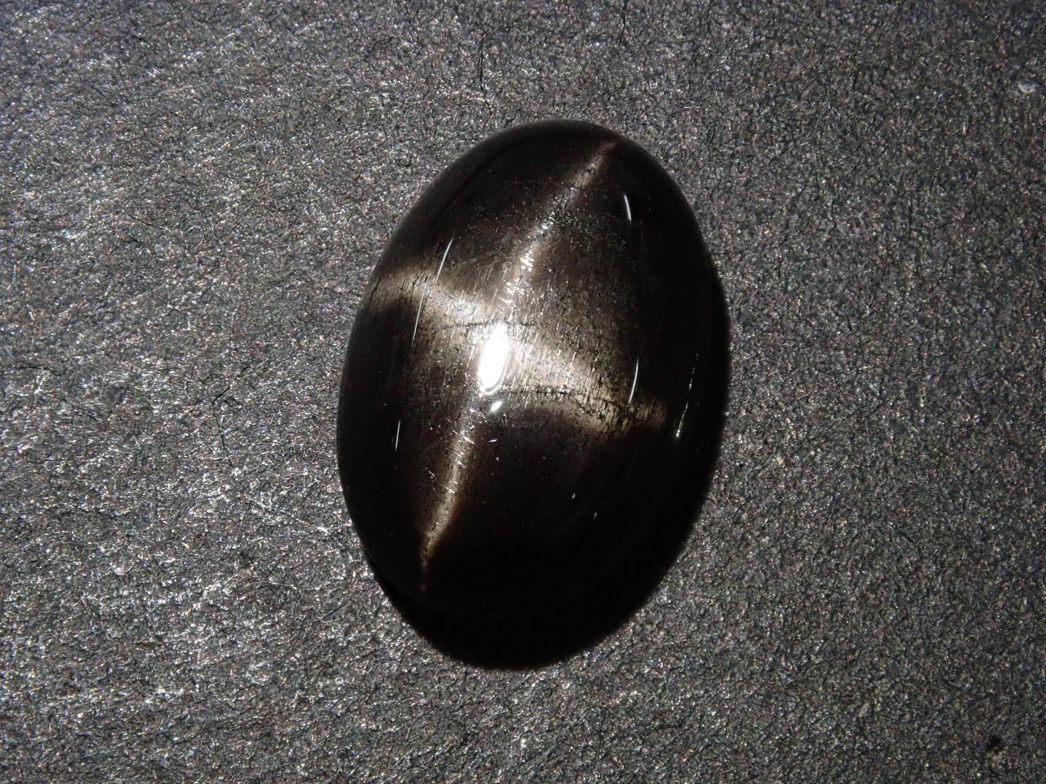 說到透輝石,你可能會想到一種深綠色的寶石,但實際上它有多種顏色,包括白色、藍色和紫色。這種寶石呈現出星光效果。藍寶石以其六射星光效果而聞名,而透輝石的星光則有四射星光。它散發著一種簡約的魅力。照片是用筆型手電筒拍攝的。寶石的背面通常未經拋光。