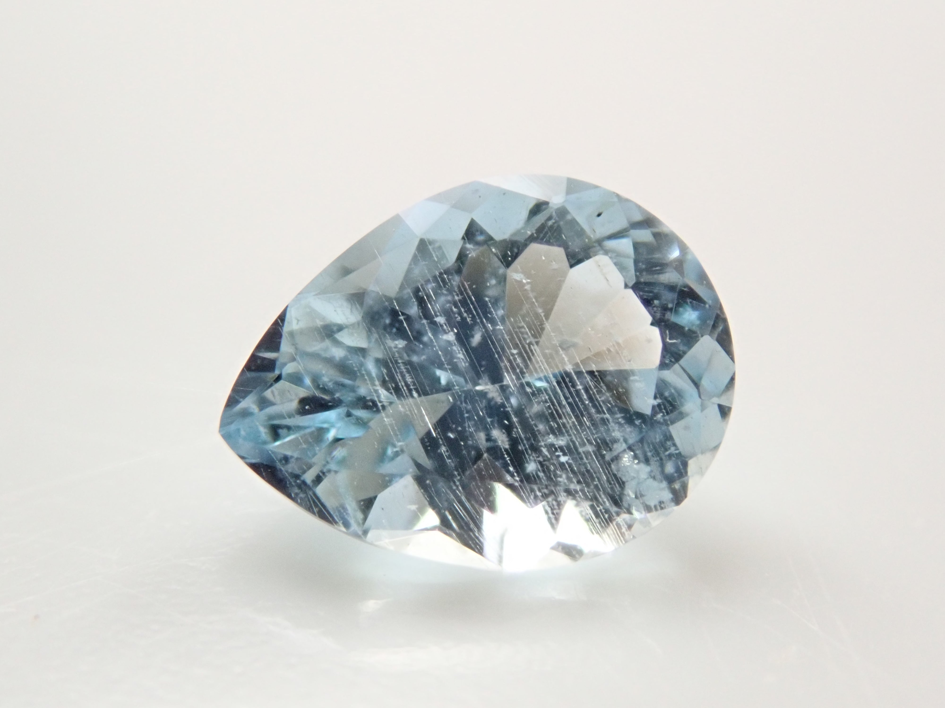 這是一顆巴西海藍寶石,具有雨狀內含物。