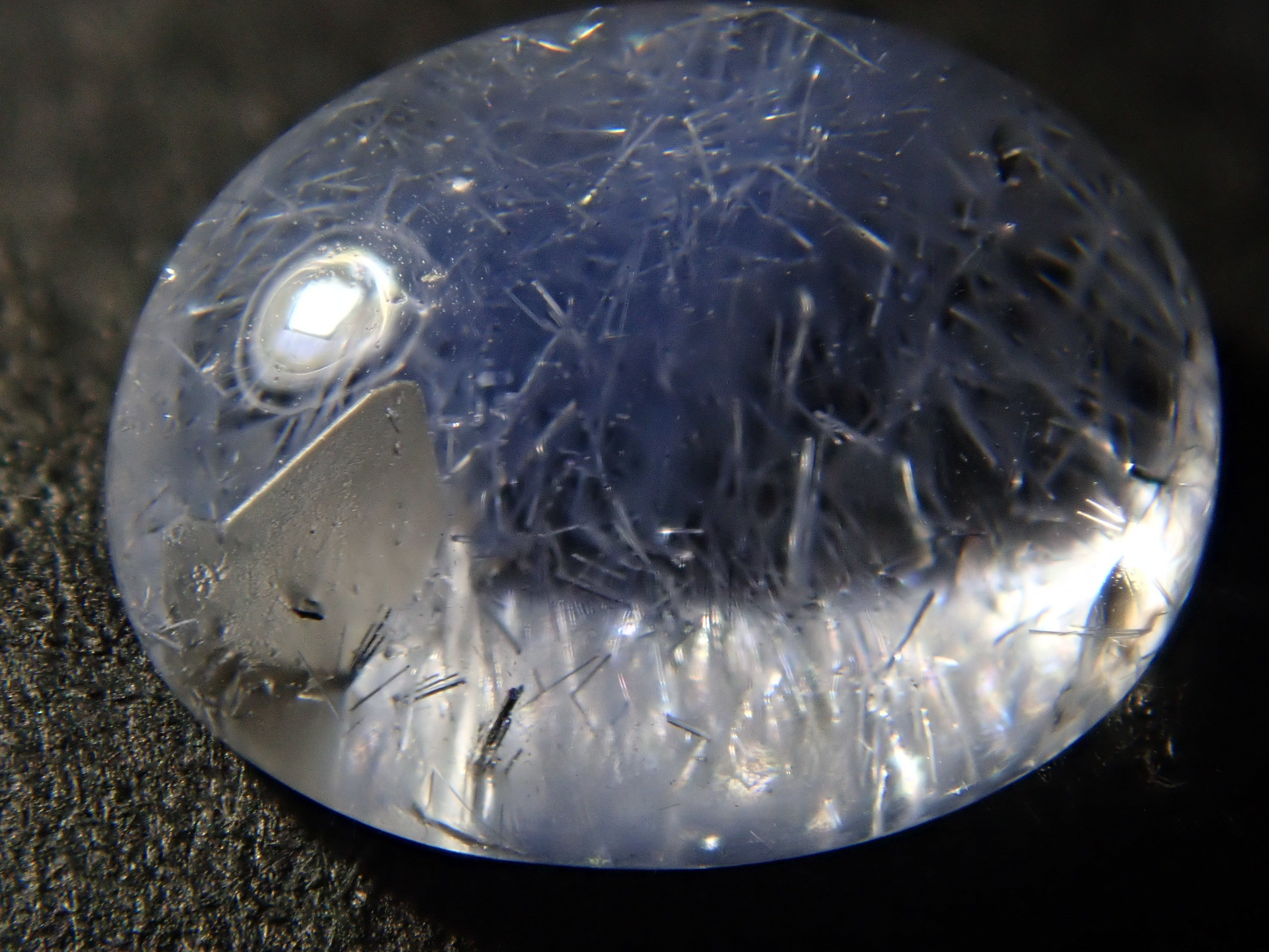 這是斯里蘭卡工匠桑傑 (Sanjay) 的切割作品。石英中的藍線石。