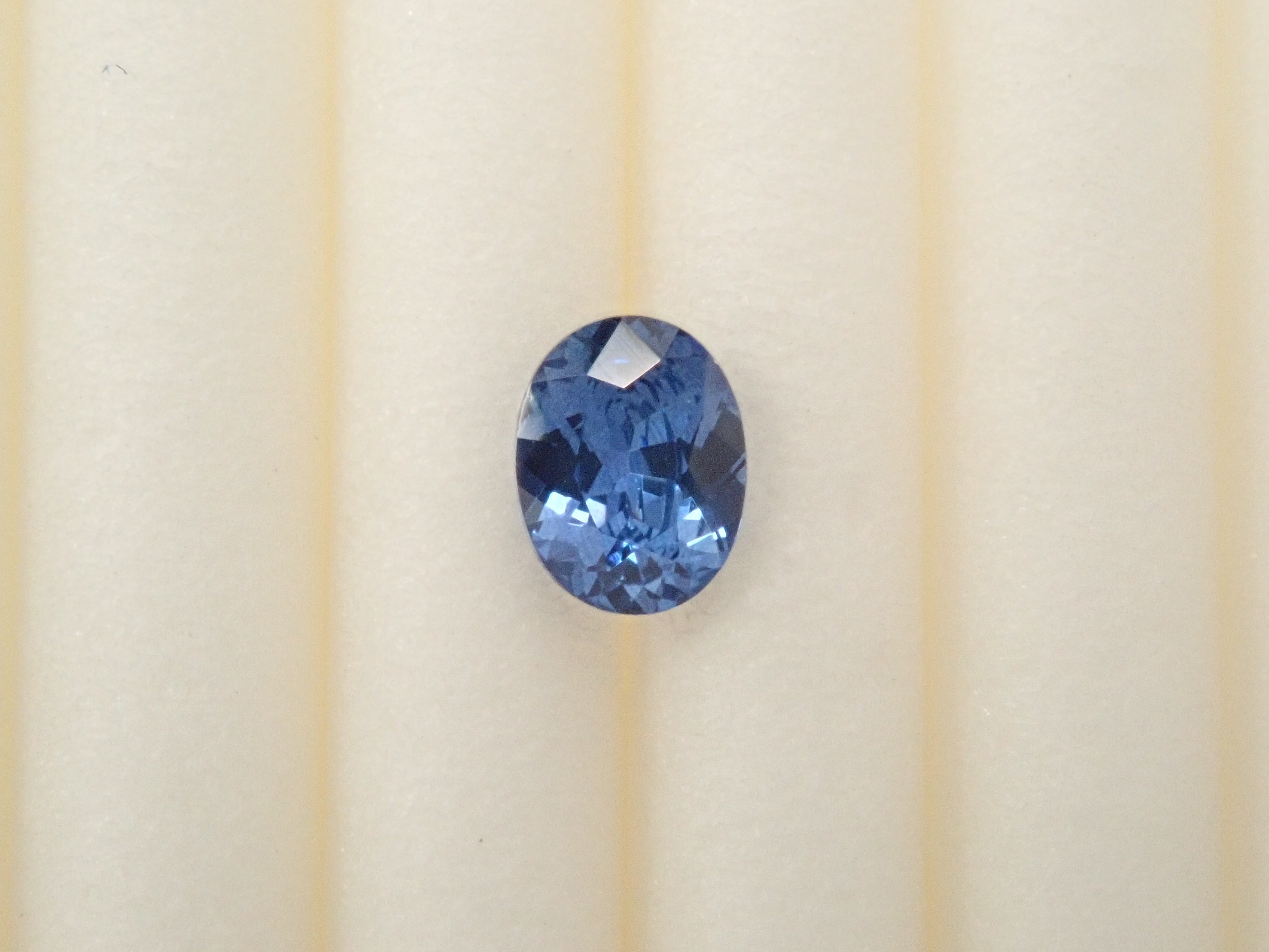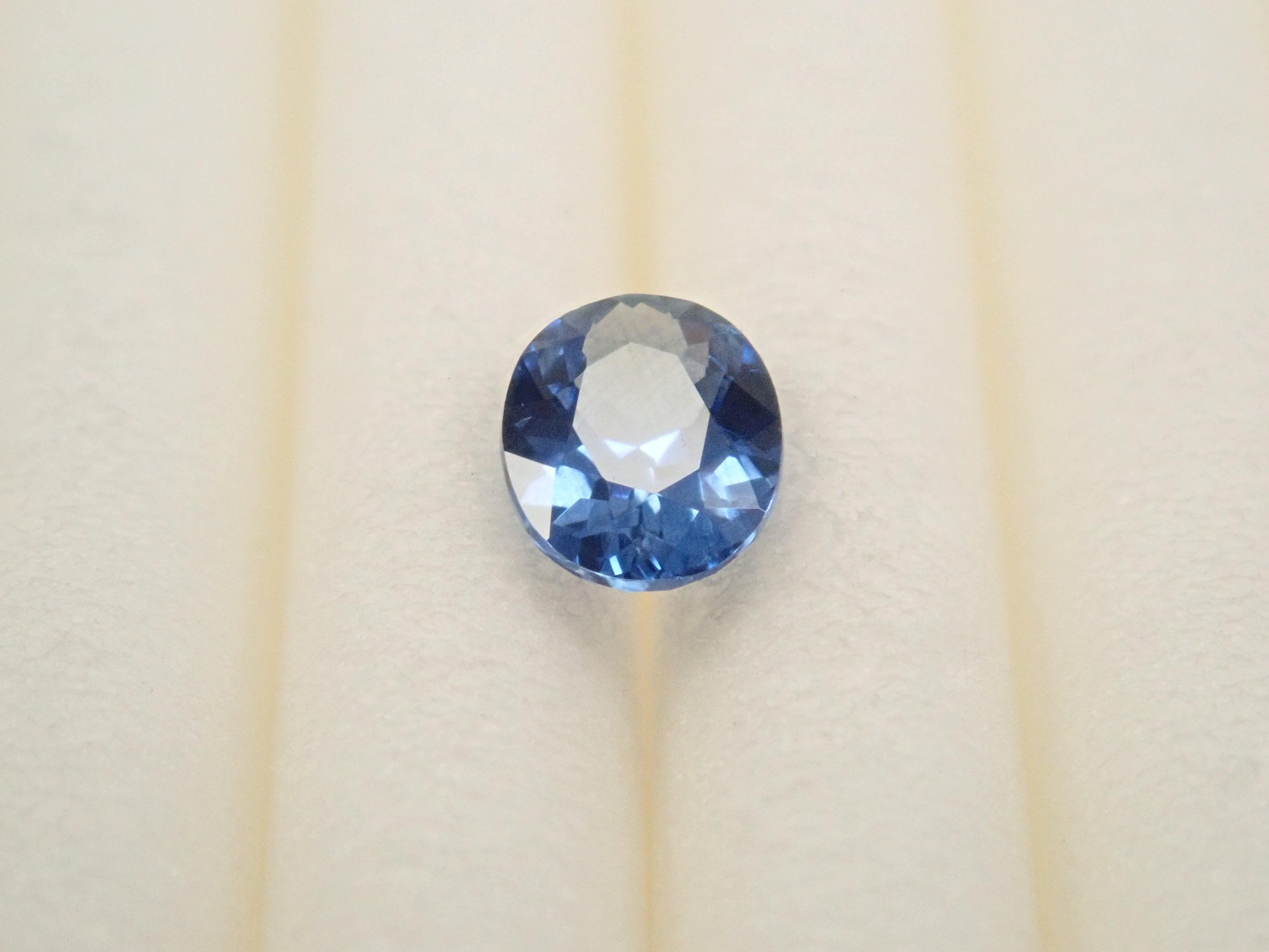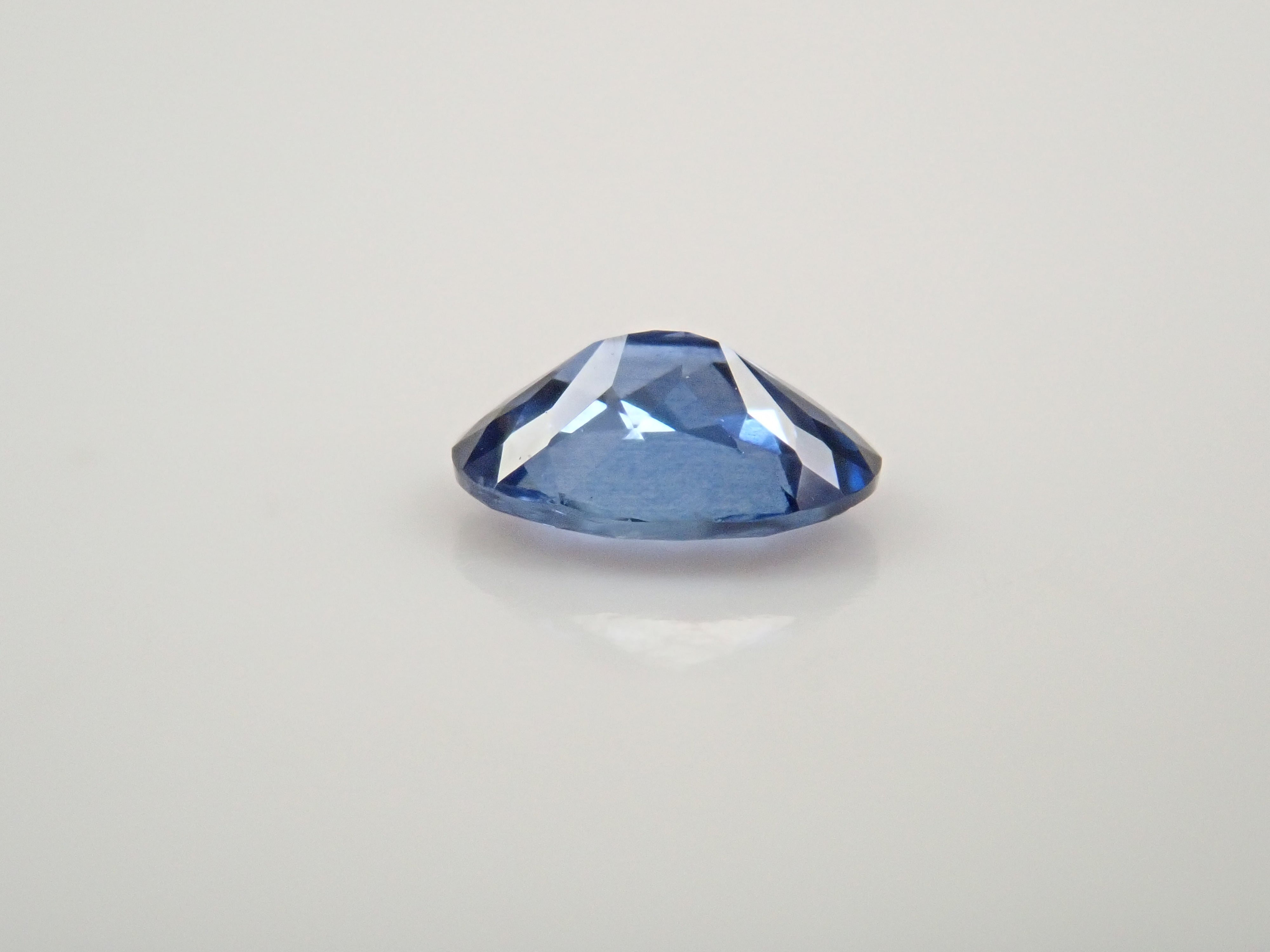 這是一顆高度透明、明亮的藍色藍寶石,經過精心切割。
