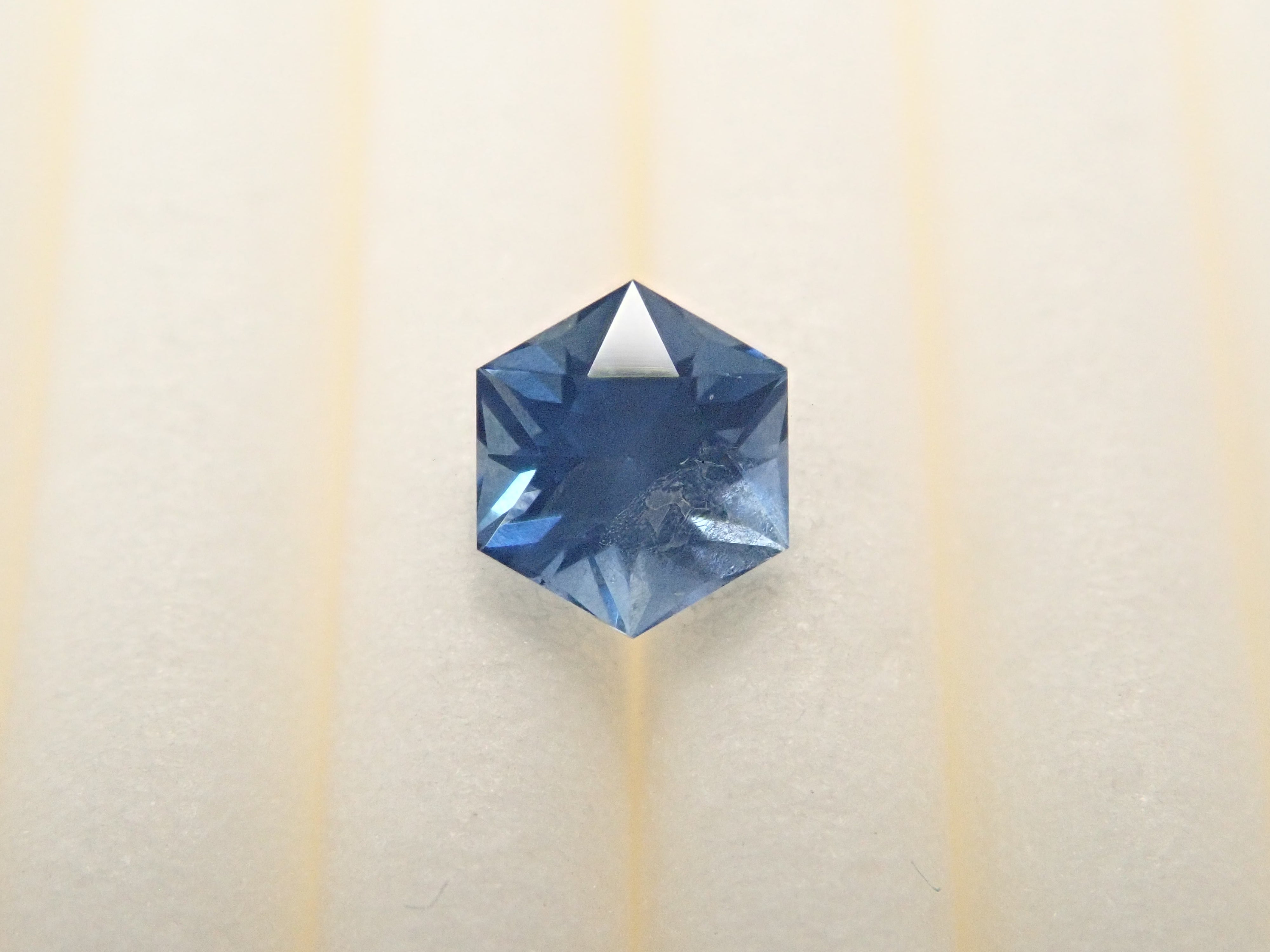 這是一顆來自馬達加斯加的六角形切割藍寶石。