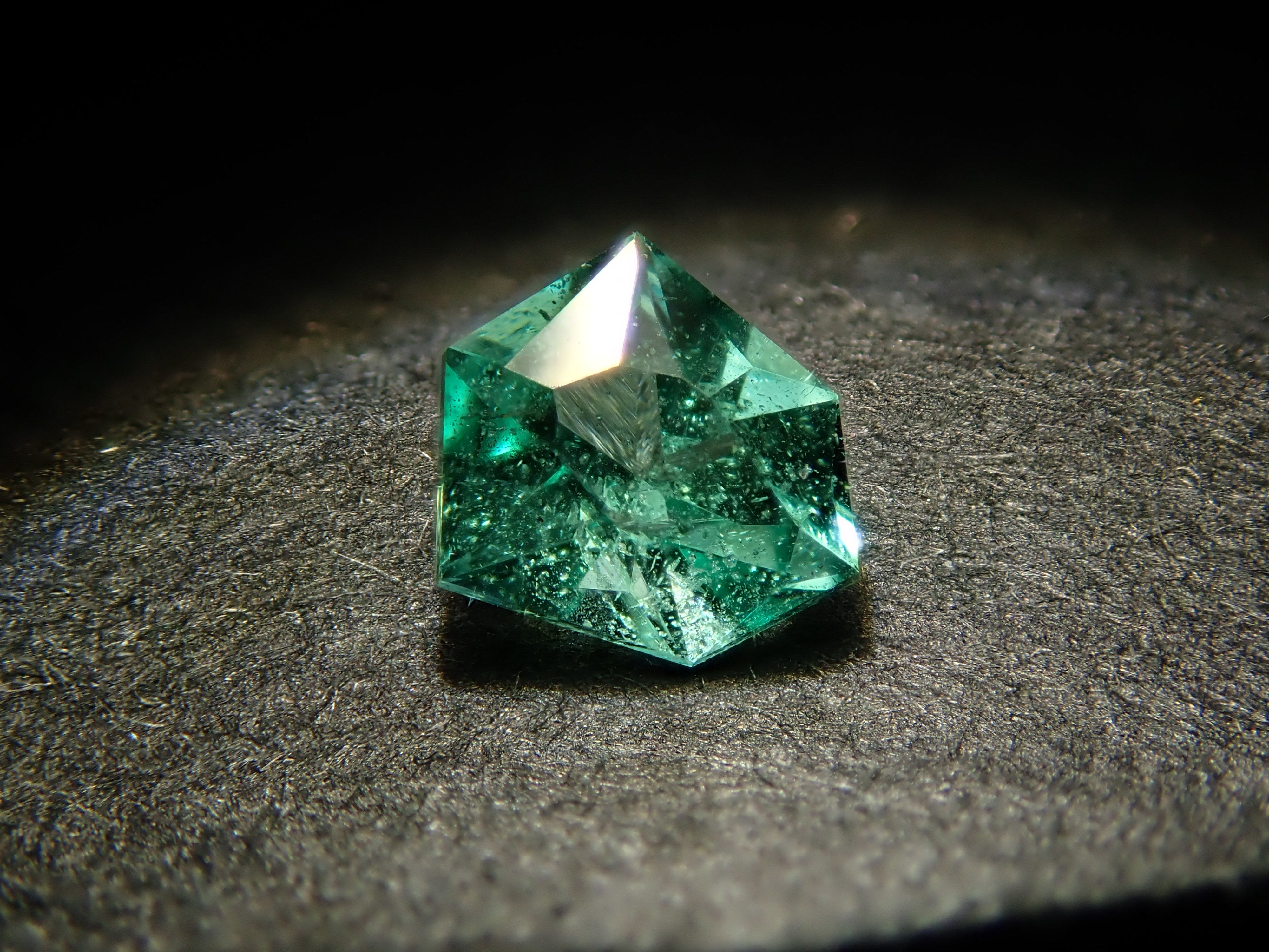 據說祖母綠的美麗綠色會因其產地而異。這顆祖母綠產自哥倫比亞,以其格外深邃的綠色而聞名。祖母綠通常容易被刮傷,因此通常會使用油處理來使刮傷不那麼明顯。盡情欣賞這優雅的綠色吧。