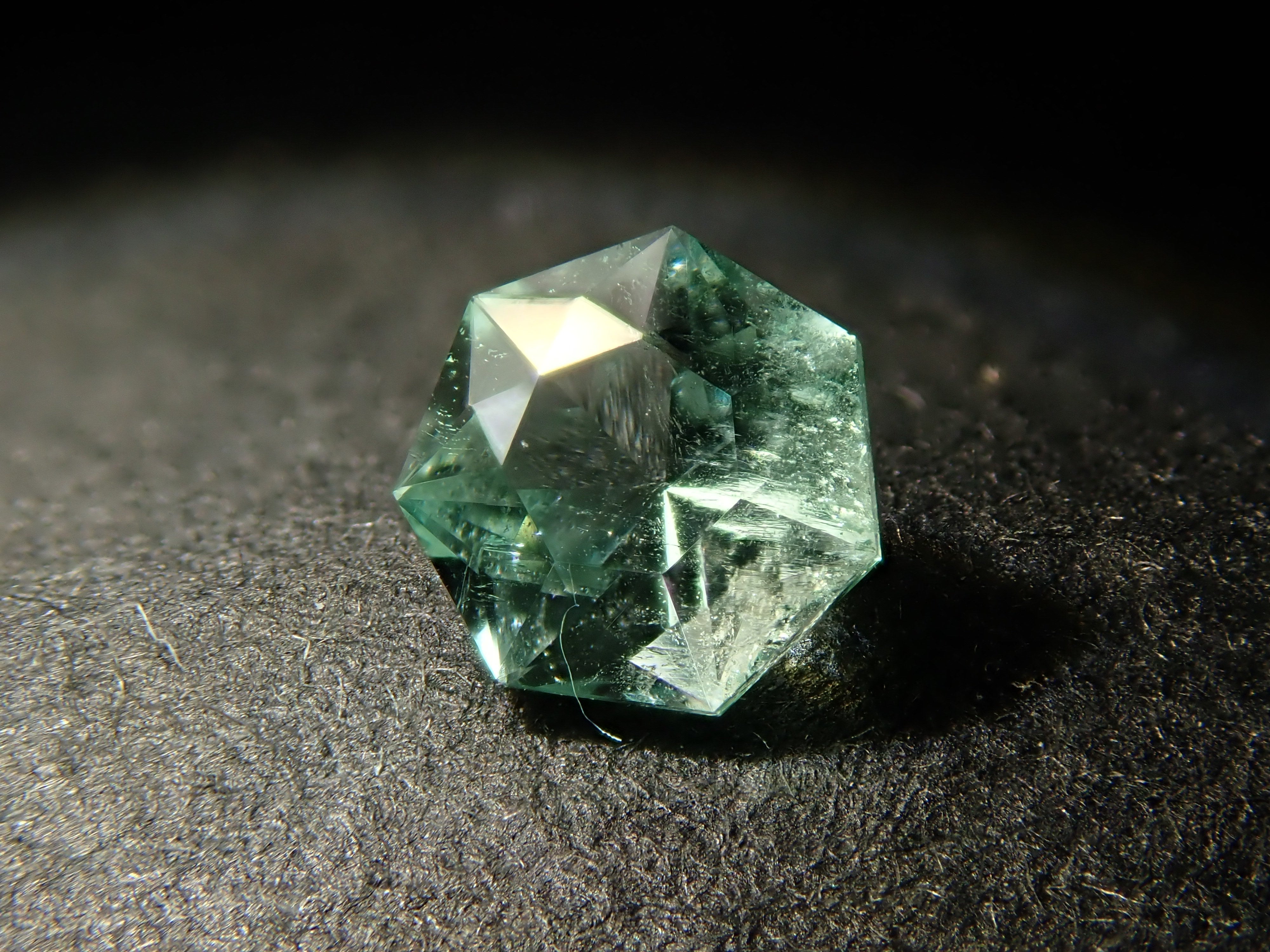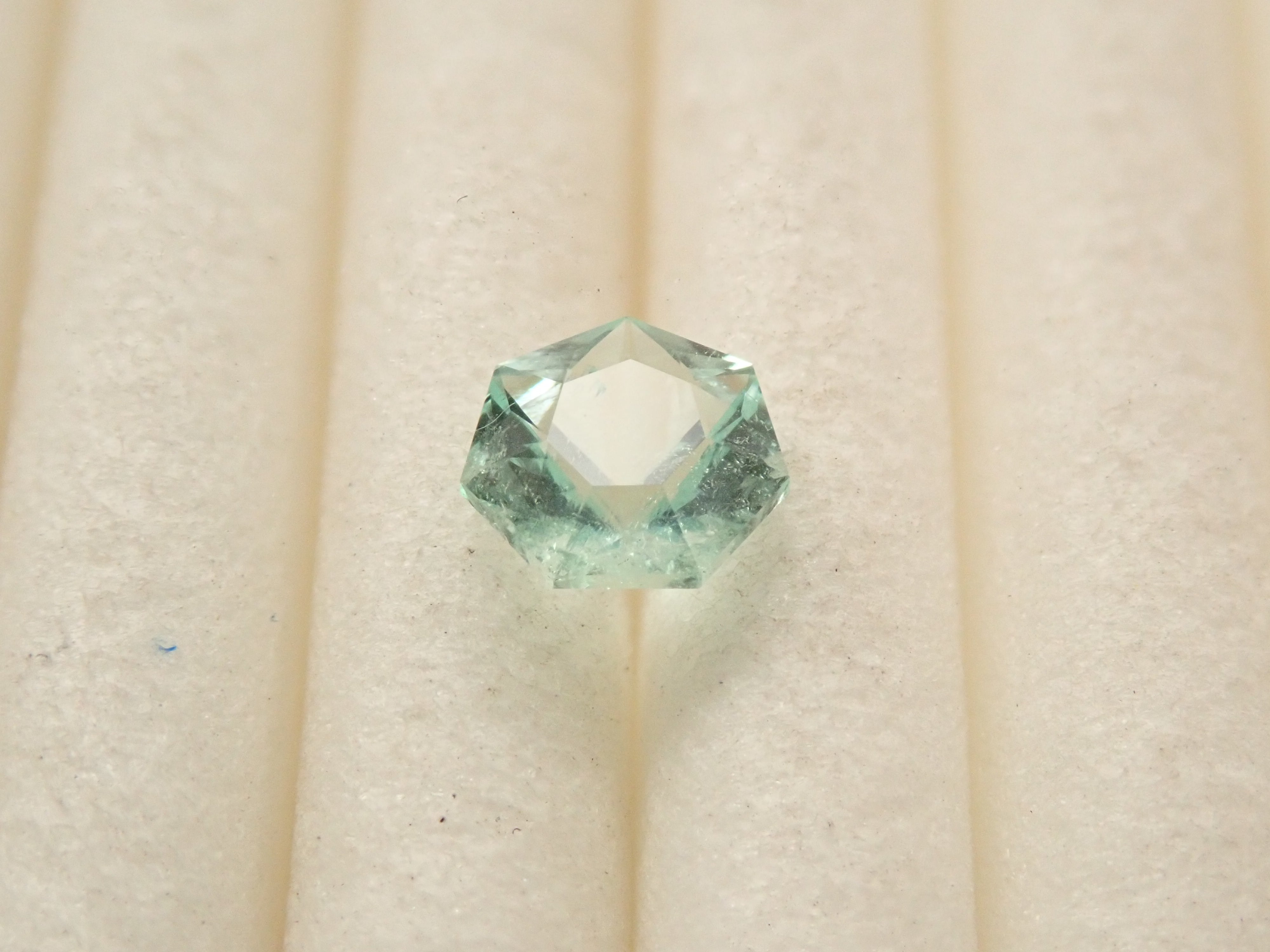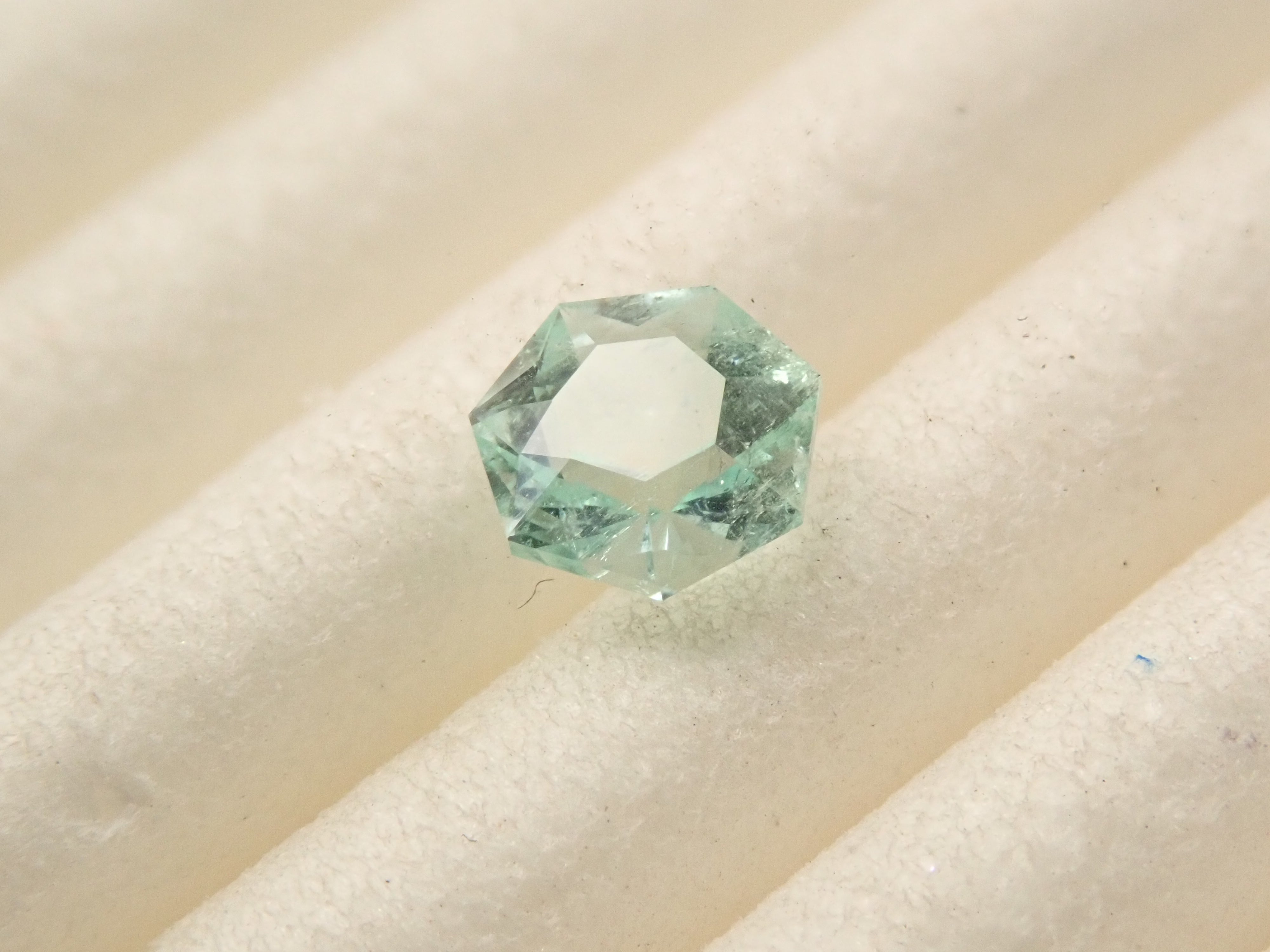 這是一顆產自哥倫比亞的七角形切割薄荷色祖母綠。