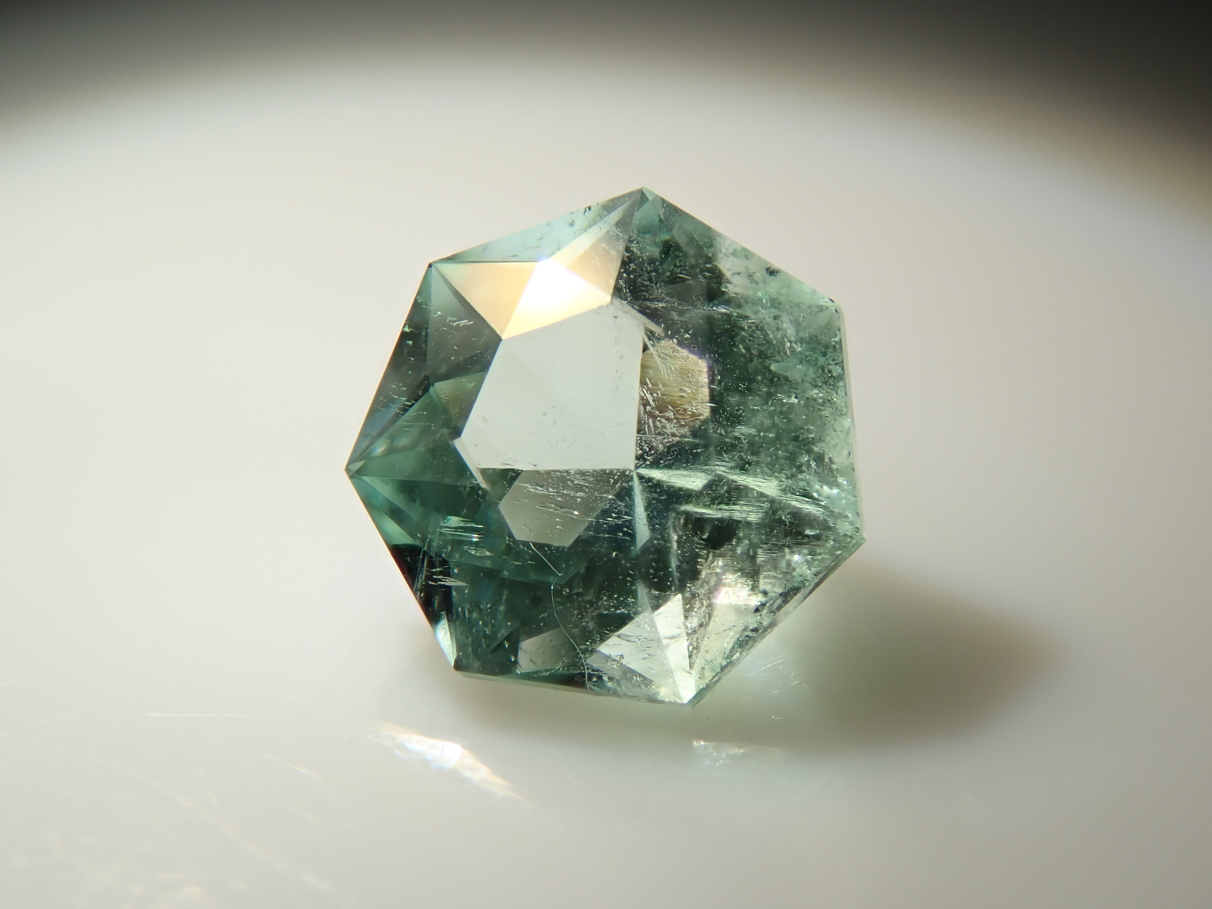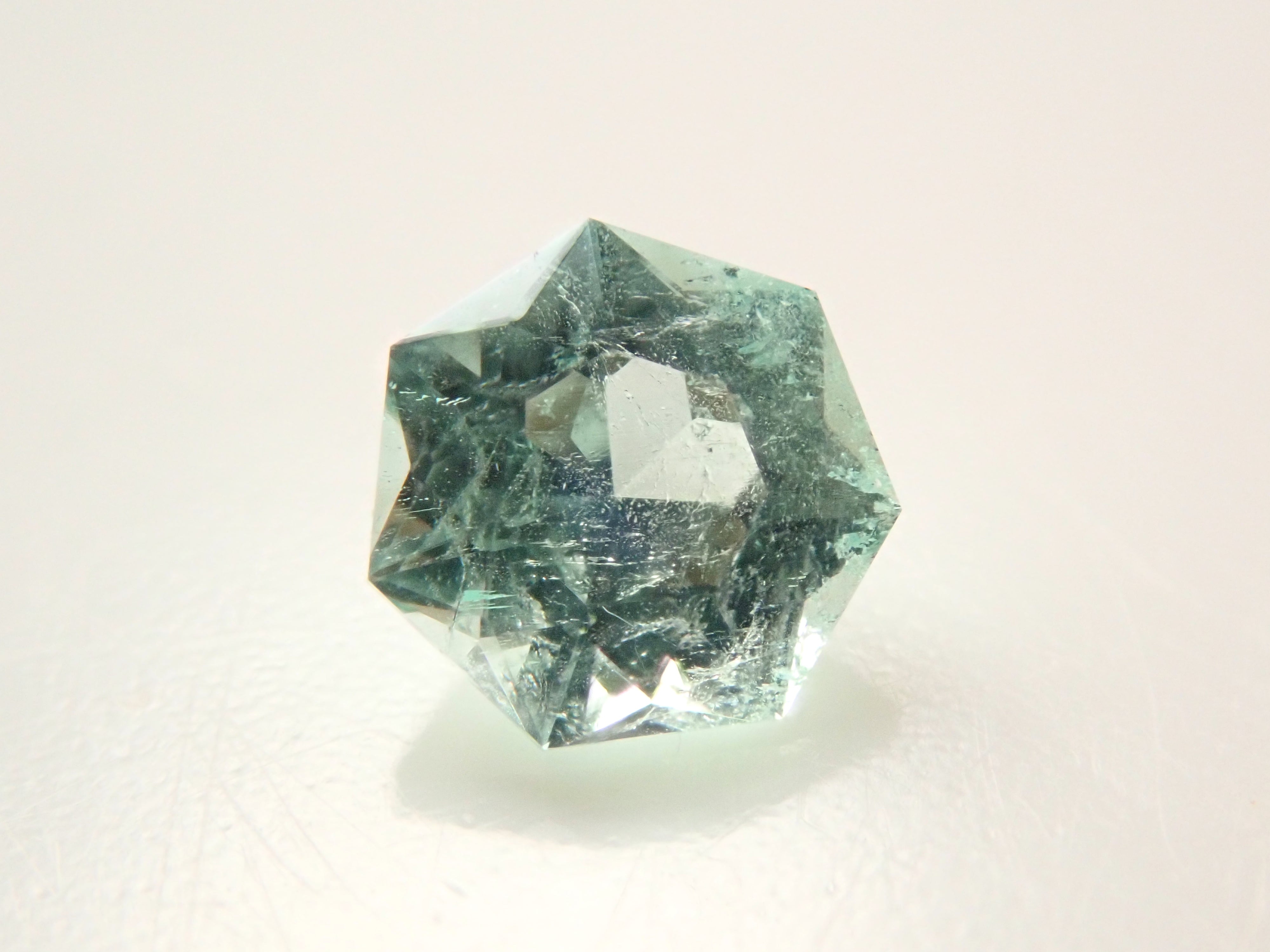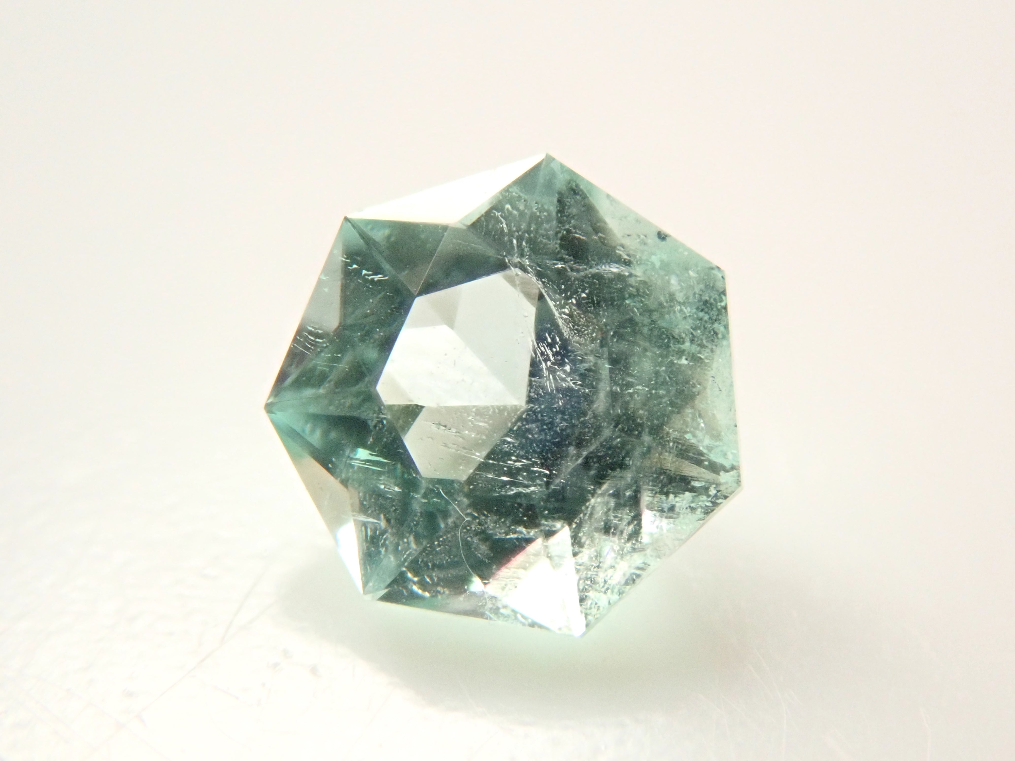 這是一顆產自哥倫比亞的七角形切割薄荷色祖母綠。