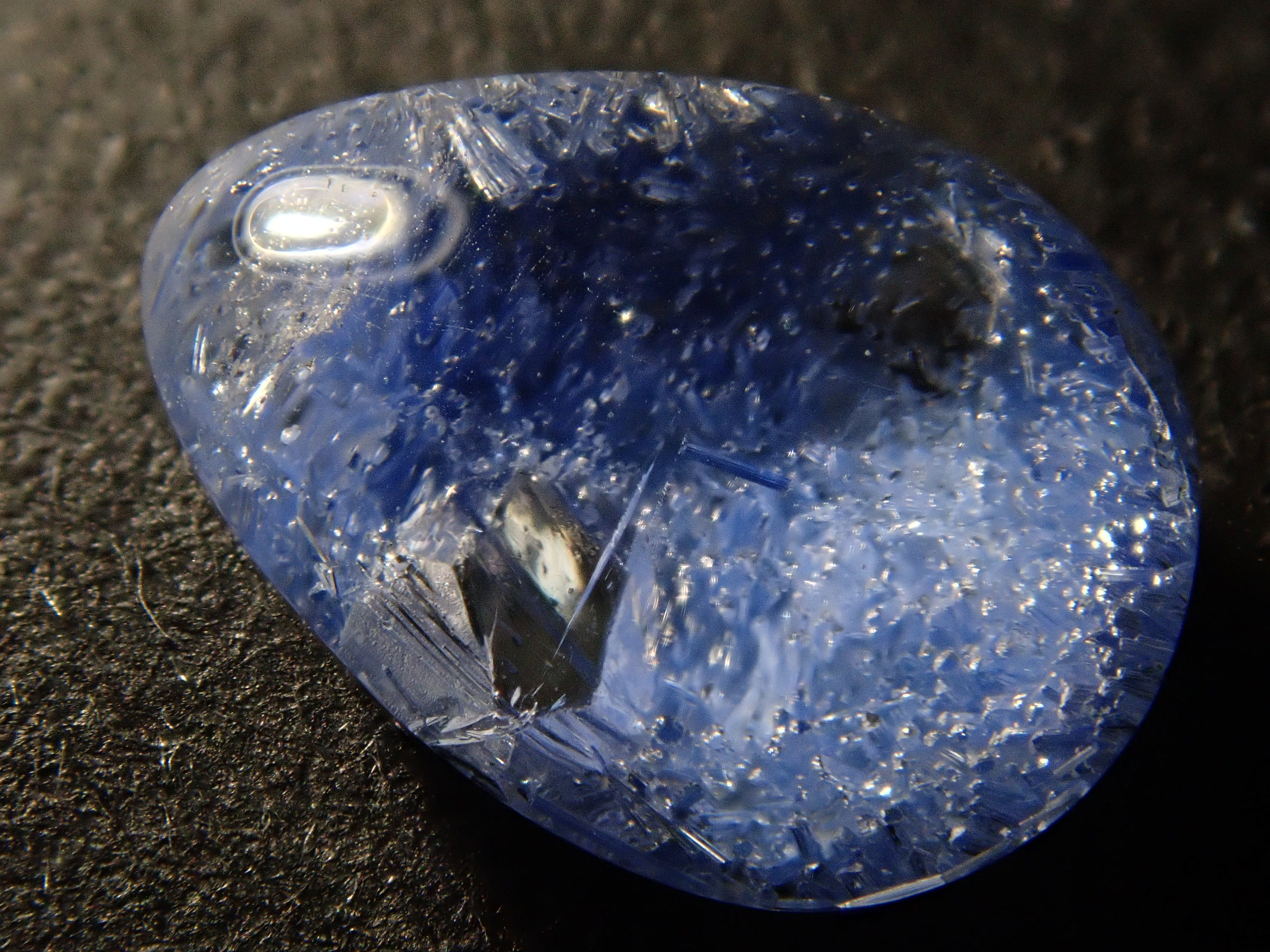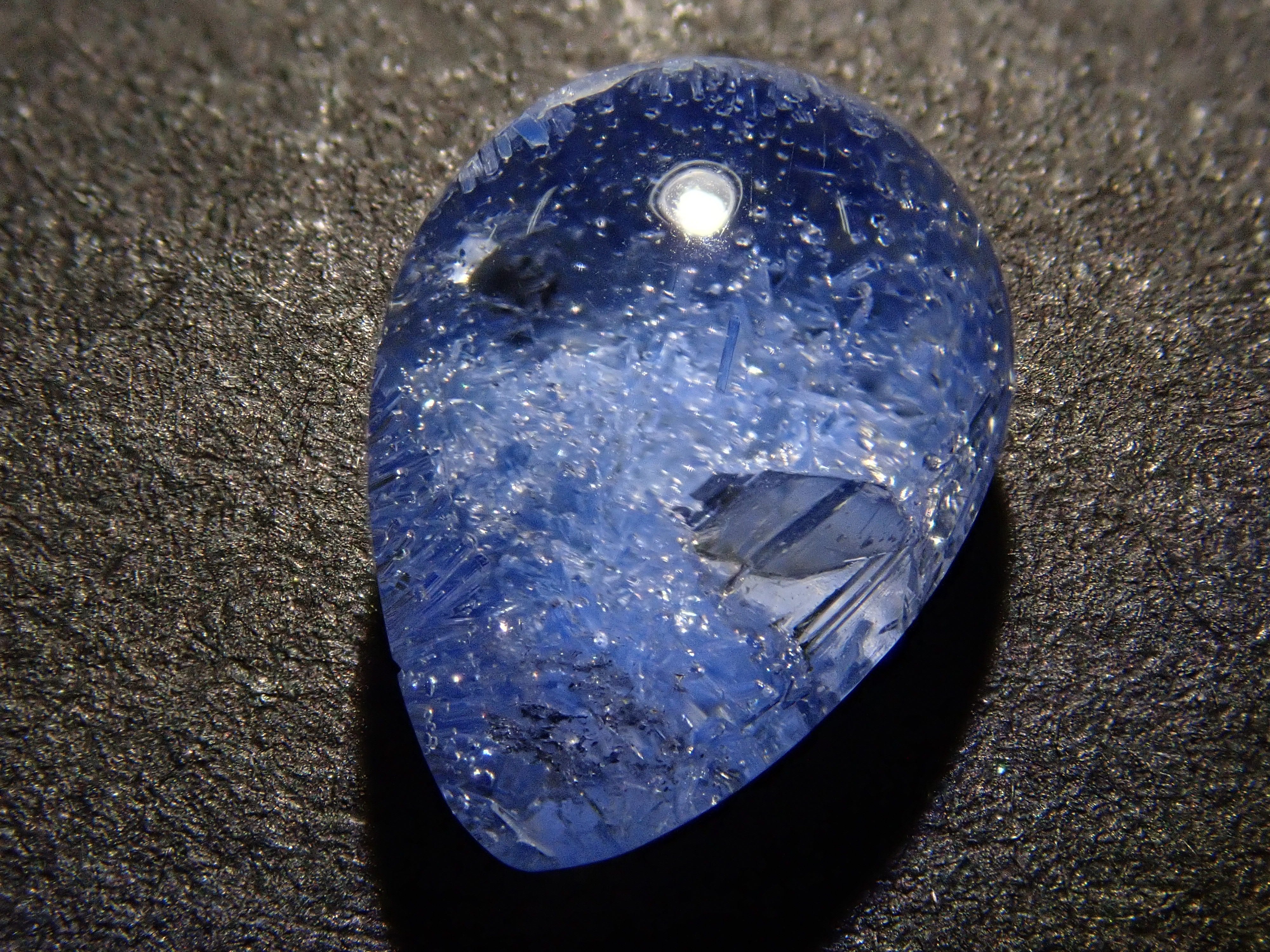 石英,日文稱為“水晶”,在日本是一種常見的寶石,但它也是一種深邃的寶石,擁有令人難以置信的多樣性,包括紫水晶和黃水晶。本例展示了石英中的藍線石,其美麗的藍色內含物令人嘆為觀止。沒有其他寶石擁有相同的圖案,這使得它成為吸引收藏家的寶石。