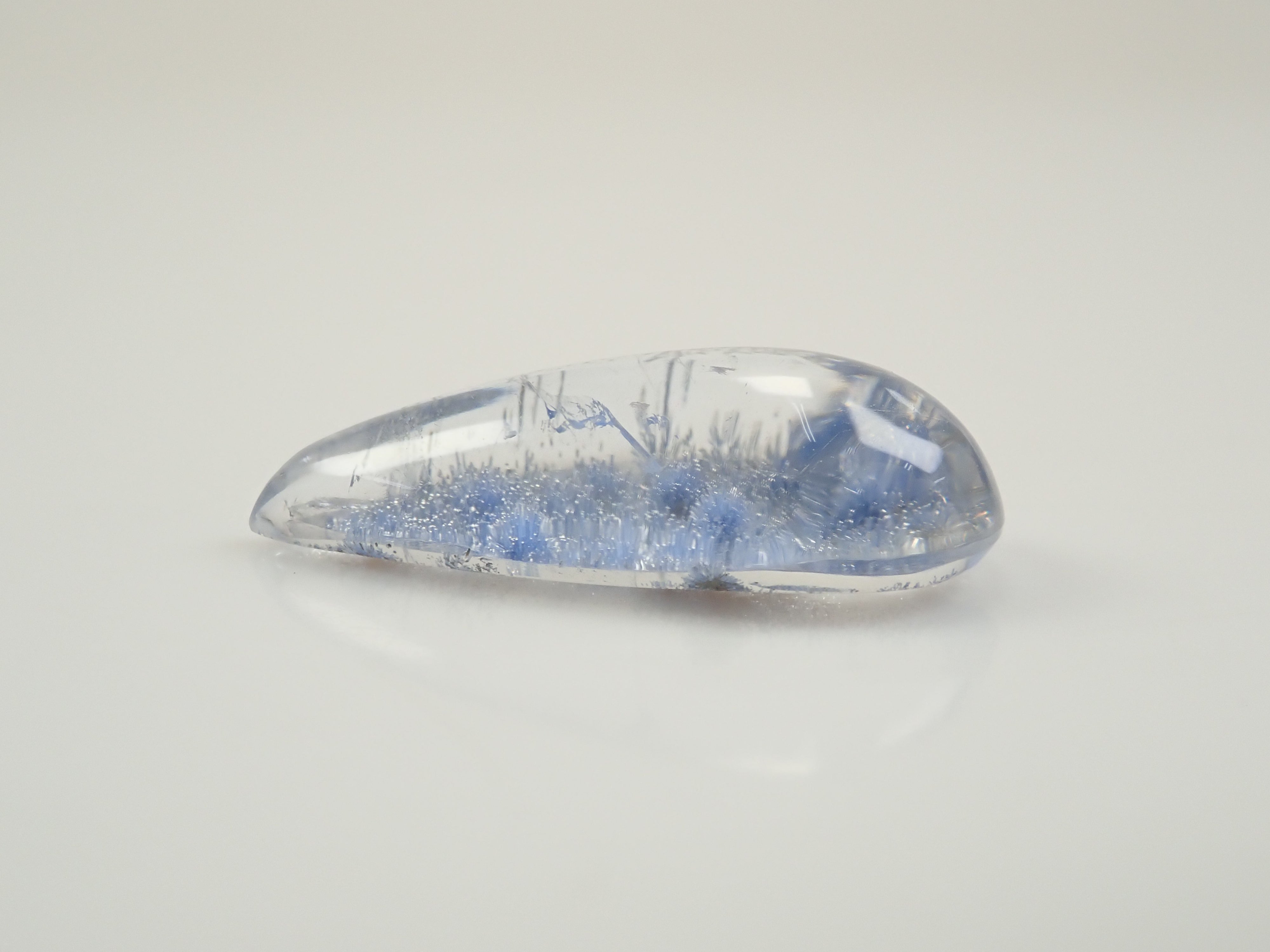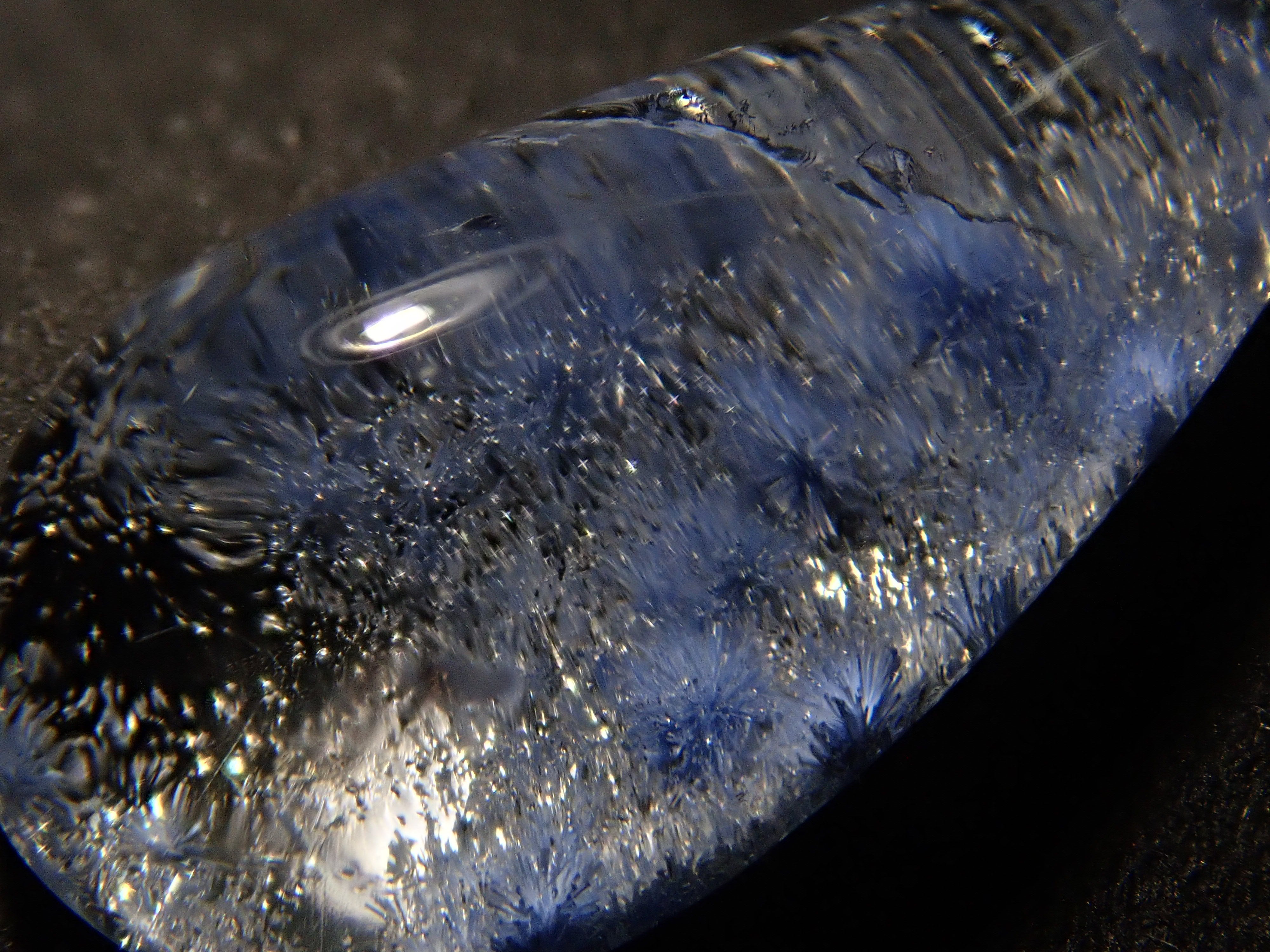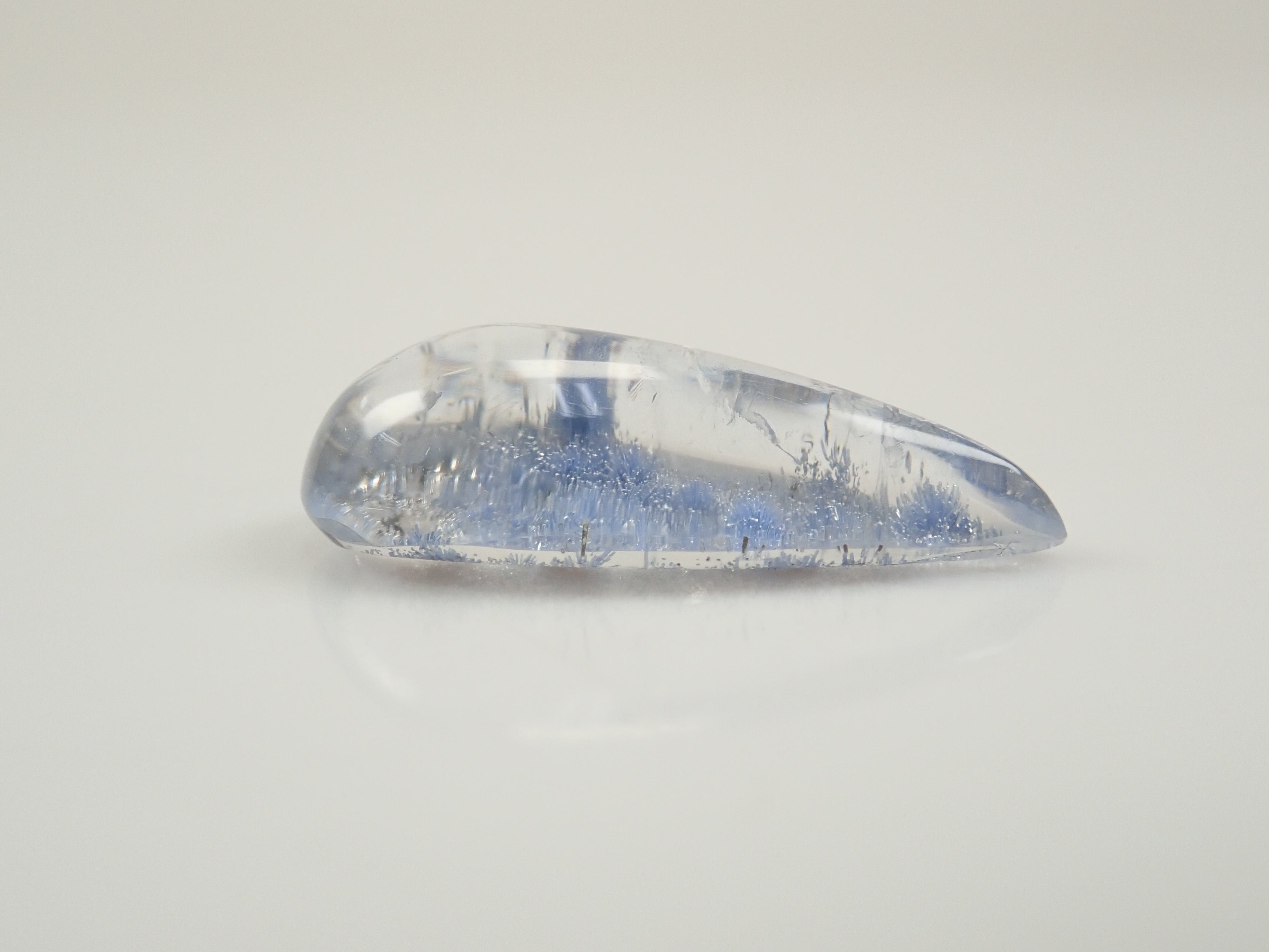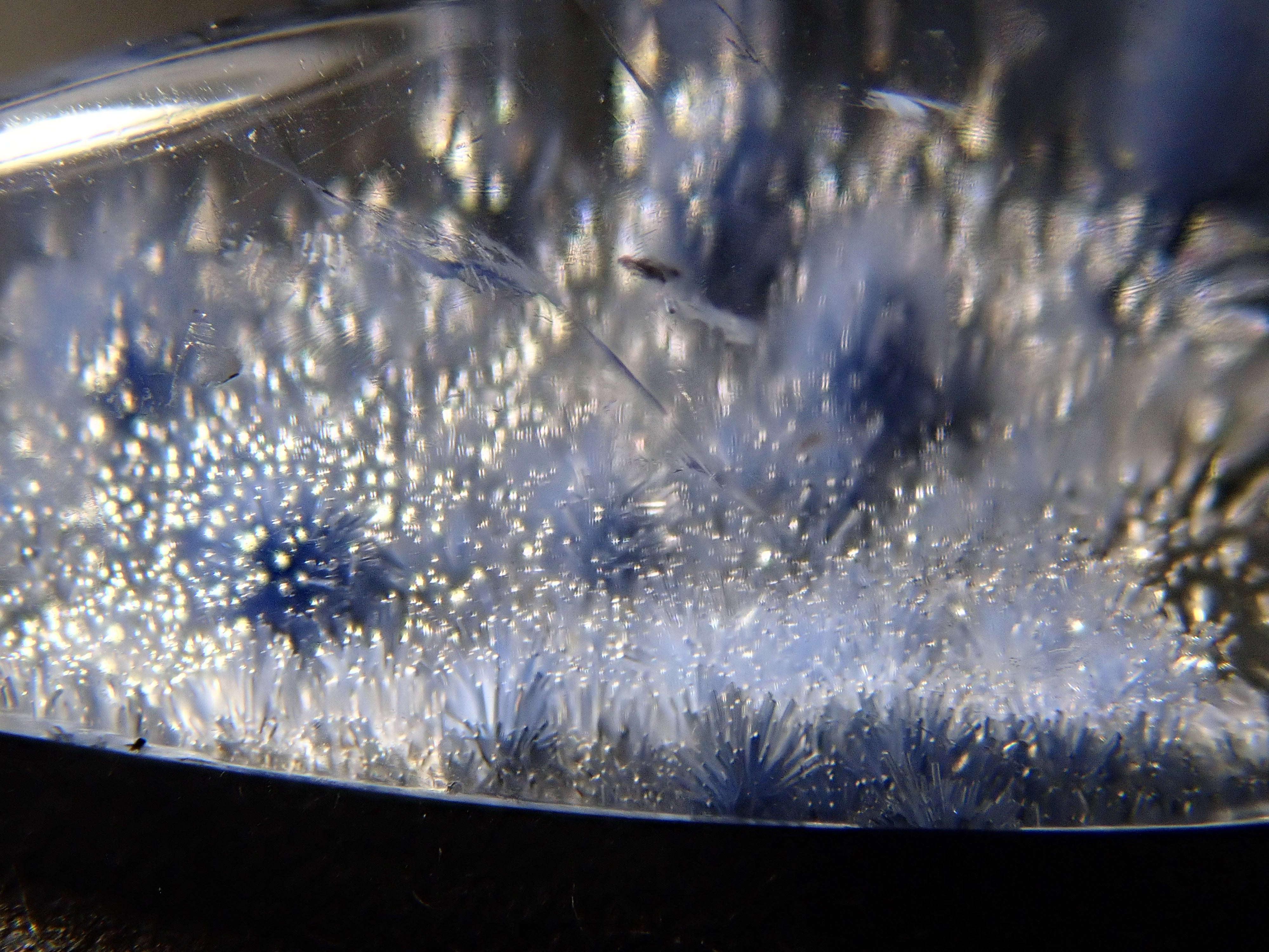 石英,日文稱為“水晶”,在日本是一種常見的寶石,但它也是一種深邃的寶石,擁有令人難以置信的多樣性,包括紫水晶和黃水晶。本例展示了石英中的藍線石,其美麗的藍色內含物令人嘆為觀止。沒有其他寶石擁有相同的圖案,這使得它成為吸引收藏家的寶石。