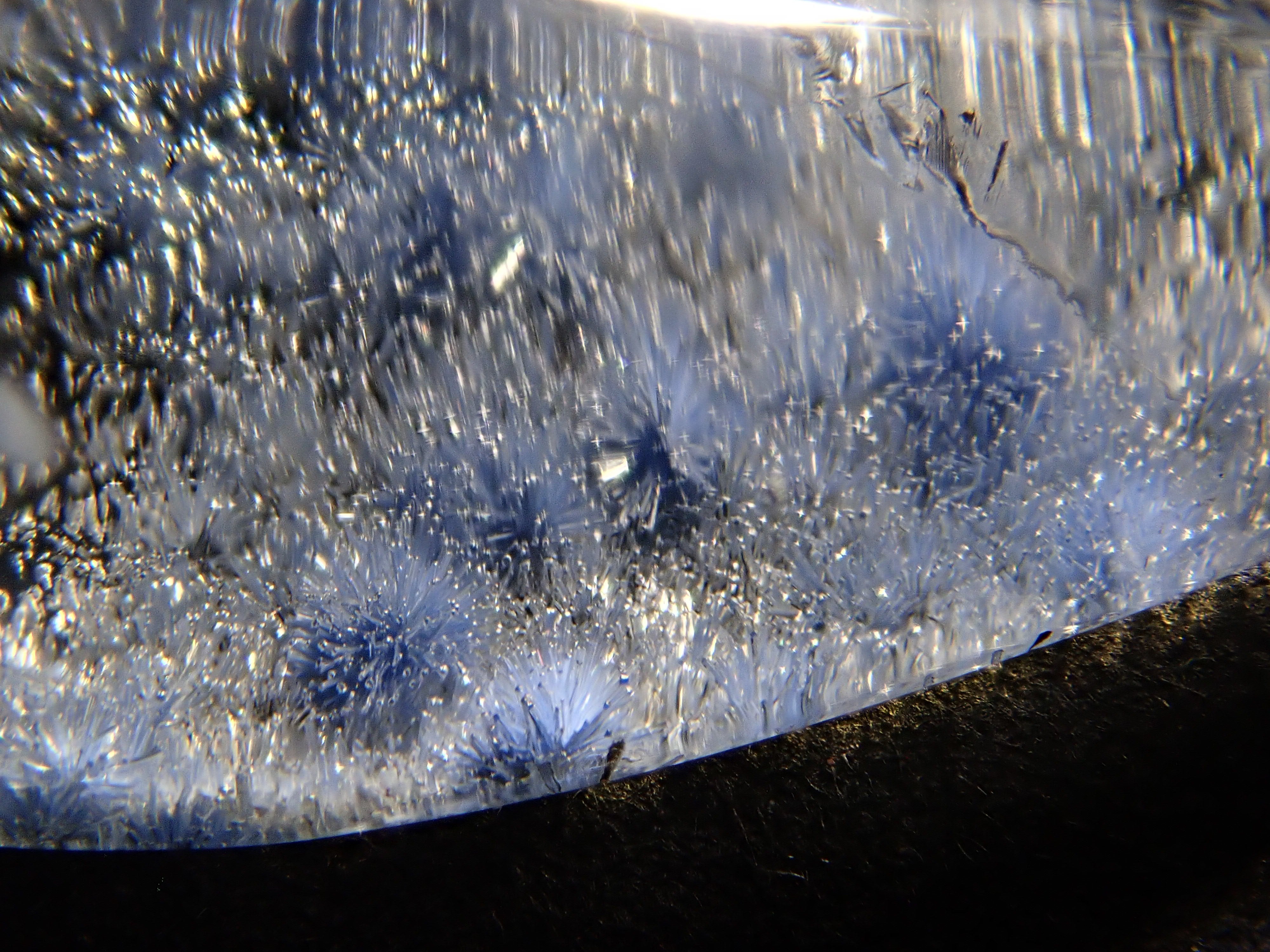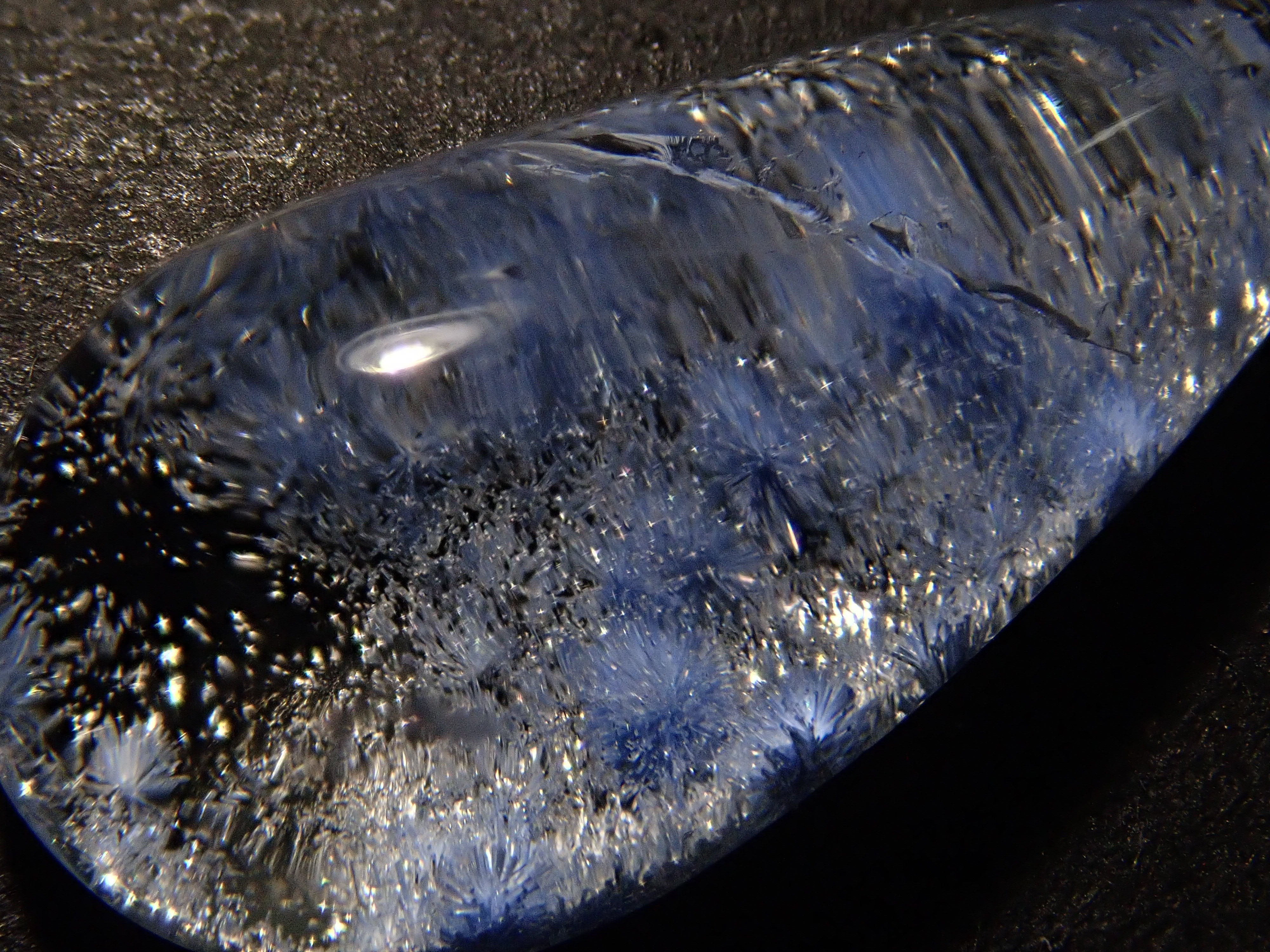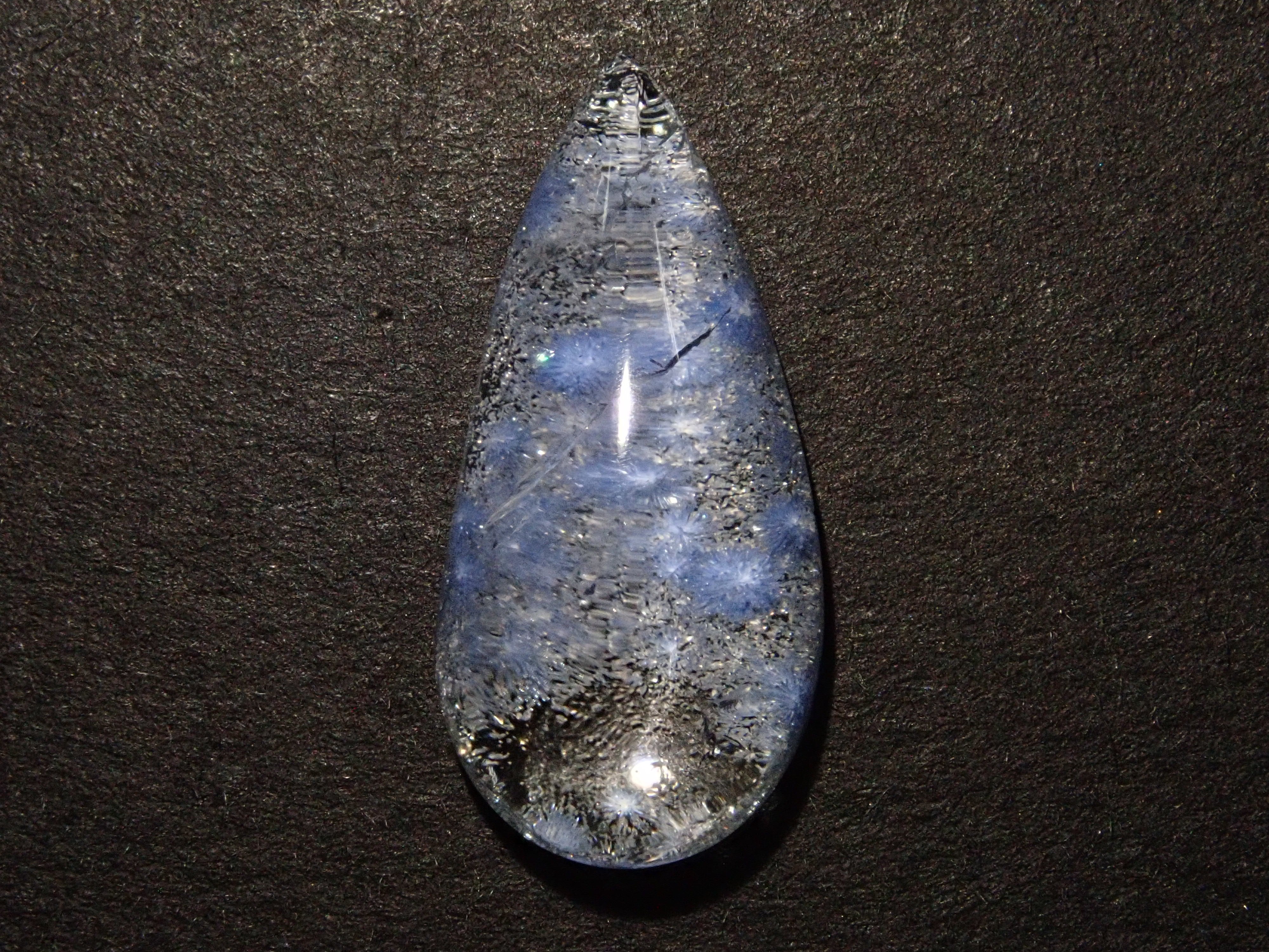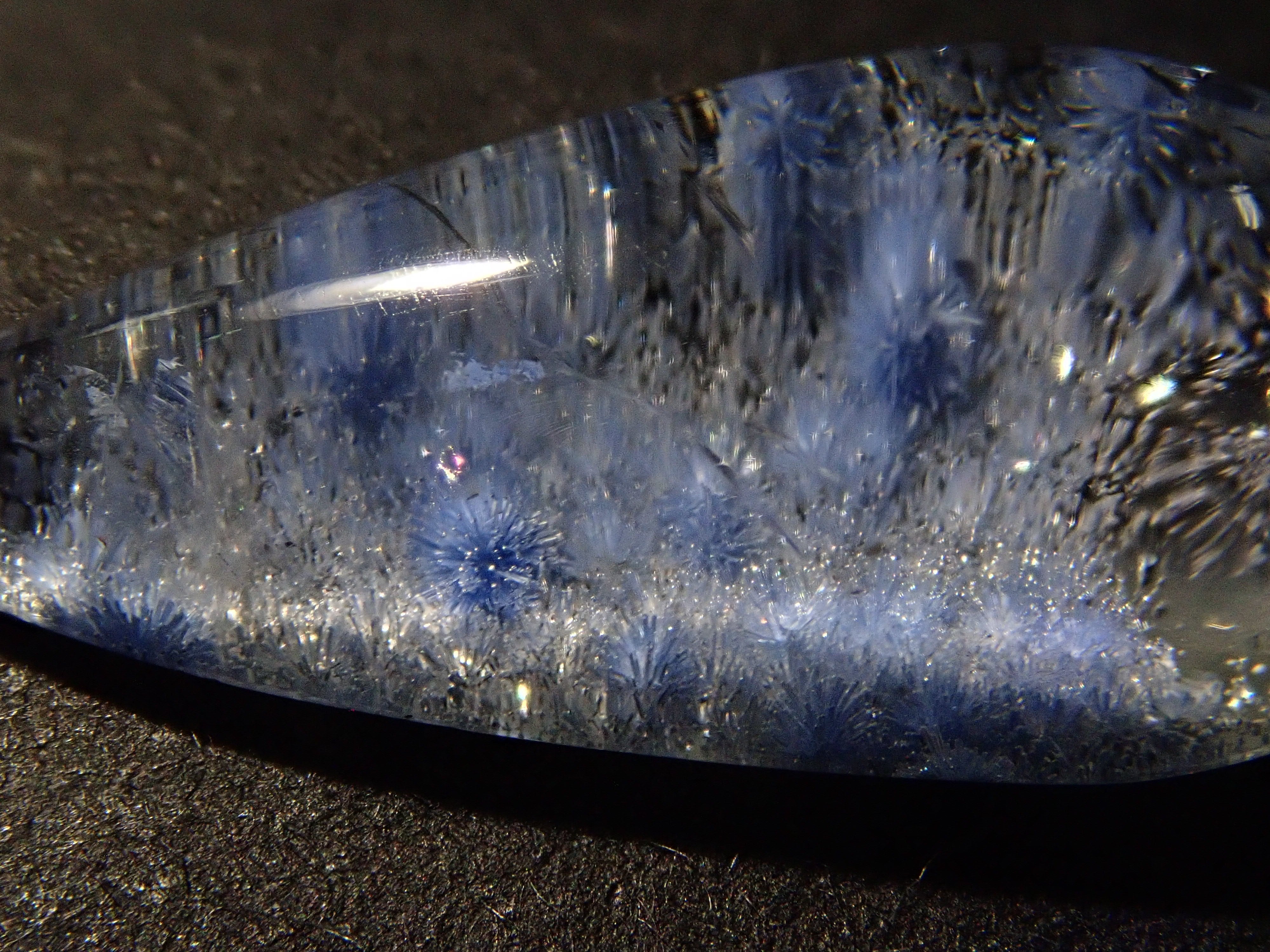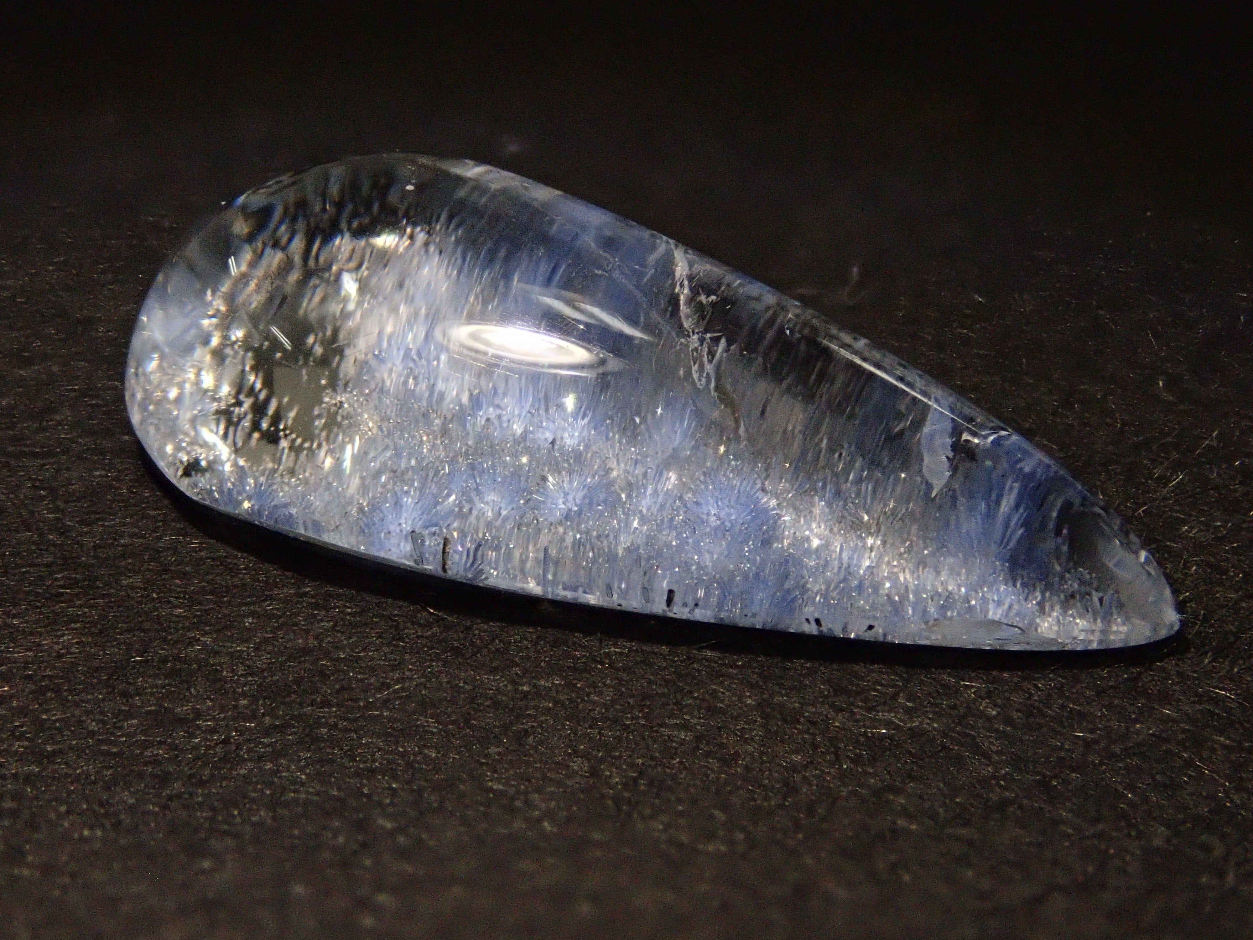 石英,日文稱為“水晶”,在日本是一種常見的寶石,但它也是一種深邃的寶石,擁有令人難以置信的多樣性,包括紫水晶和黃水晶。本例展示了石英中的藍線石,其美麗的藍色內含物令人嘆為觀止。沒有其他寶石擁有相同的圖案,這使得它成為吸引收藏家的寶石。