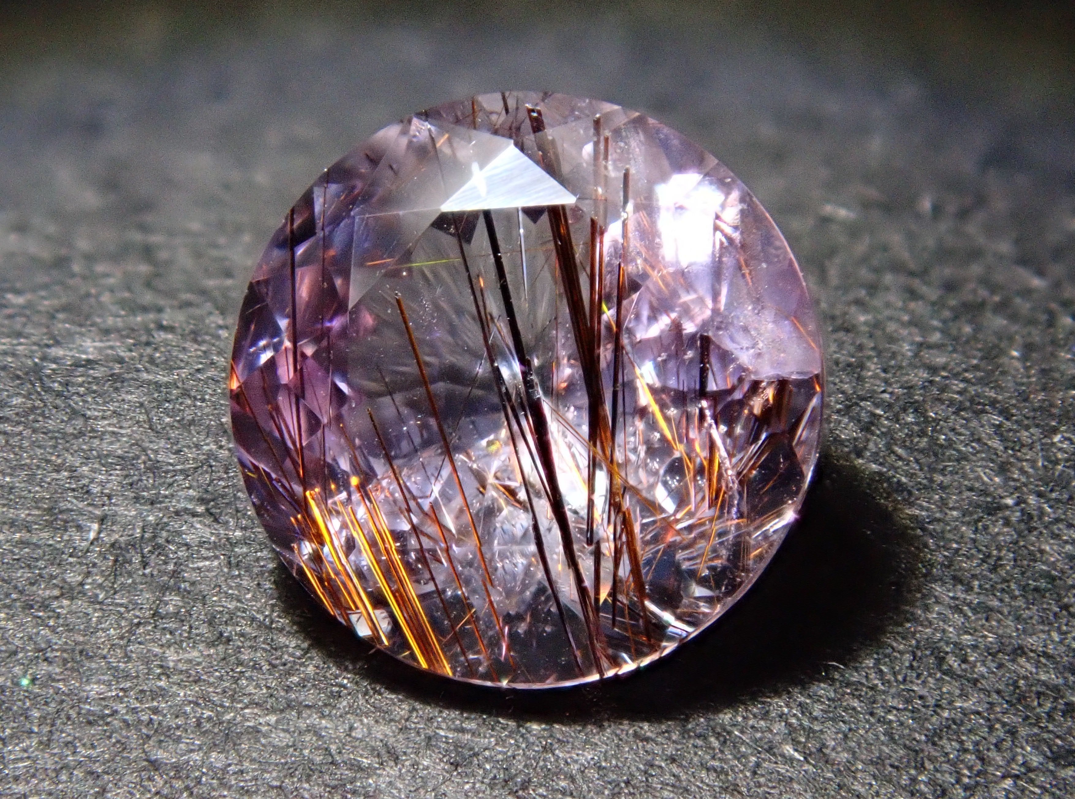 這是一顆產自巴西的璀璨圓形切割 Elestial 紫水晶,由斯里蘭卡拋光師 Sanjay 拋光。