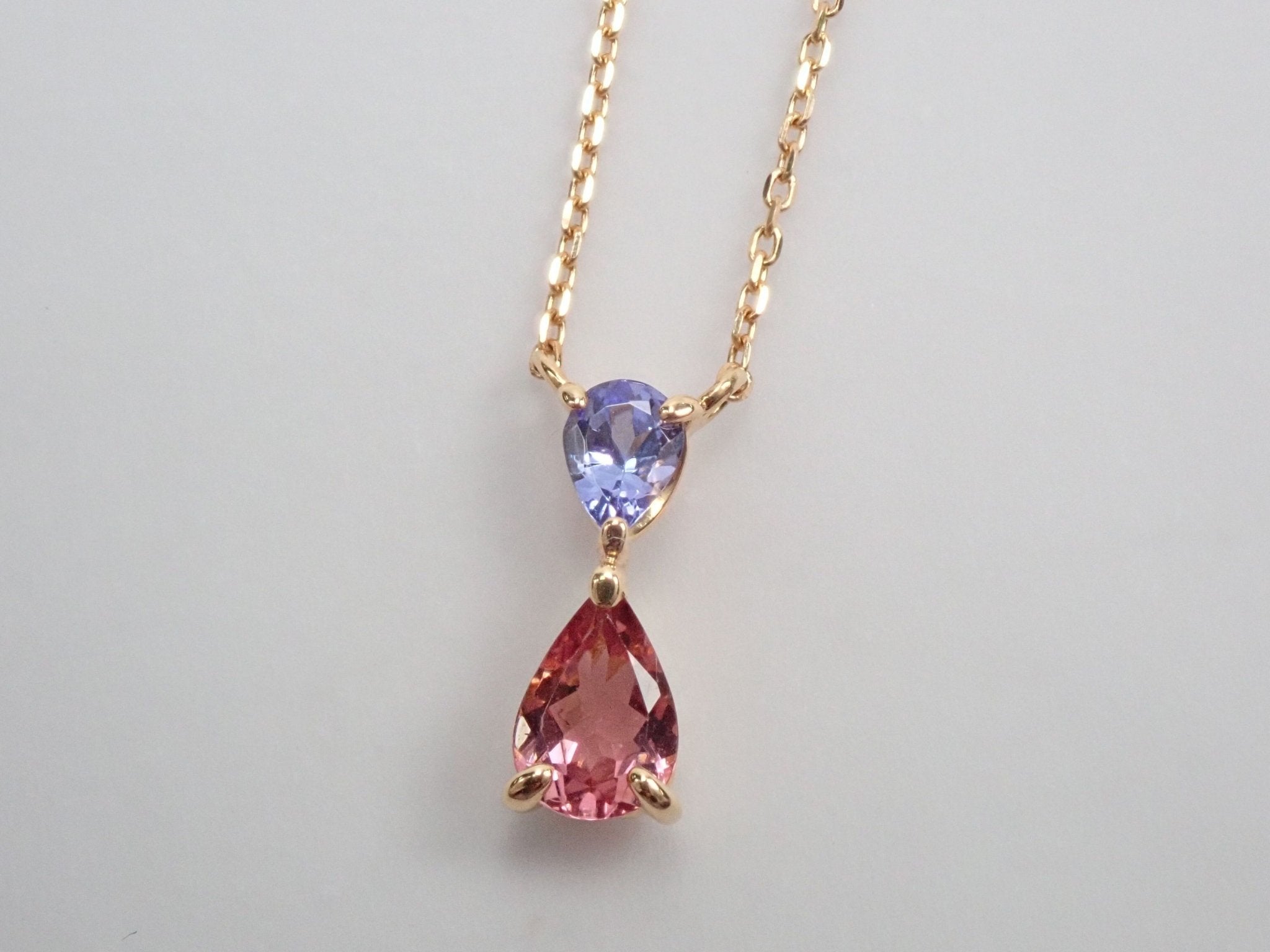 粉紅色碧璽和坦桑石吊墜,散發著可愛的光澤。雖然可愛,但紫色的組合給人一種美麗的印象。我也喜歡簡單的設計,可以隨意使用,也可以在特殊場合使用。