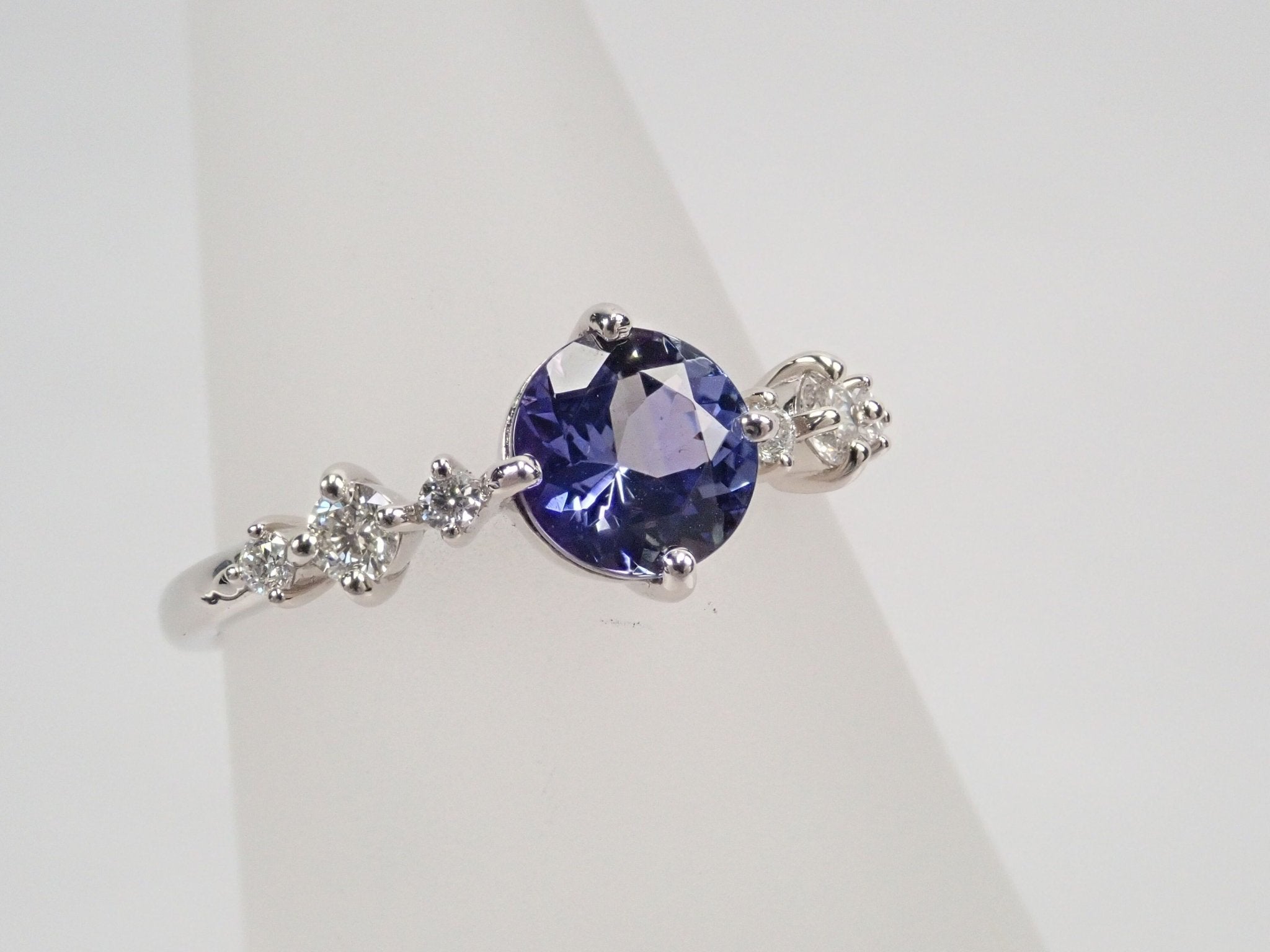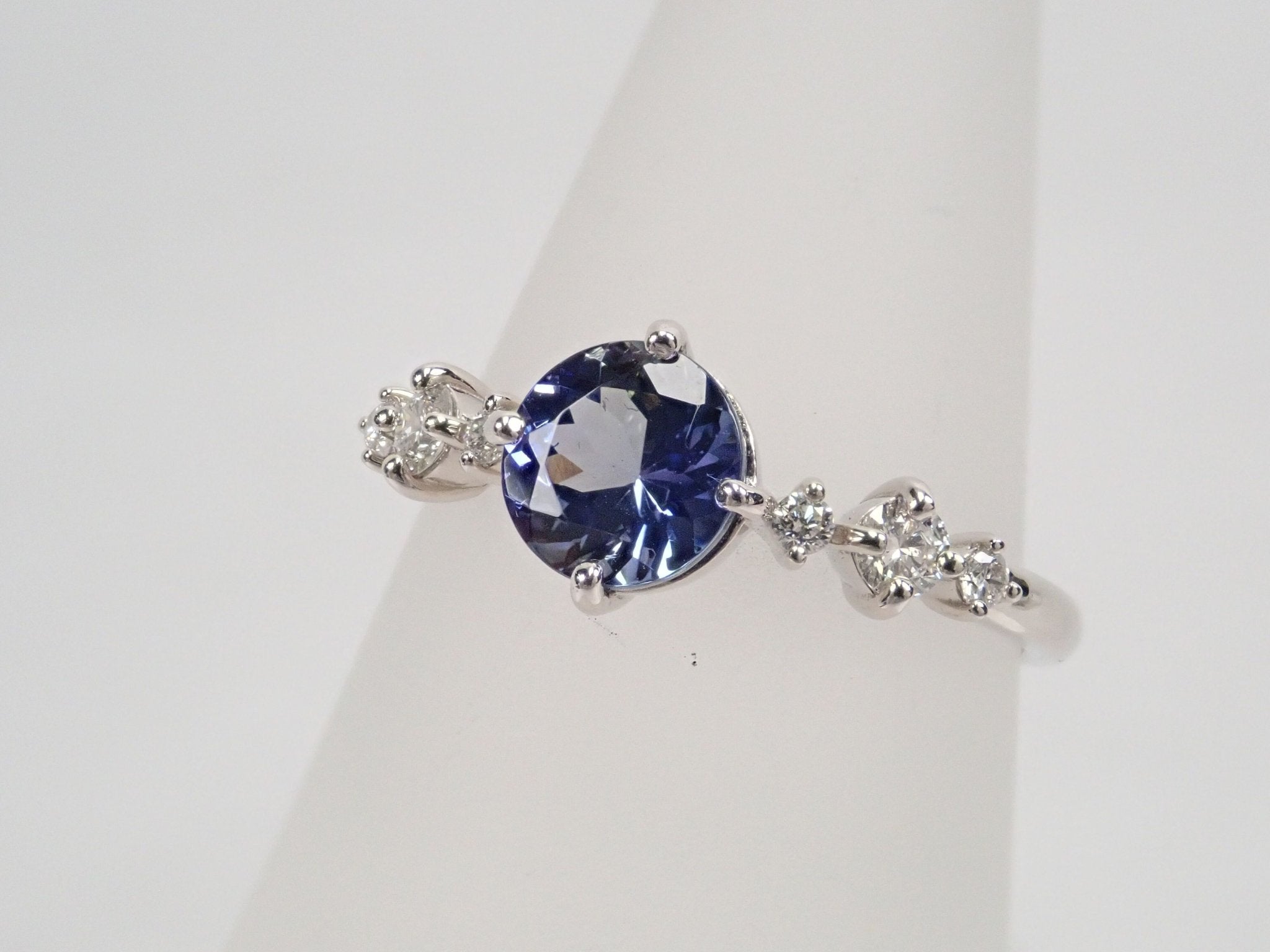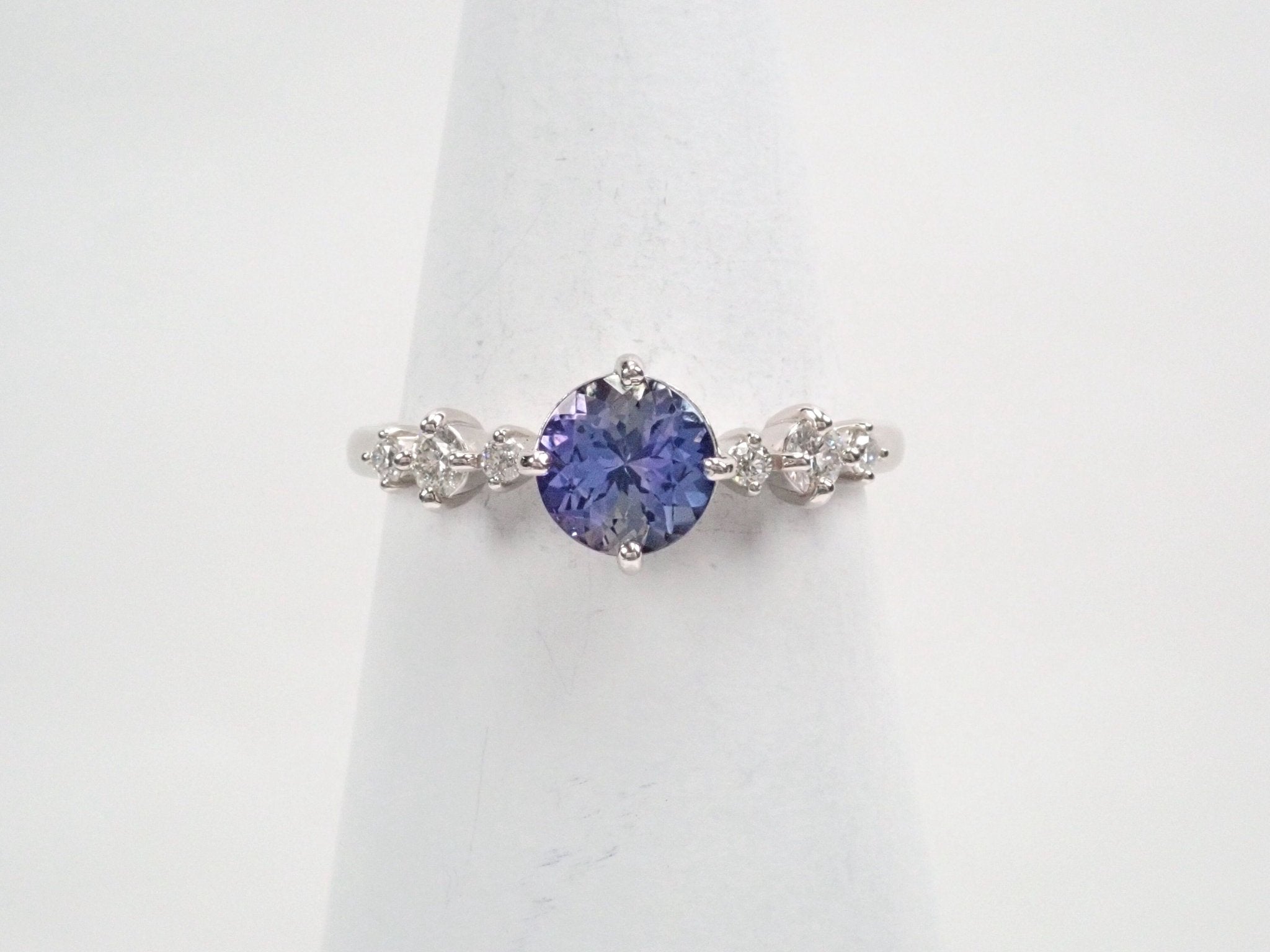 圓形切割坦桑石的美麗和存在感將令您驚嘆不已。珠寶周圍的鉑金和鑽石給人一種酷炫而聰明的印象。我認為它非常適合正式場合。