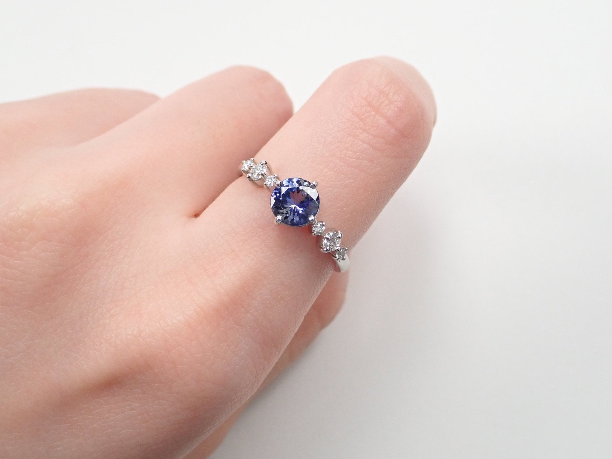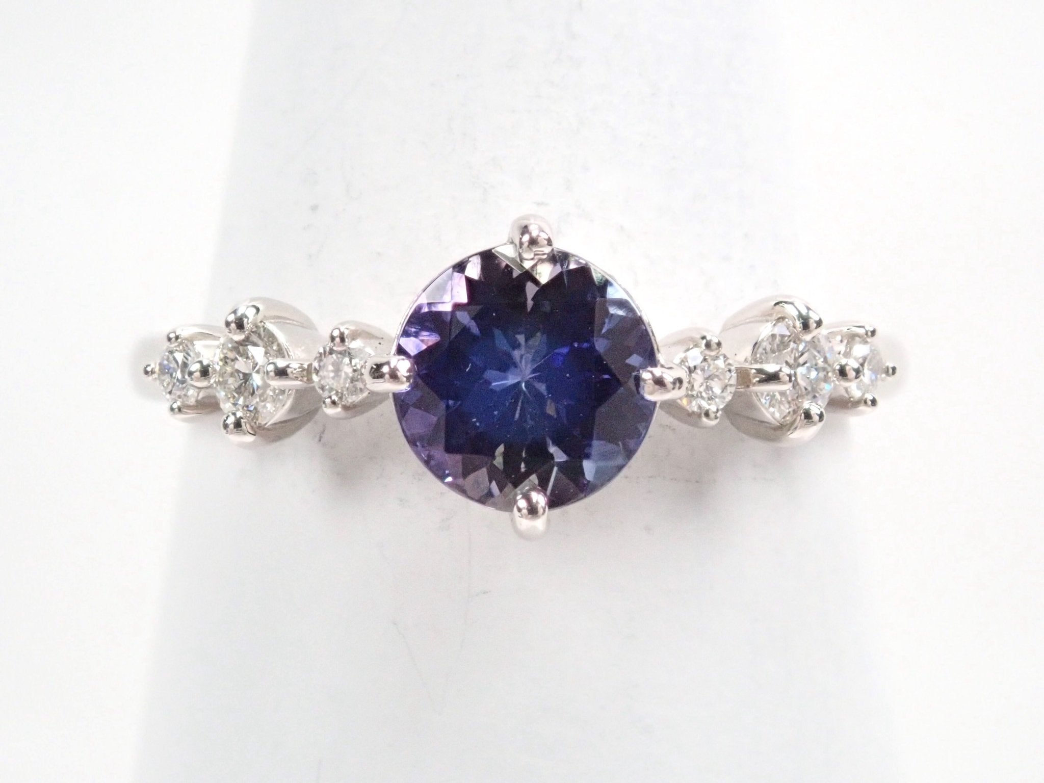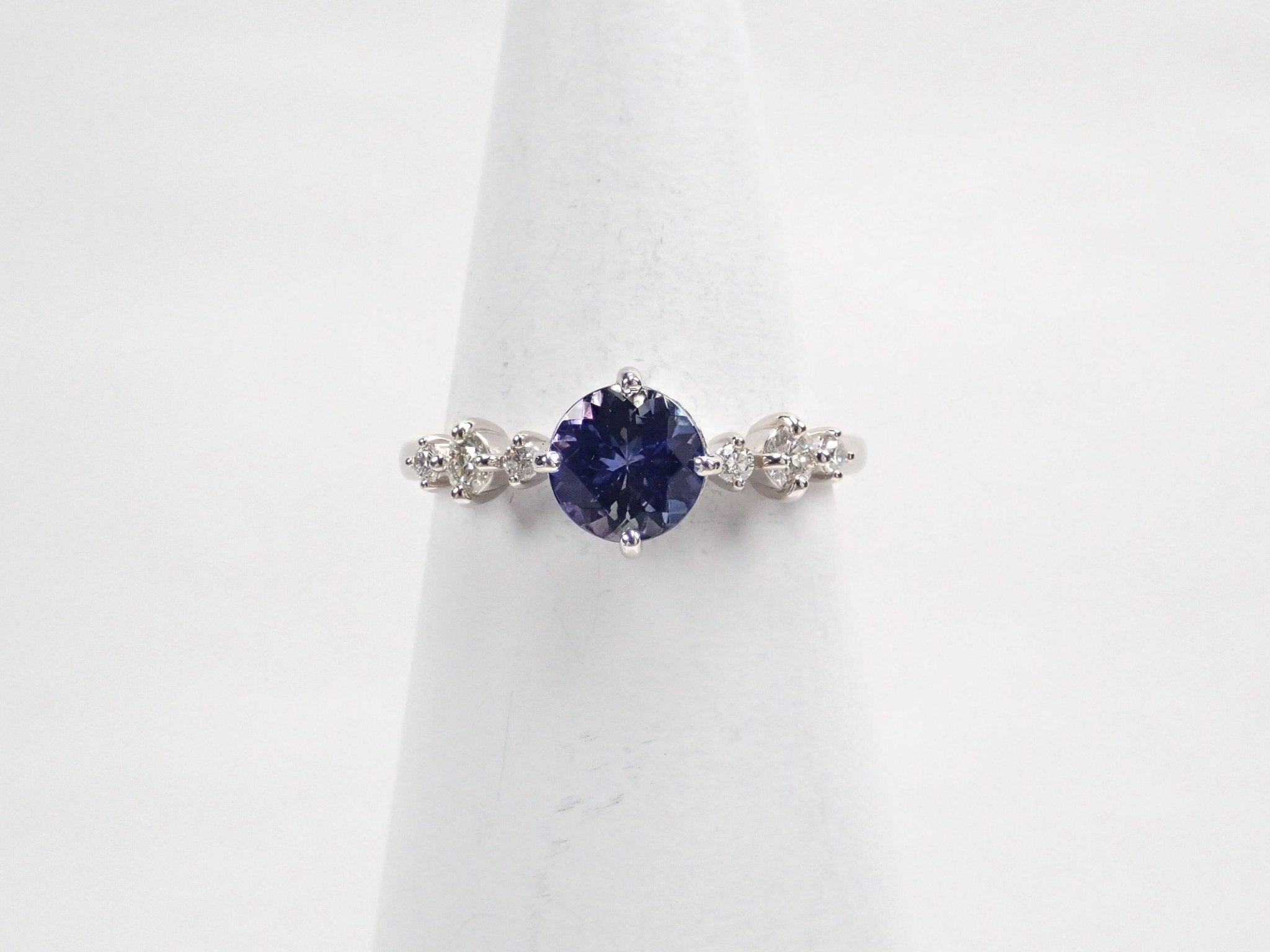 圓形切割坦桑石的美麗和存在感將令您驚嘆不已。珠寶周圍的鉑金和鑽石給人一種酷炫而聰明的印象。我認為它非常適合正式場合。