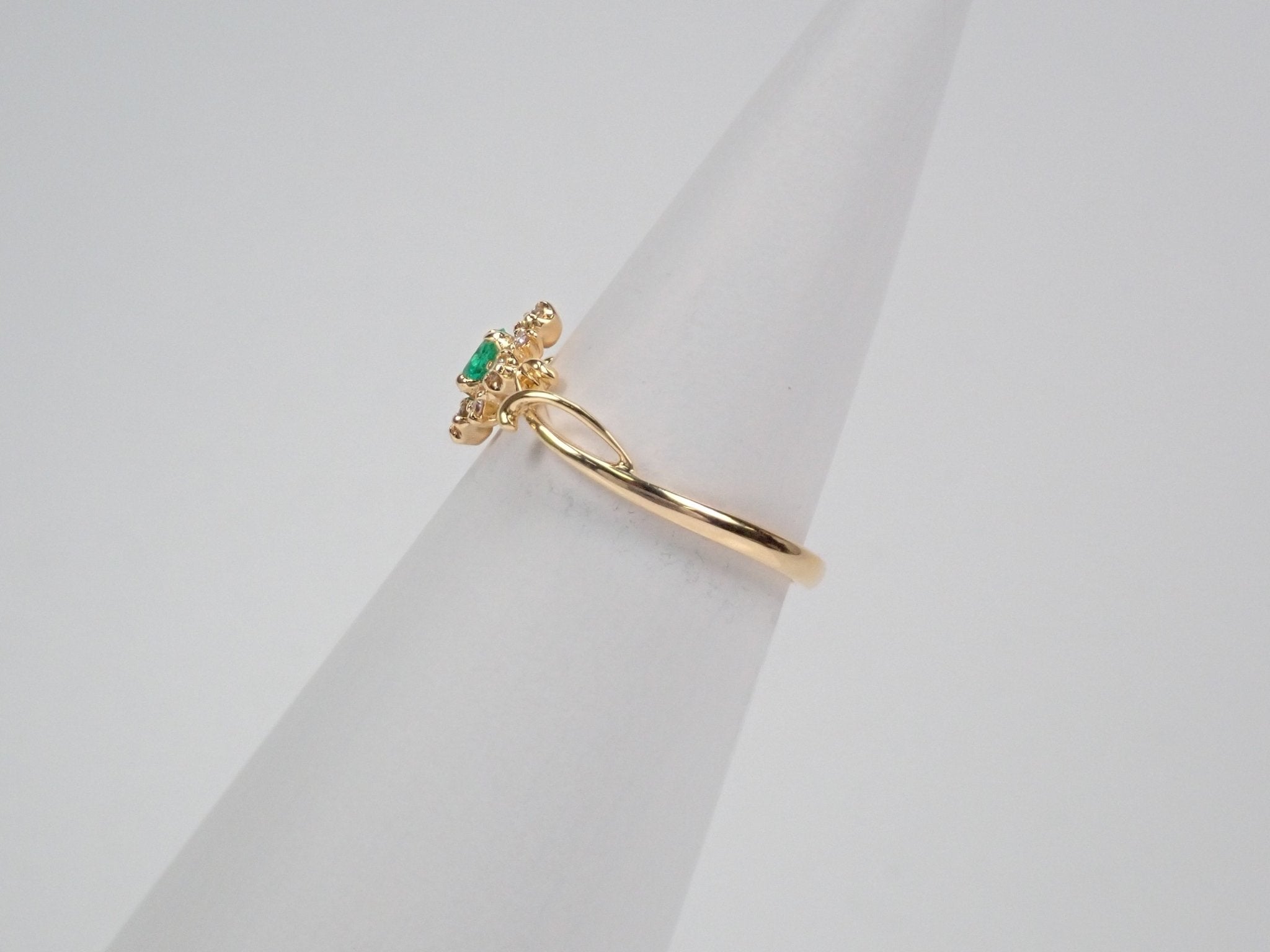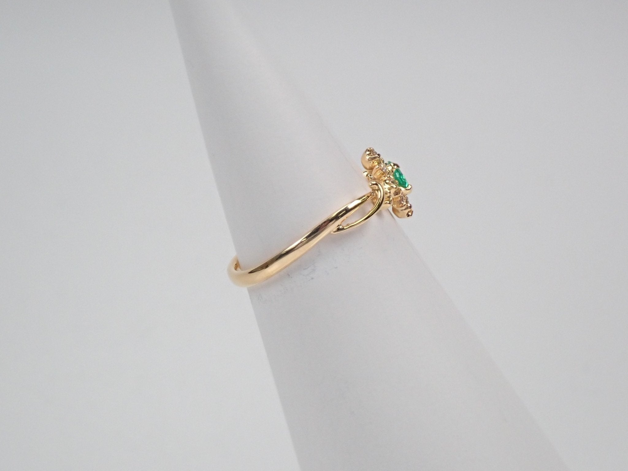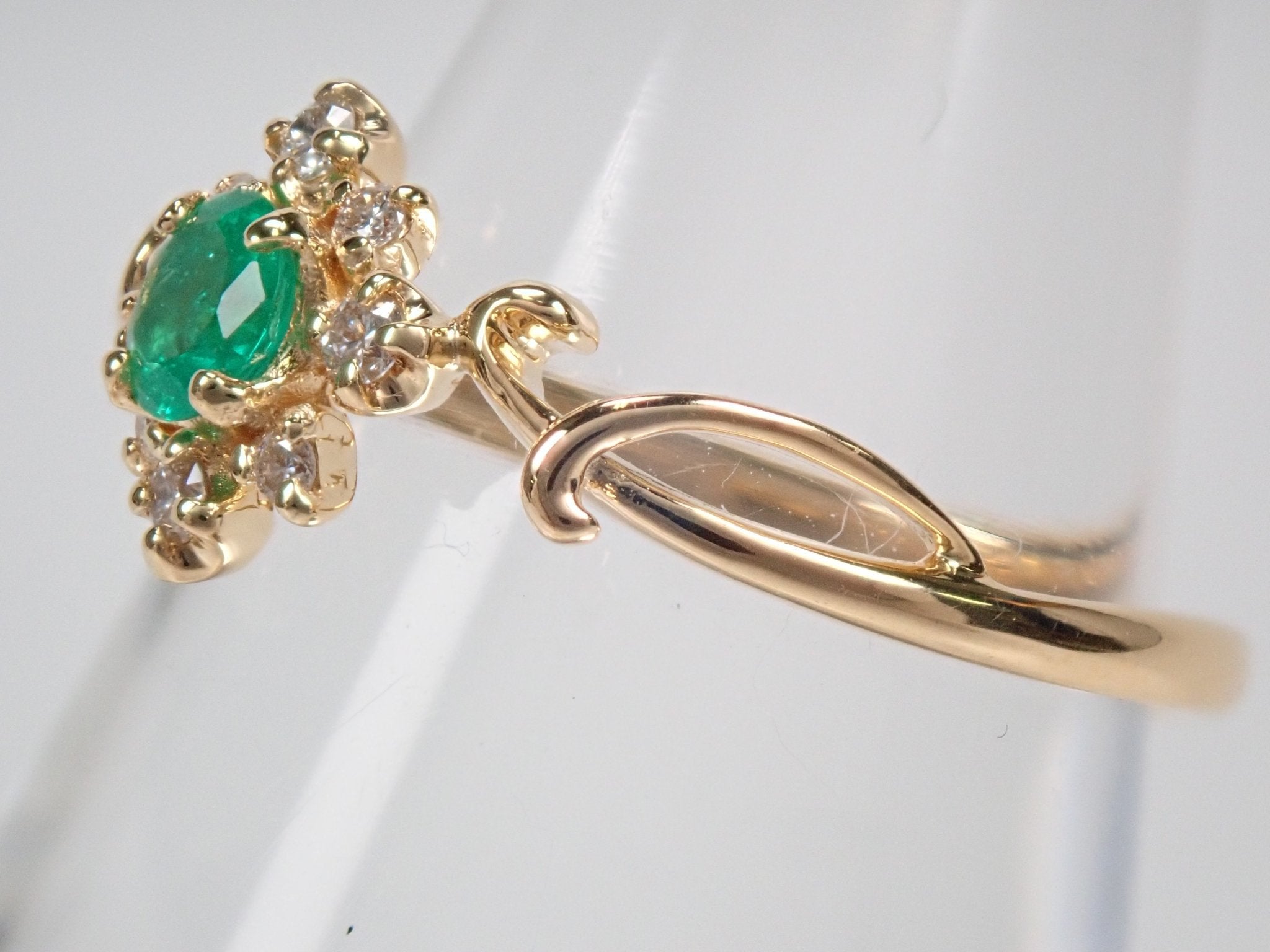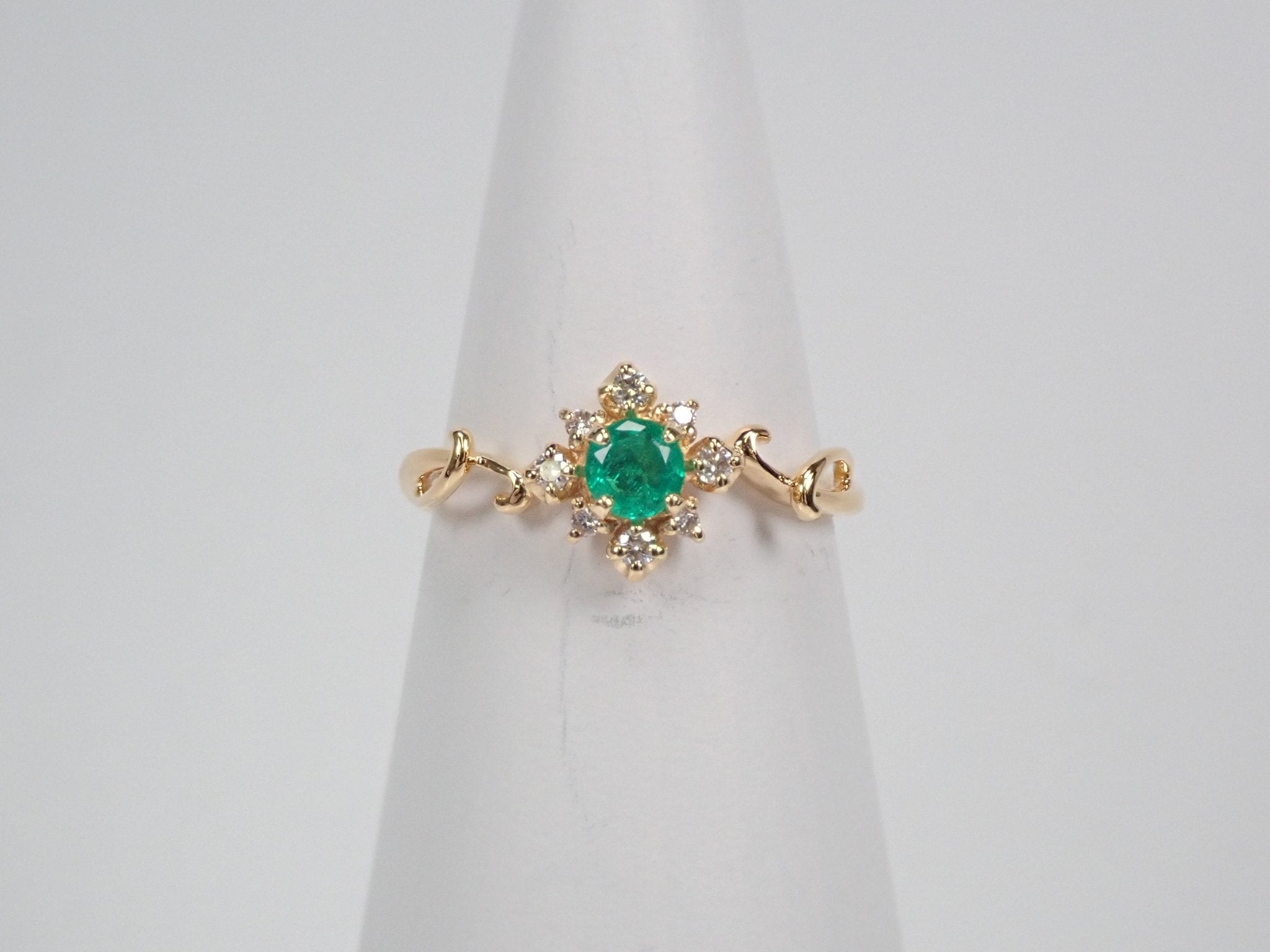 祖母綠具有令人印象深刻的深綠色,神秘得無法用言語來形容。鑽石增添了一絲魅力,手臂上的蔓藤花紋圖案給人溫柔精緻的印象。俏皮的設計不僅適用於正式場合,也適用於休閒場合。