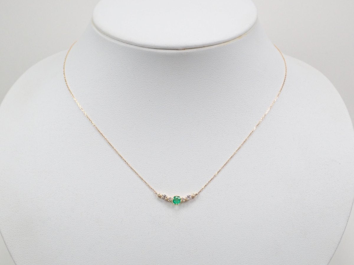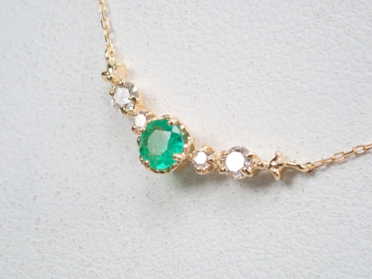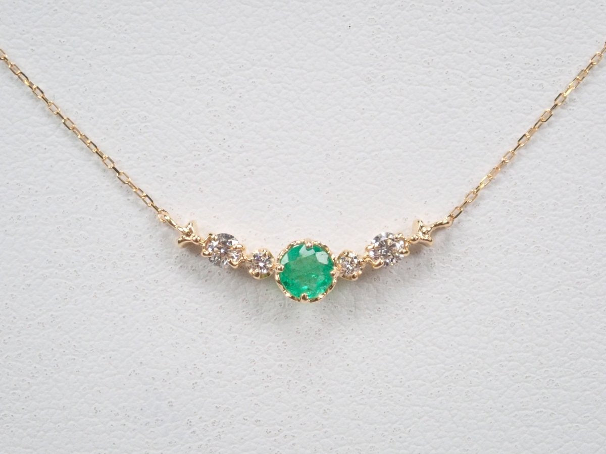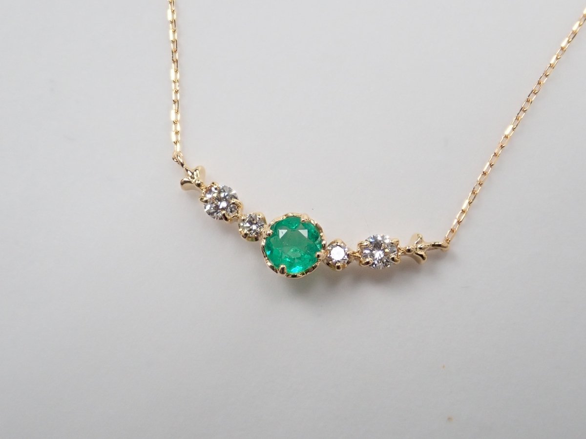 散發著高貴深綠色光芒的祖母綠。兩側鑲有鑽石,優雅的外觀讓您的頸部閃閃發光。雖然是奢華的寶石,但看起來很有用,而且很容易與平時的搭配搭配♪