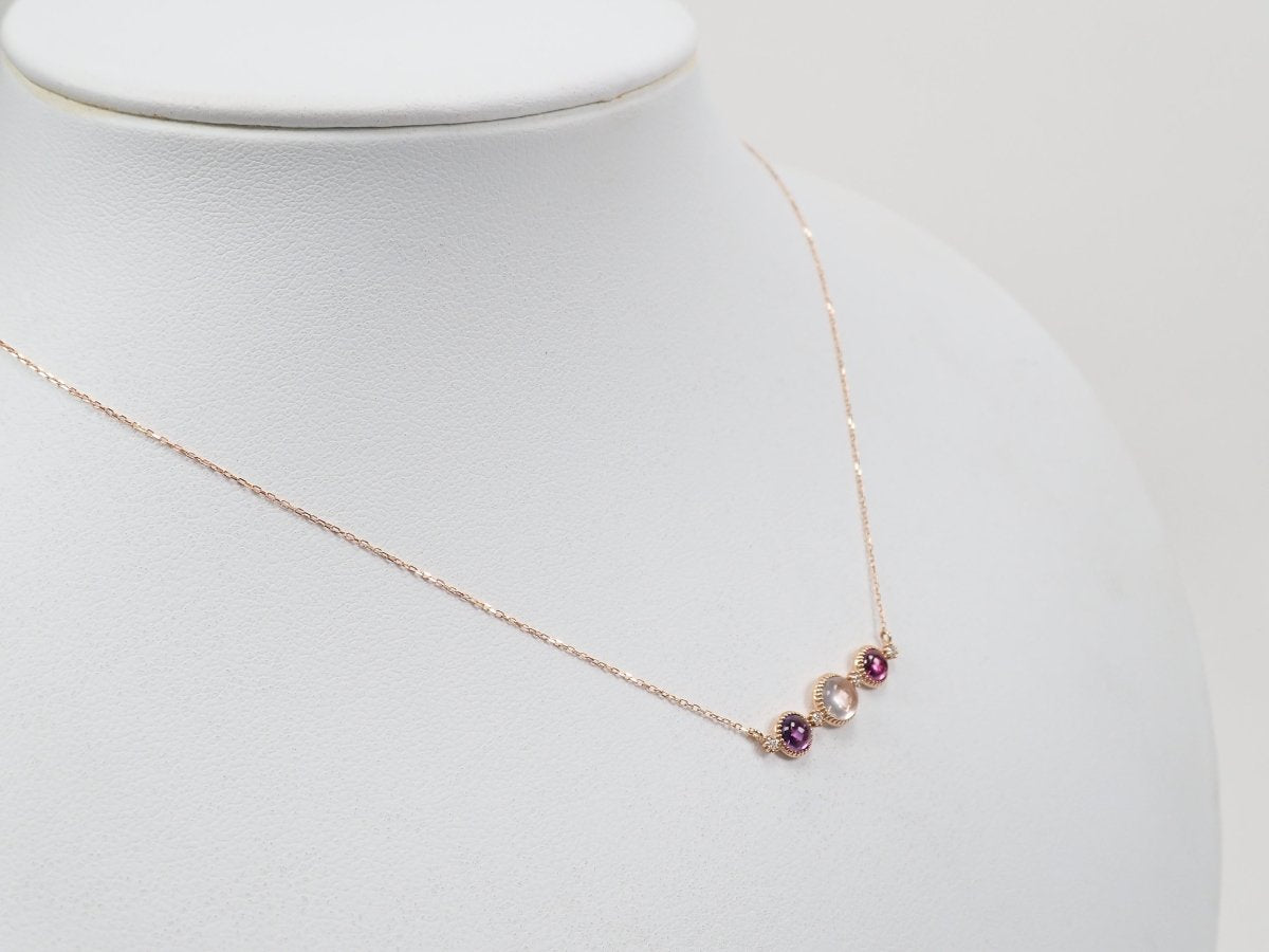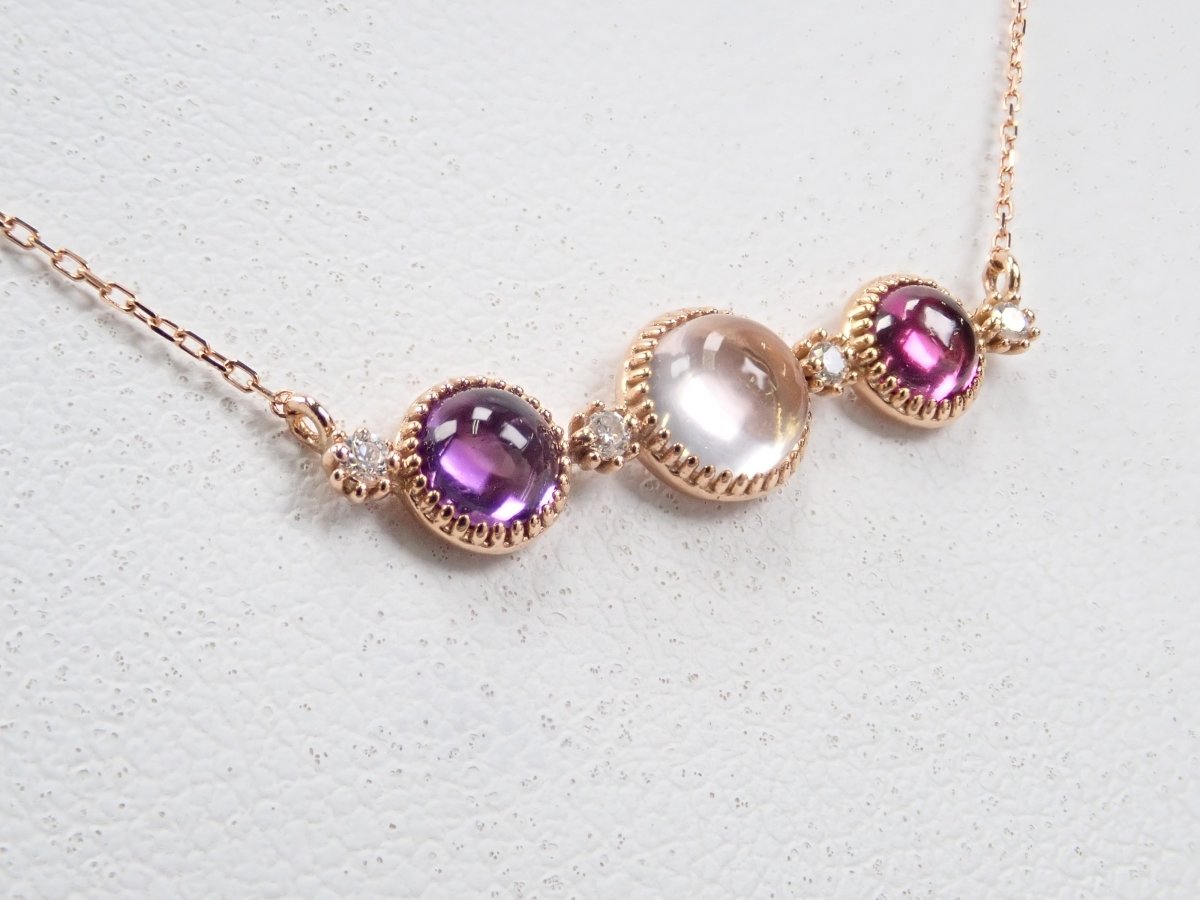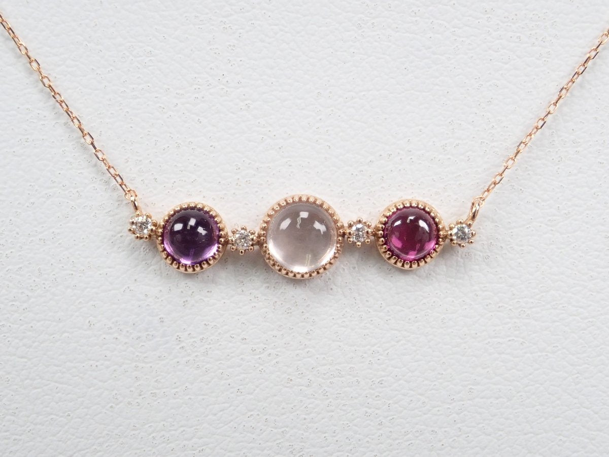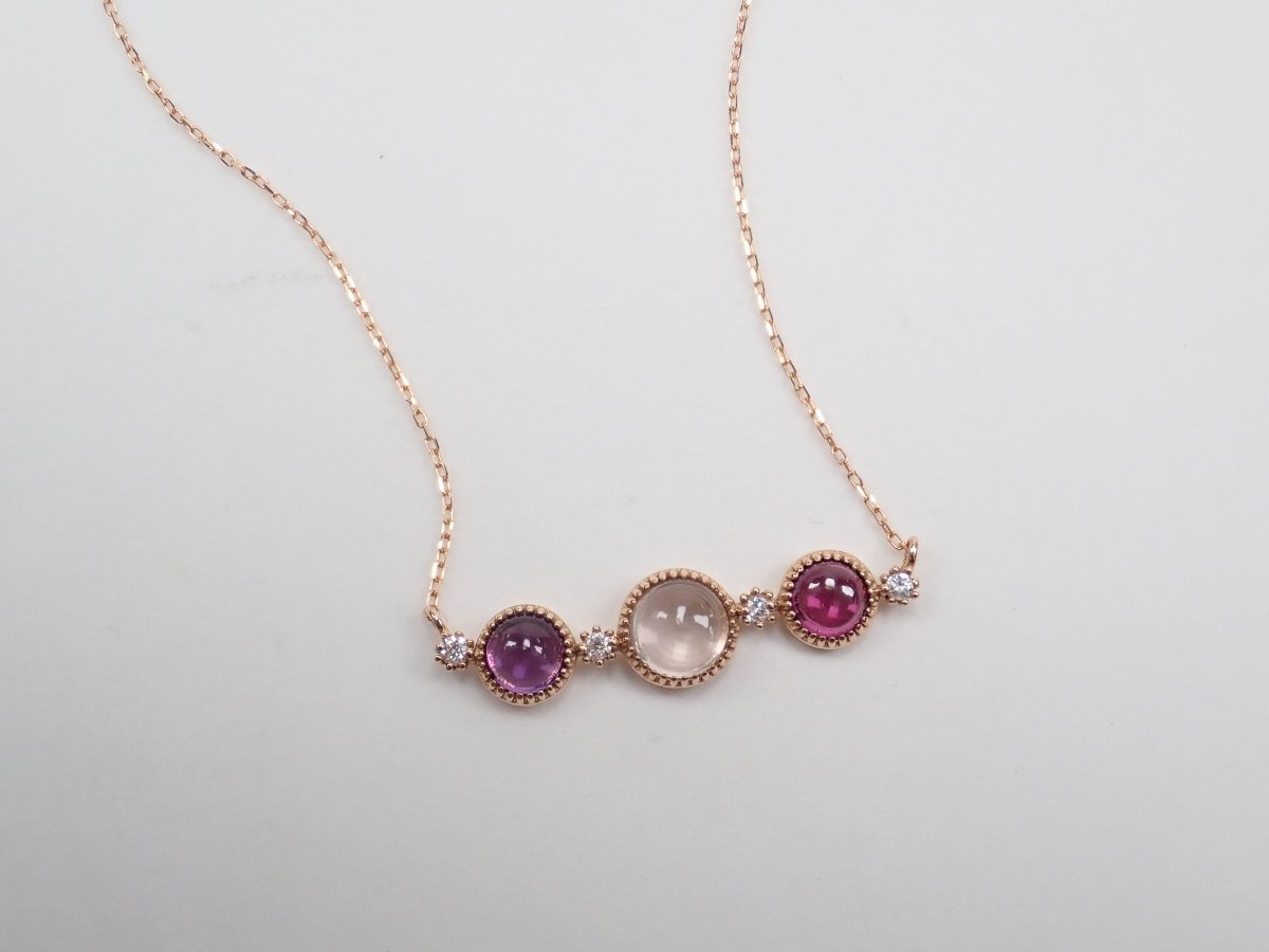 K18PG 玫瑰石英/葡萄石榴石吊墜(項鍊)