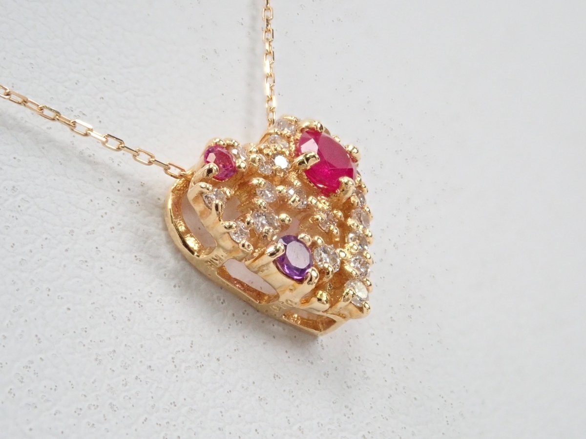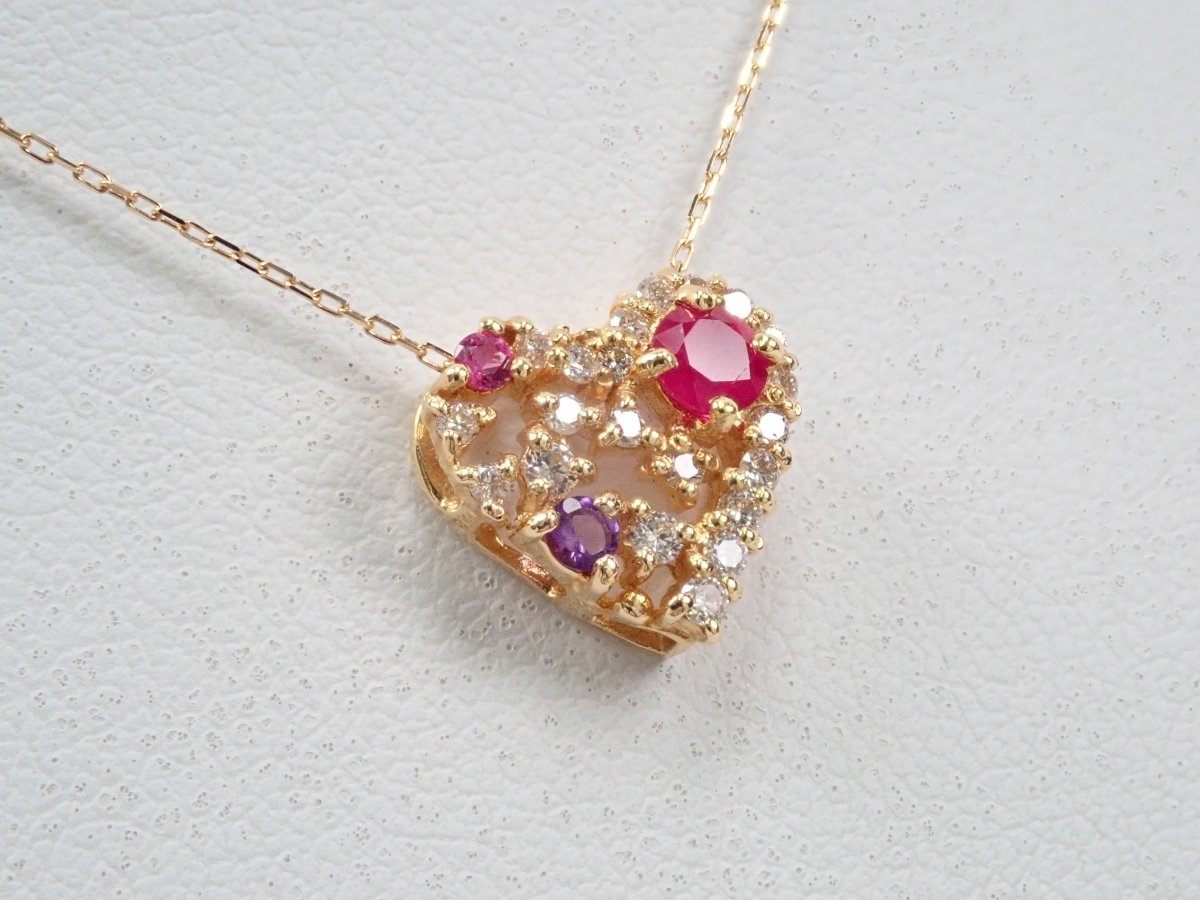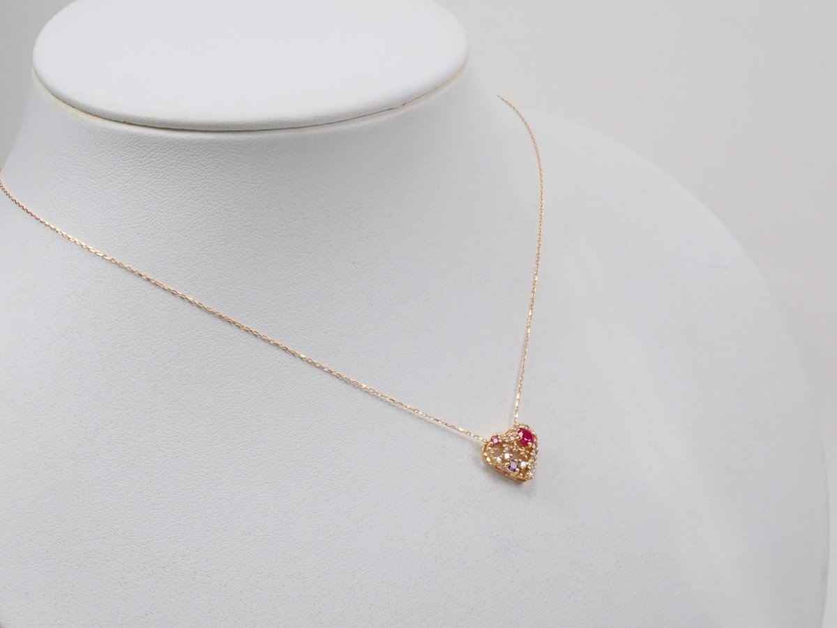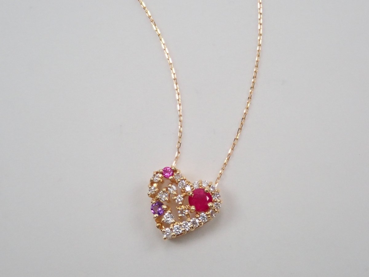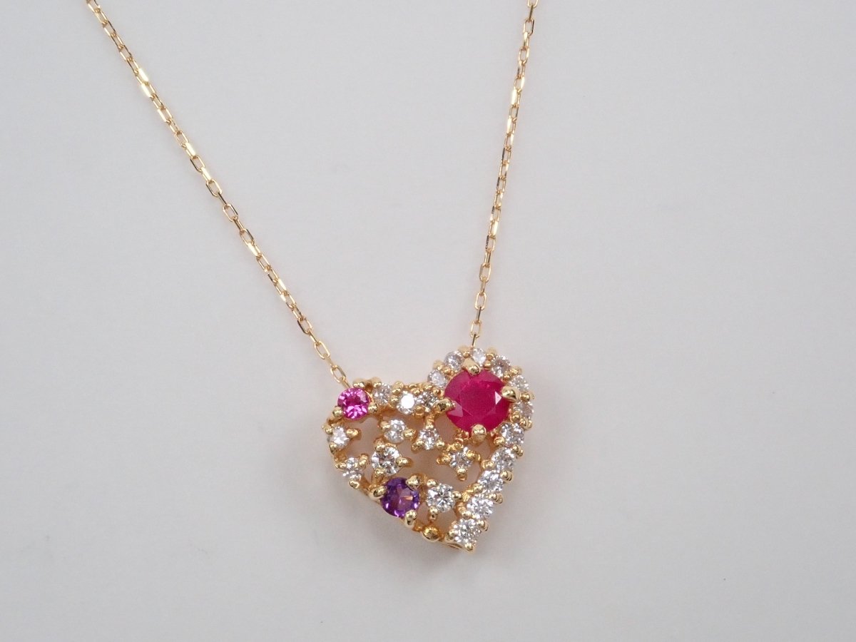 心型吊墜會讓你的少女心撲通。紅寶石、粉紅藍寶石、紫水晶等紅色寶石隨機鑲嵌在一顆裝滿閃亮白鑽的心形內,讓你有如打開珠寶盒般的興奮。