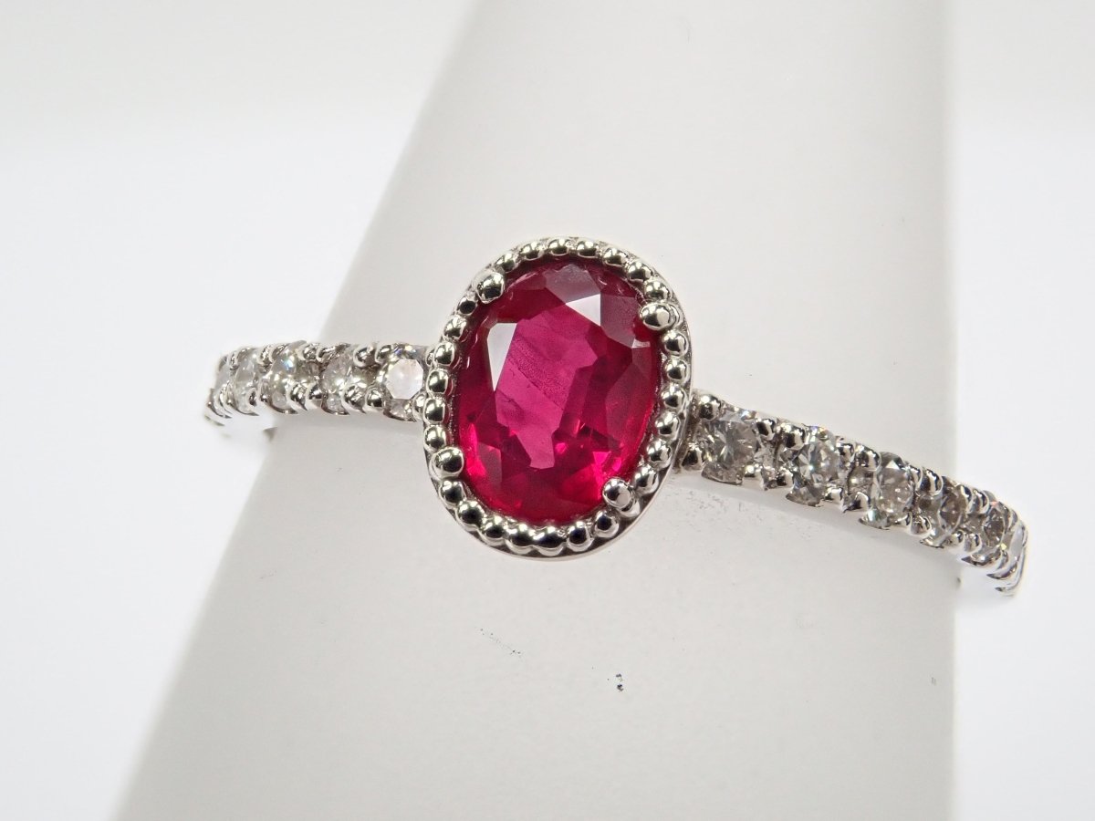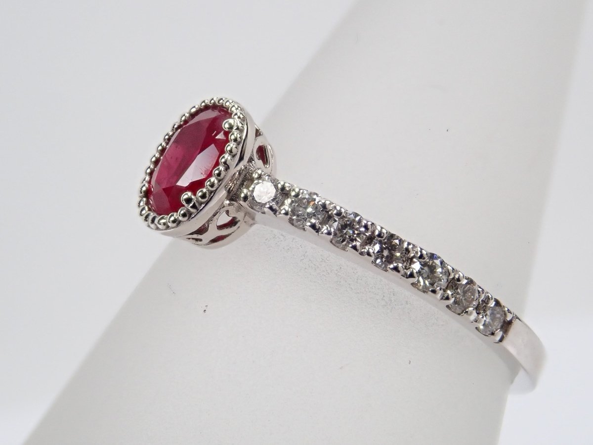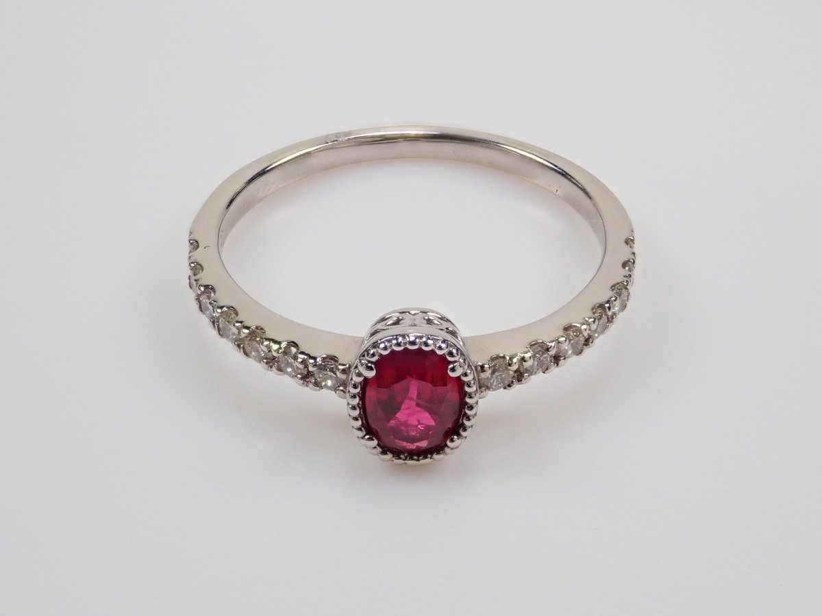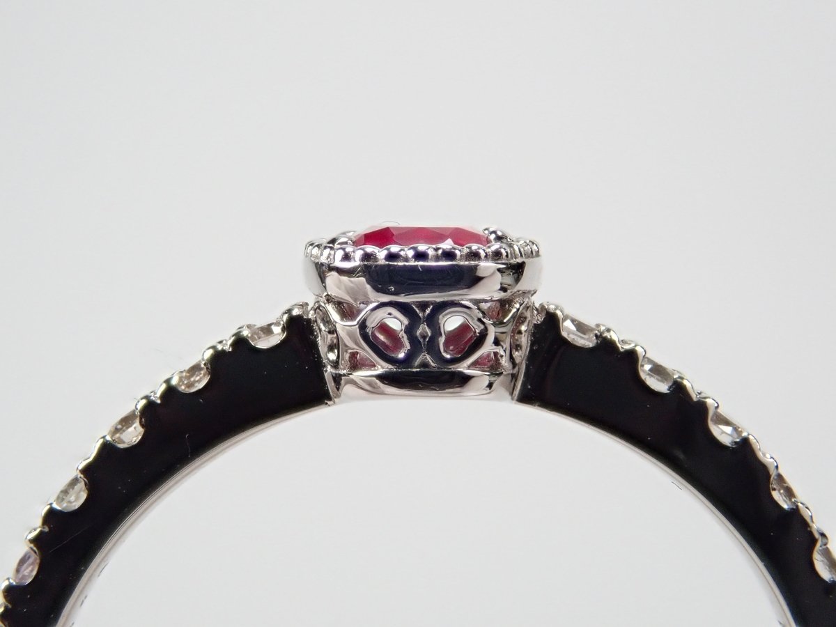 這枚戒指是用鴿血色的紅寶石製成的,據說是所有紅寶石中最好的。 0.3克拉以上的橢圓形紅寶石給人一種正統的美感。鑽石精心鑲嵌於手臂上,為指尖增添璀璨光芒。從側面看的框架設計也很精緻,因此您可以從任何角度欣賞它。包括 AIGS 身分證明書。