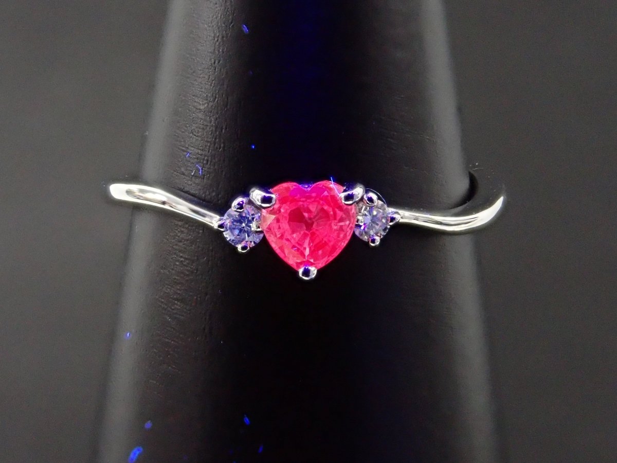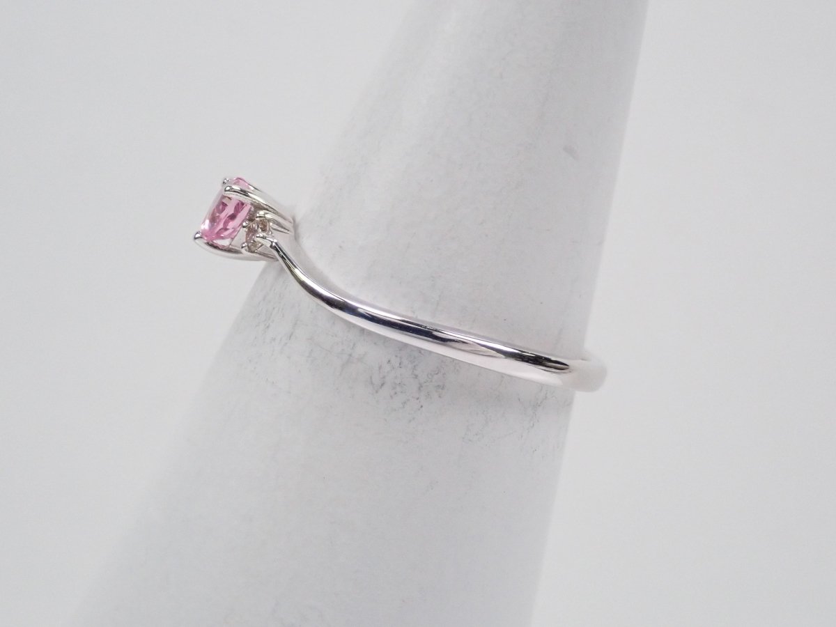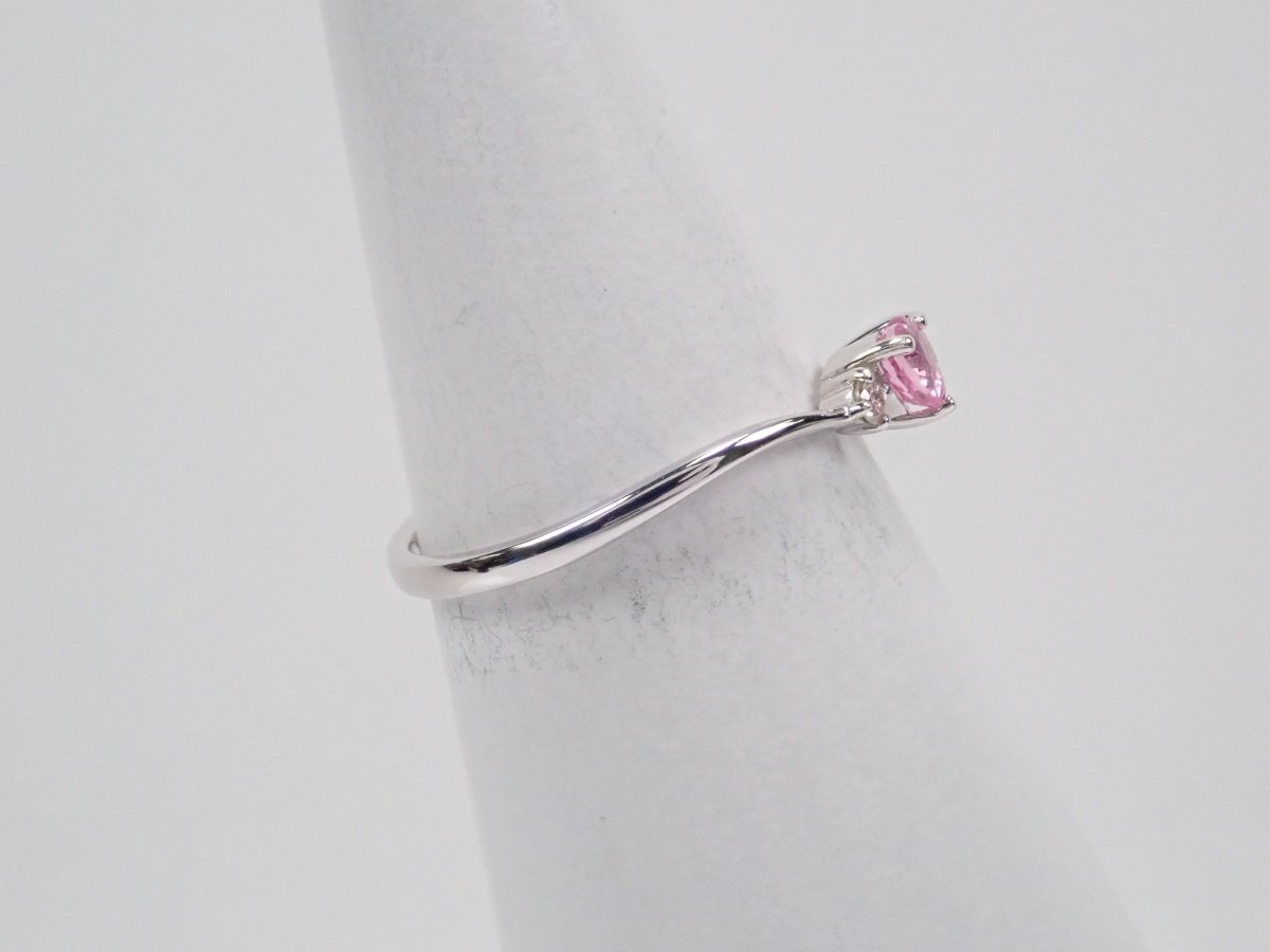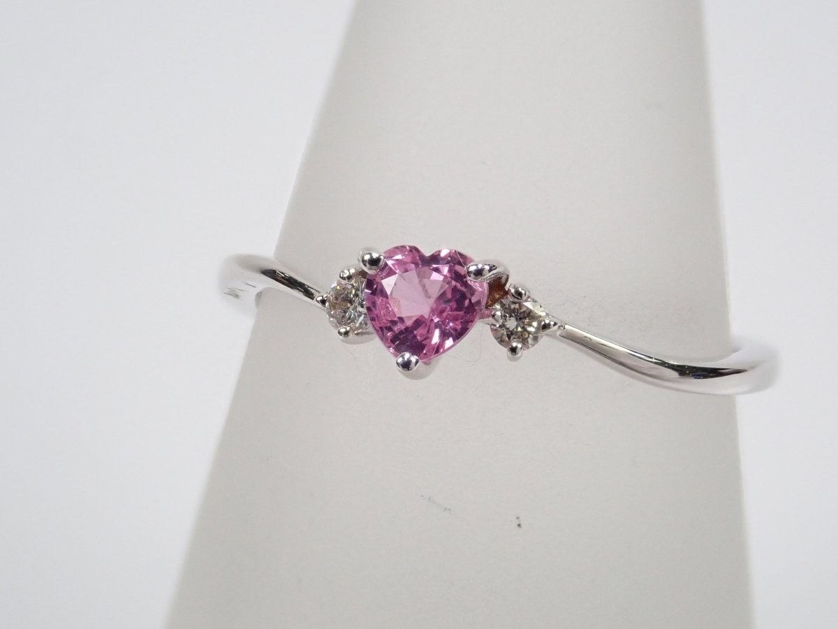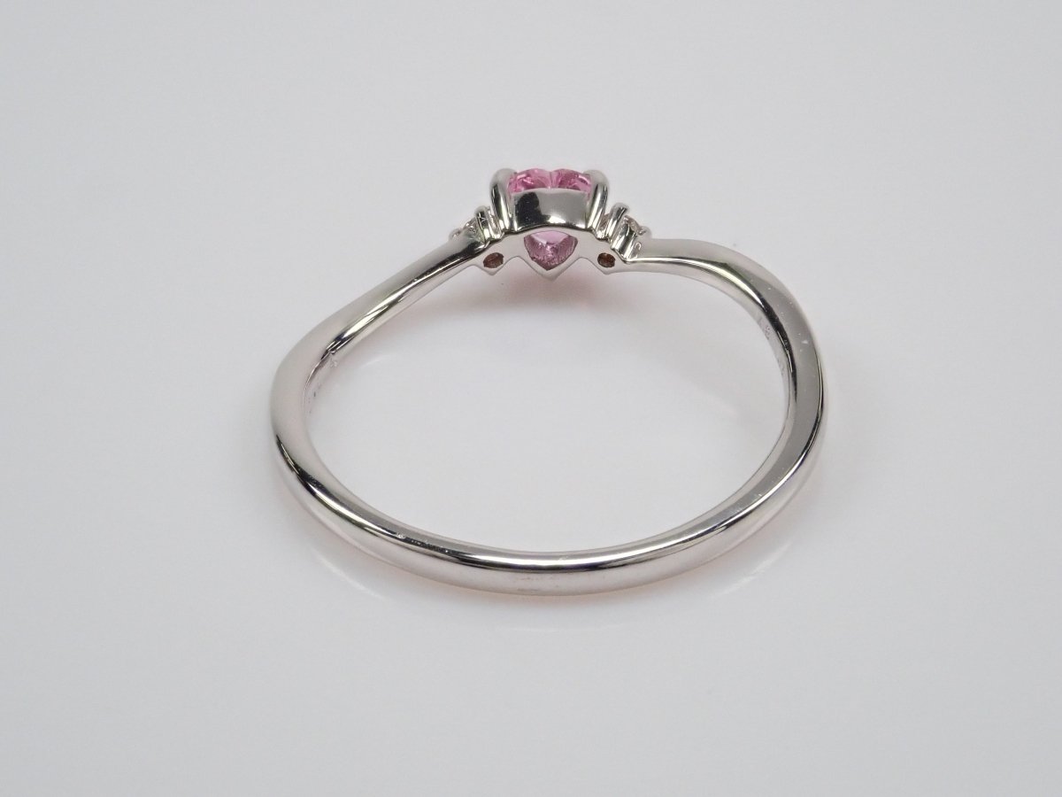 粉紅藍寶石的顏色略帶紫粉色,給人一種成熟可愛的感覺。心形的剪裁會讓你的心顫動。鑽石被包裹在珠寶中。流暢的弧形手臂營造出柔和的氛圍。