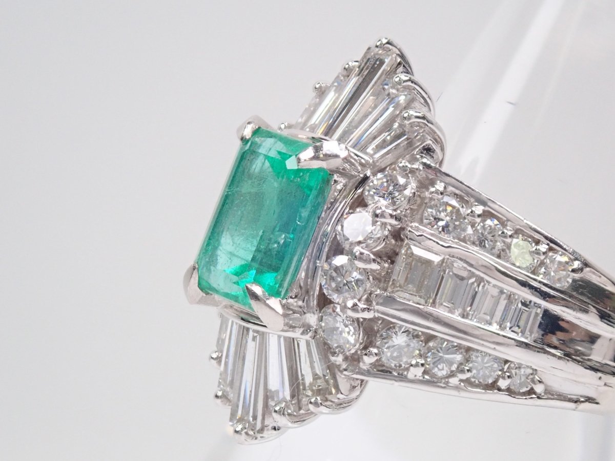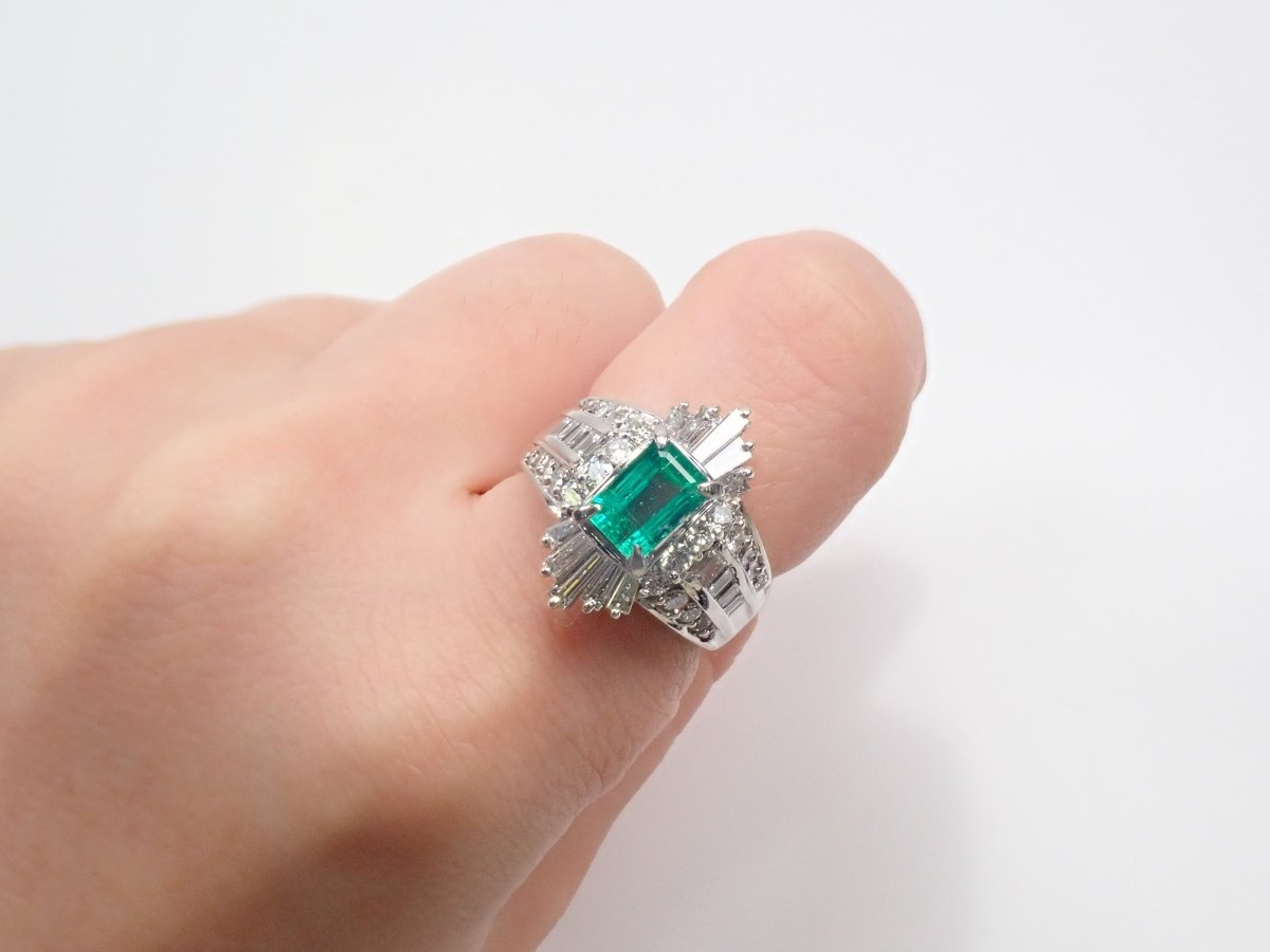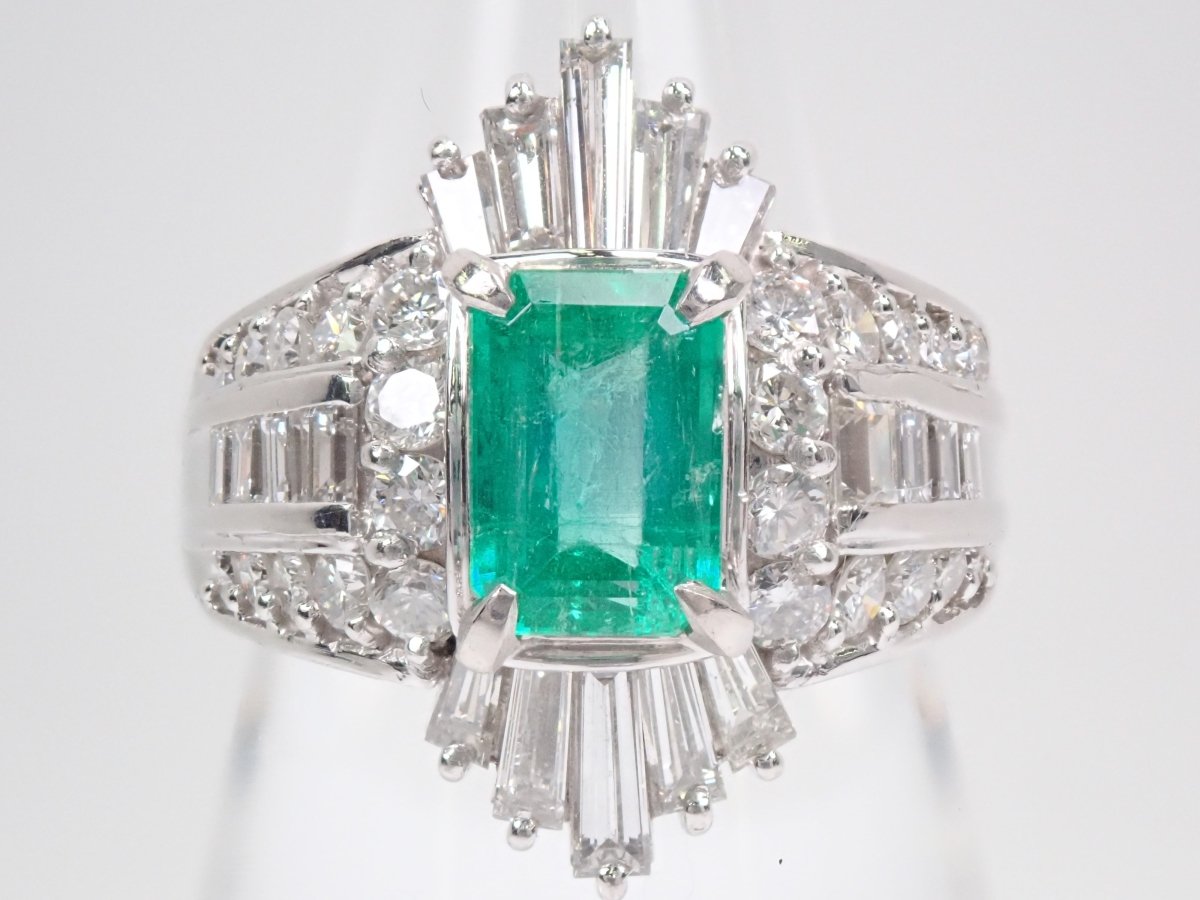 端莊的祖母綠戒指,類似王冠。祖母綠相對容易找到內含物,但這顆祖母綠的體積為 1.31 克拉,但美麗且透明感很強。採用一顆1.95克拉的奢華鑽石,讓大顆祖母綠顯得更加璀璨奪目。重量約12.0克。相當於VS~SI級的無色鑽石。 [ 多彩] 點擊此處查看產品清單。