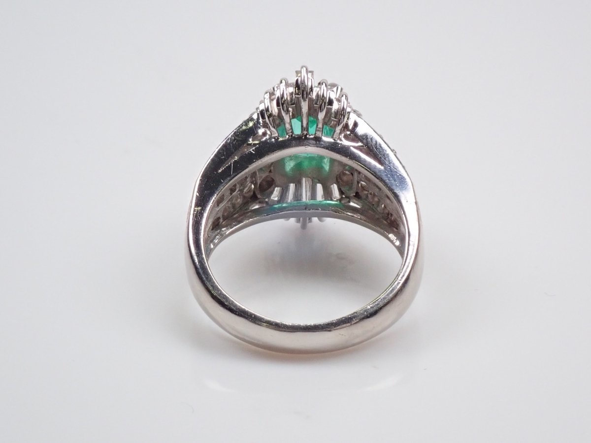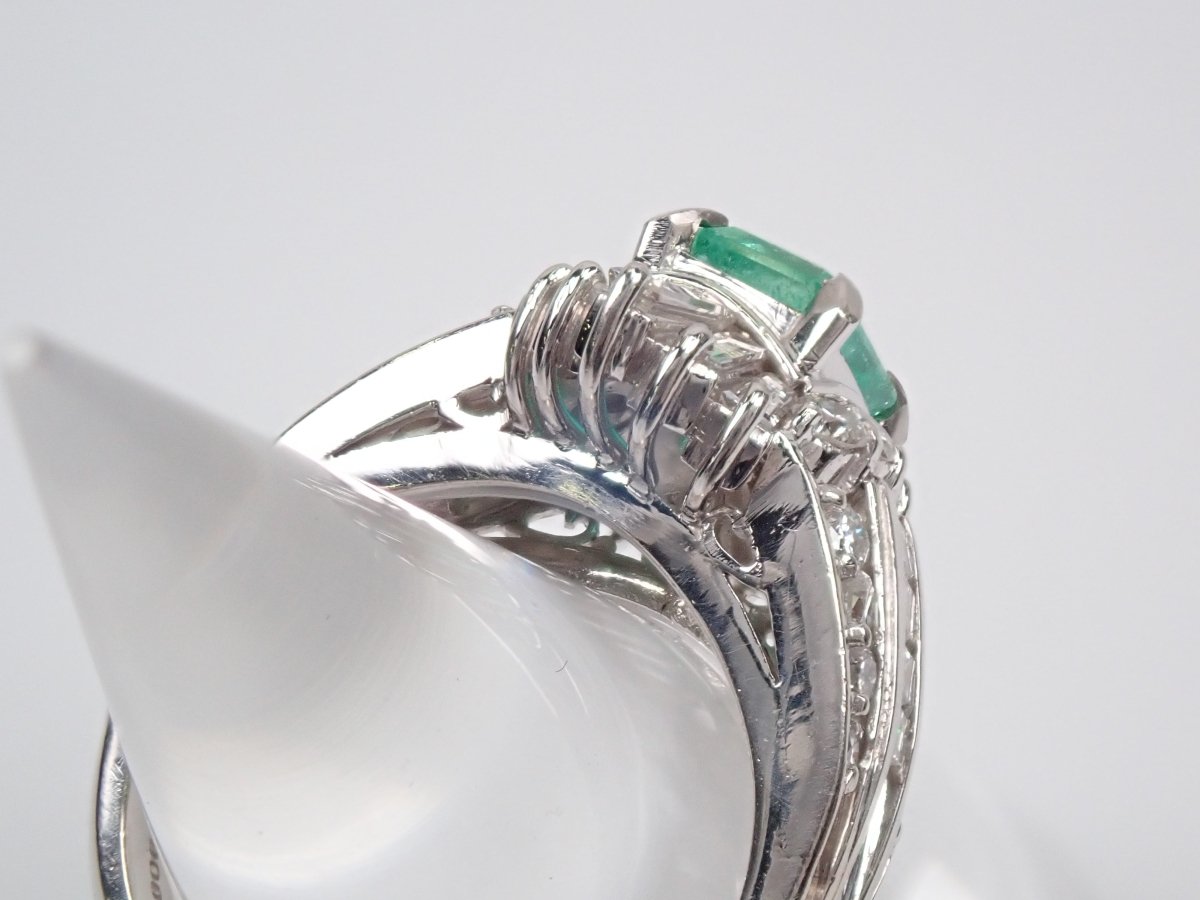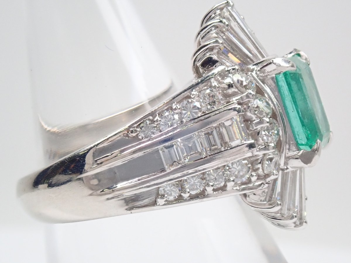端莊的祖母綠戒指,類似王冠。祖母綠相對容易找到內含物,但這顆祖母綠的體積為 1.31 克拉,但美麗且透明感很強。採用一顆1.95克拉的奢華鑽石,讓大顆祖母綠顯得更加璀璨奪目。重量約12.0克。相當於VS~SI級的無色鑽石。 [ 多彩] 點擊此處查看產品清單。