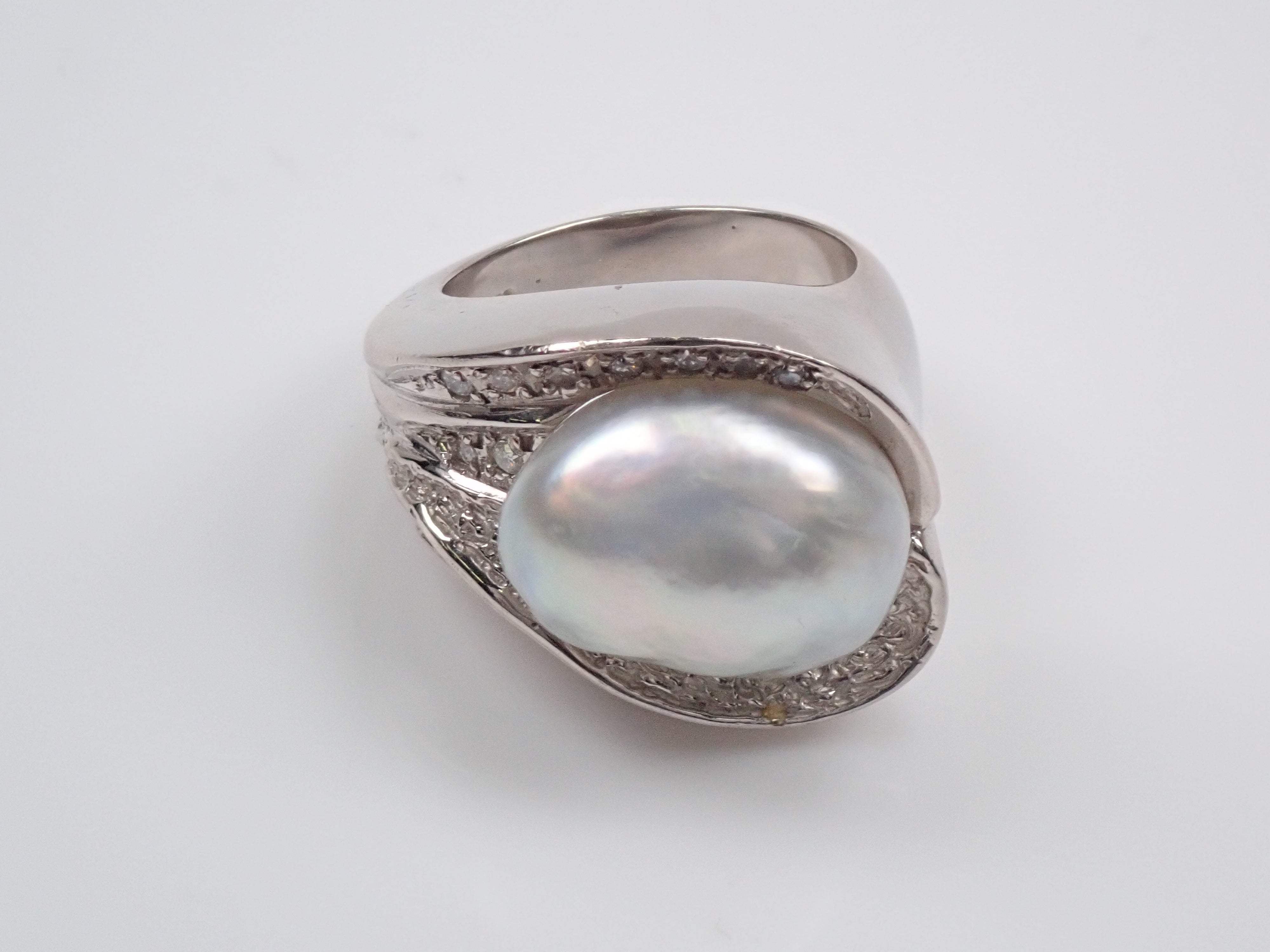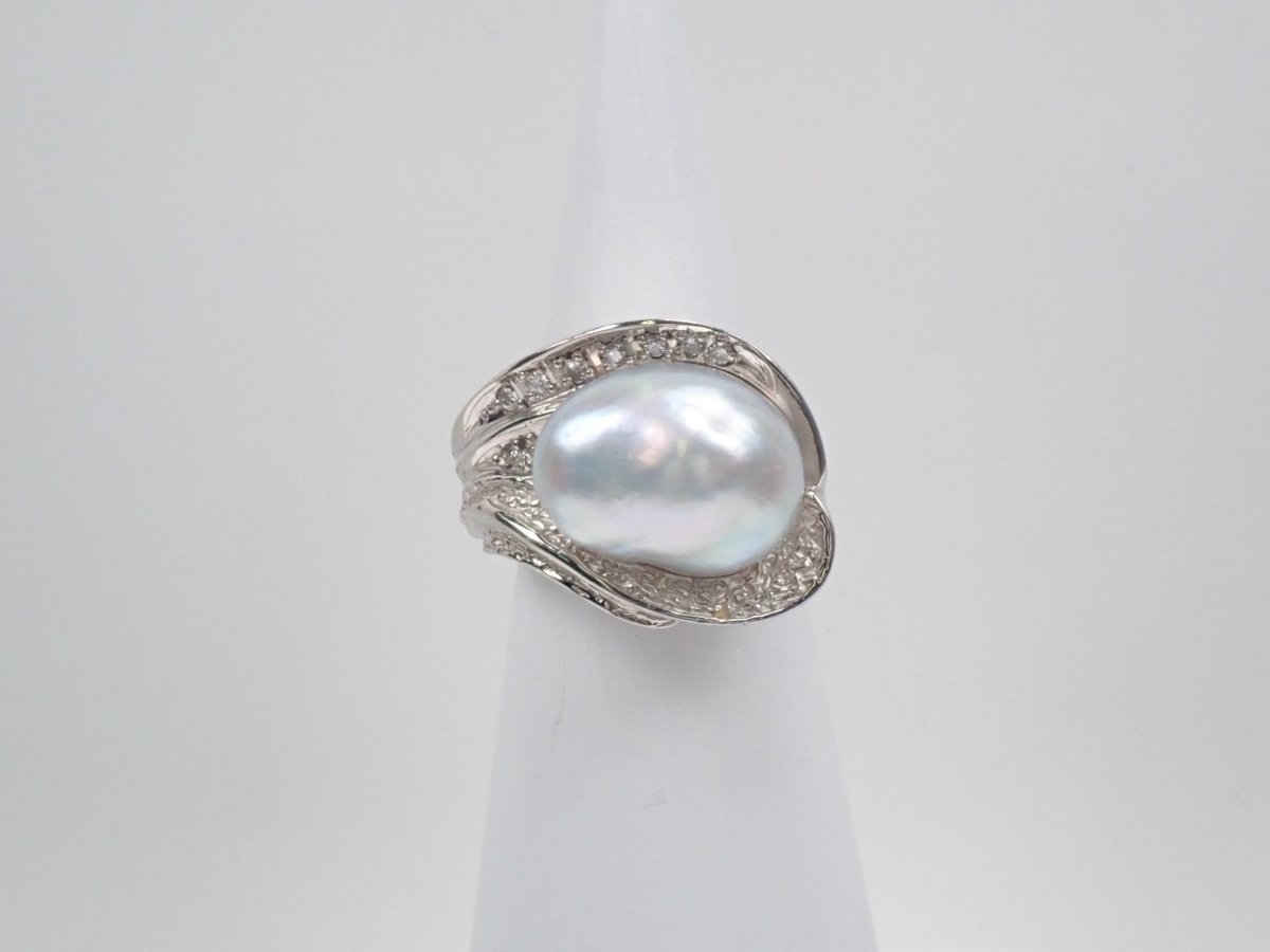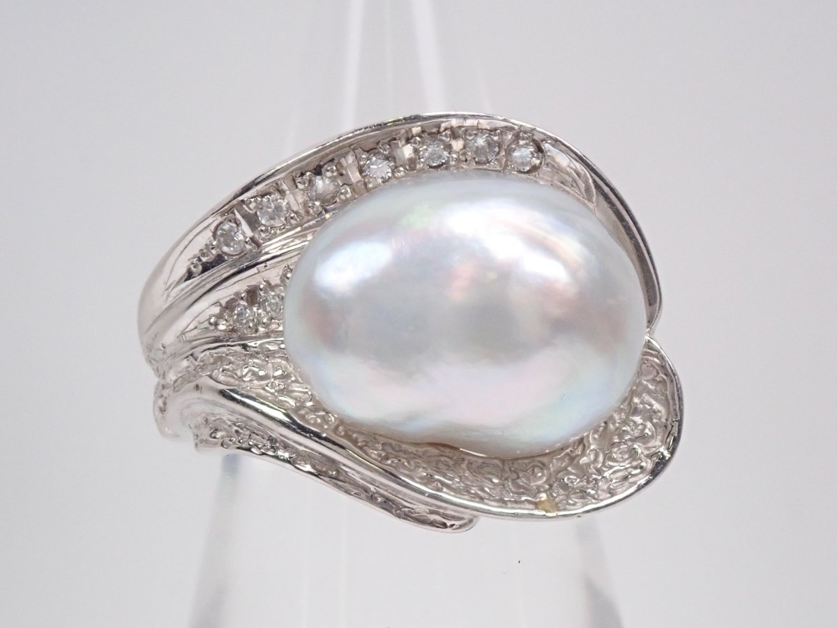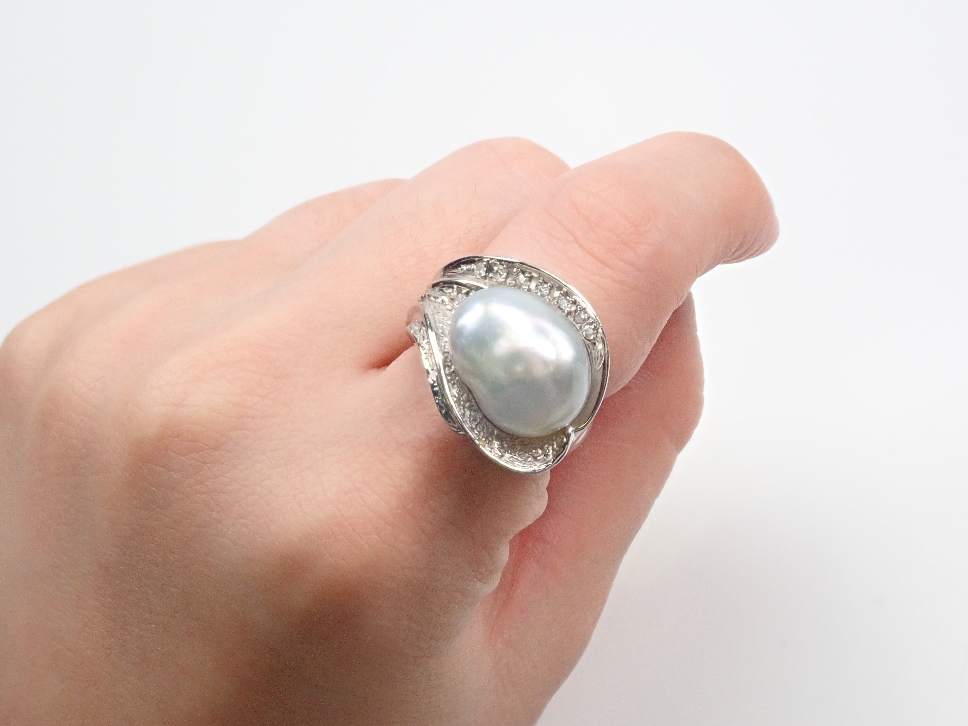南洋珍珠戒指,讓您感受到大自然的美麗。它的製作具有厚實而堅實的感覺。南洋珍珠質地天然,色澤潔白凝重。它閃閃發光,具有獨特的存在。重量約25.1克。該鑽石是相當於SI級的無色鑽石。 [ 多彩] 點擊此處查看產品清單。