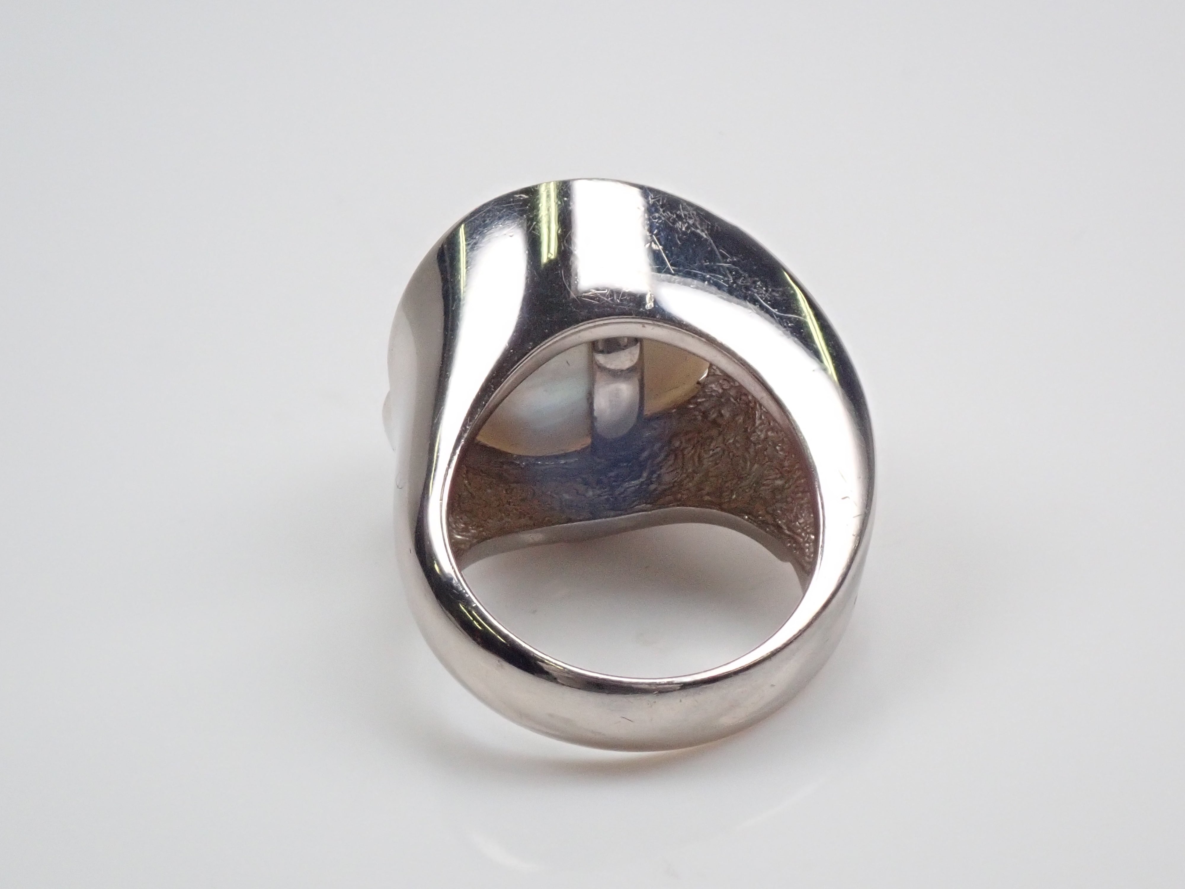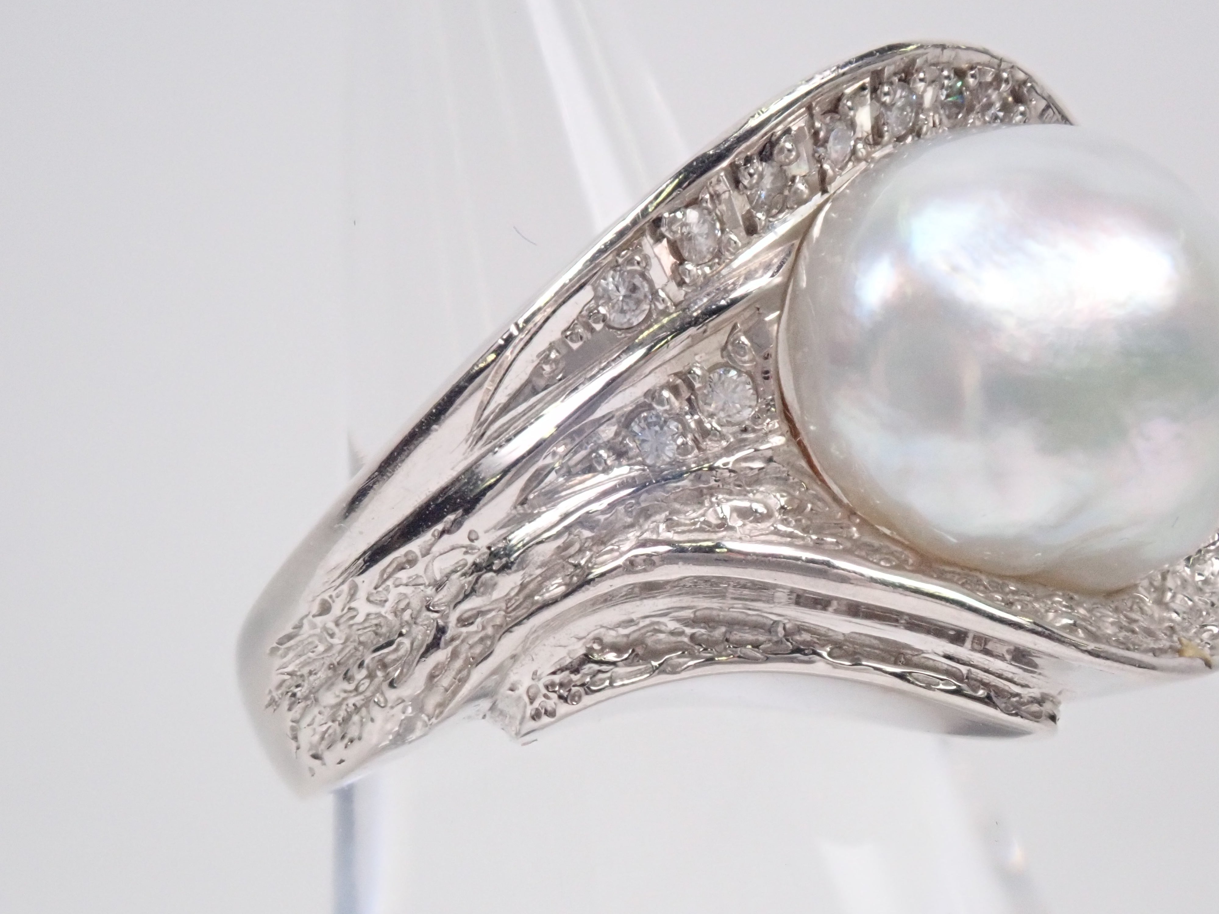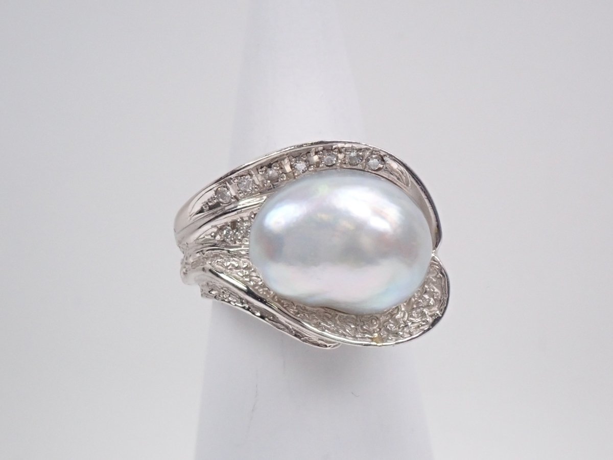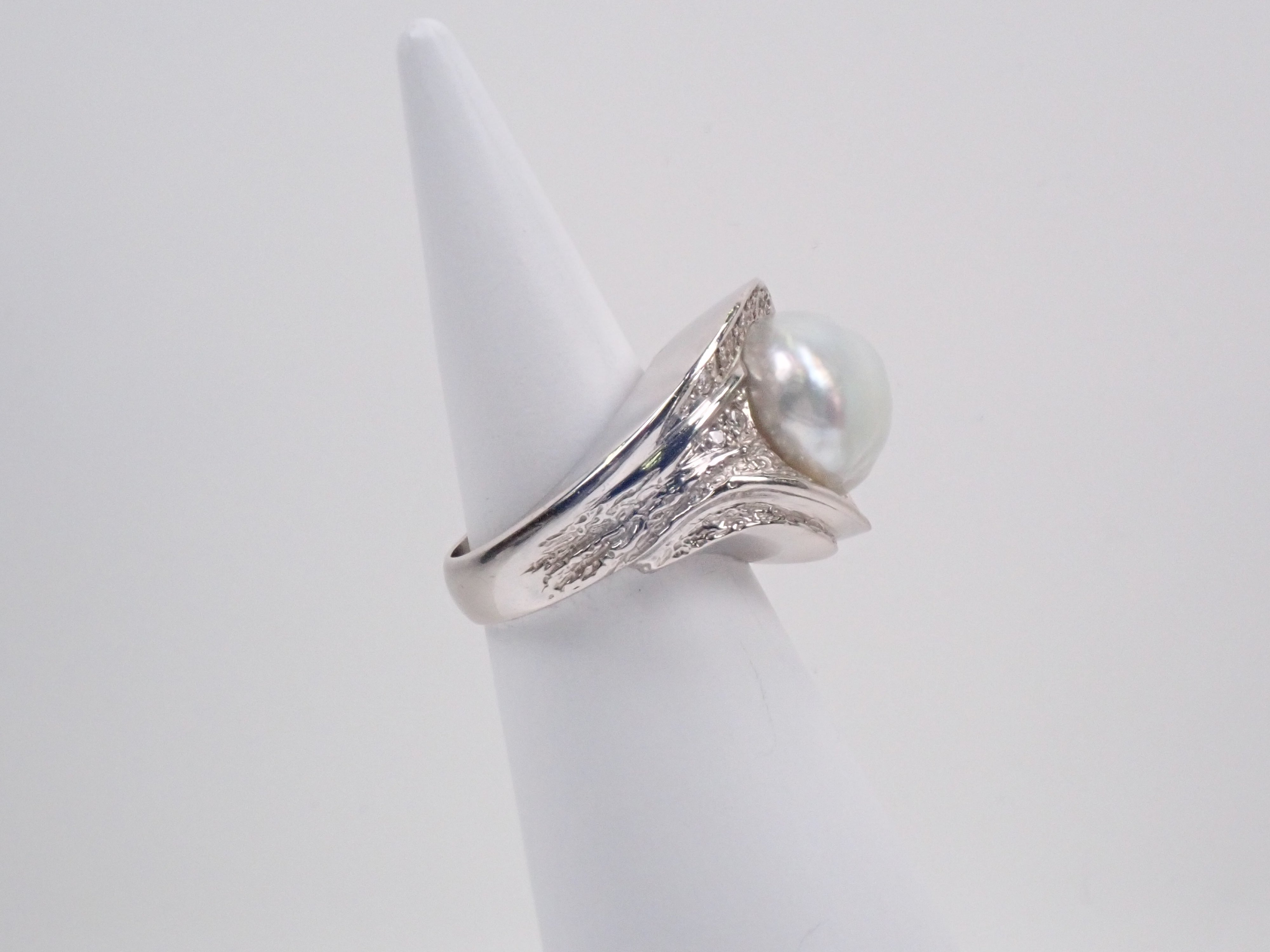 南洋珍珠戒指,讓您感受到大自然的美麗。它的製作具有厚實而堅實的感覺。南洋珍珠質地天然,色澤潔白凝重。它閃閃發光,具有獨特的存在。重量約25.1克。該鑽石是相當於SI級的無色鑽石。 [ 多彩] 點擊此處查看產品清單。