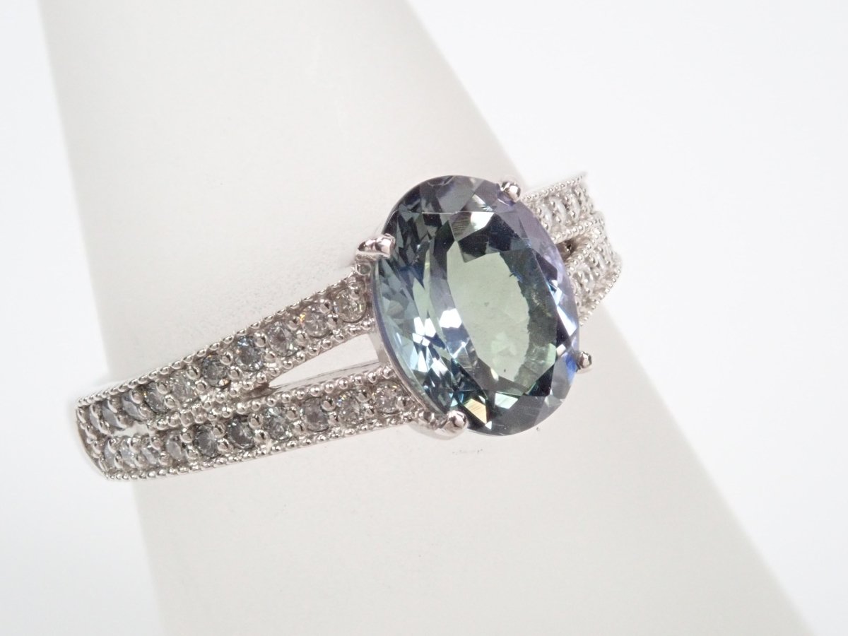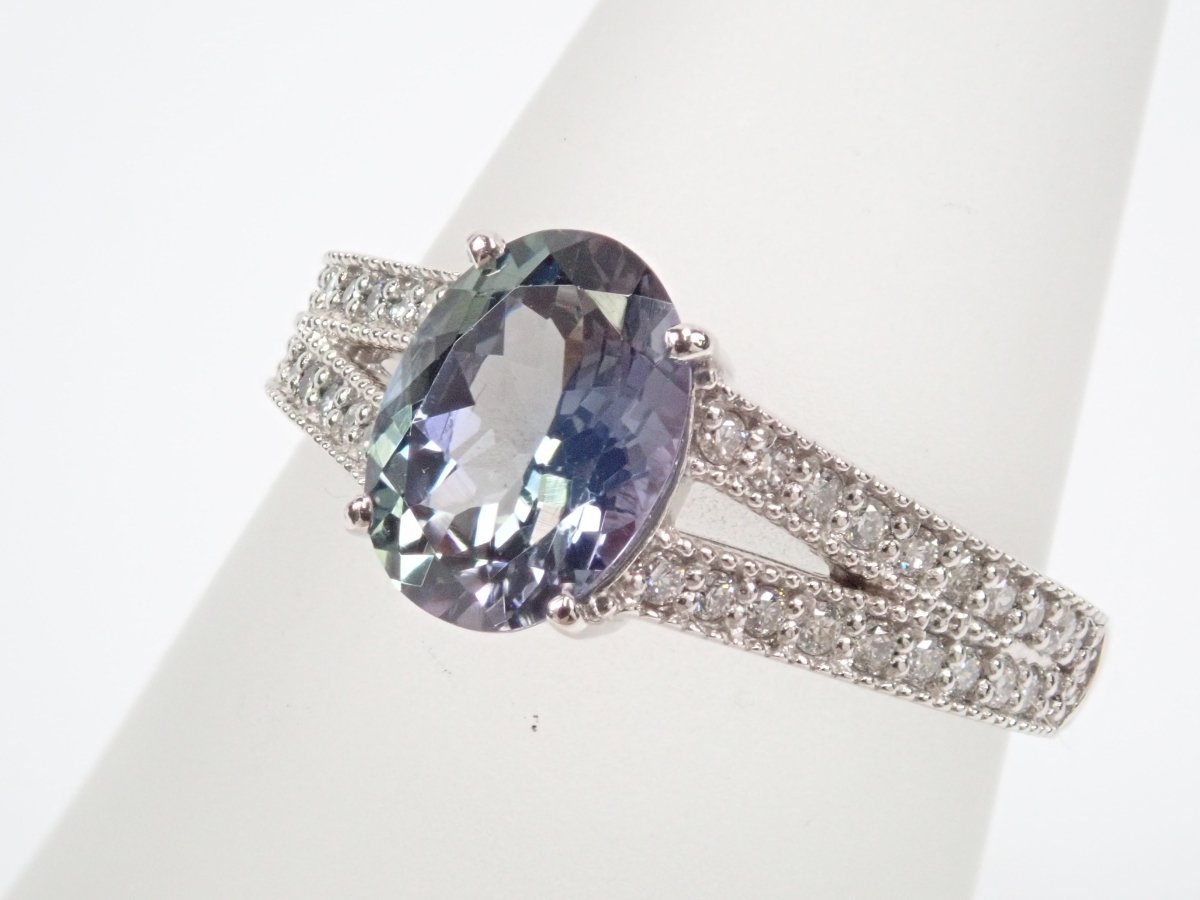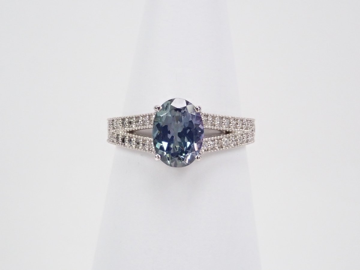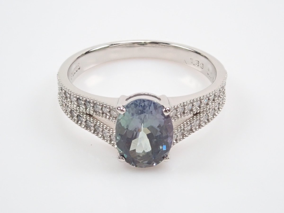 Pt900 雙色黝簾石 1.39 克拉戒指(雙色坦桑石)