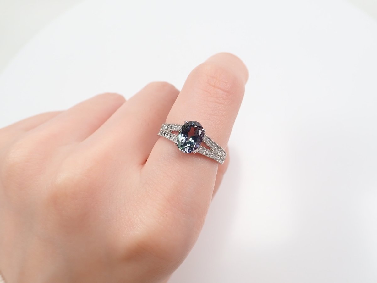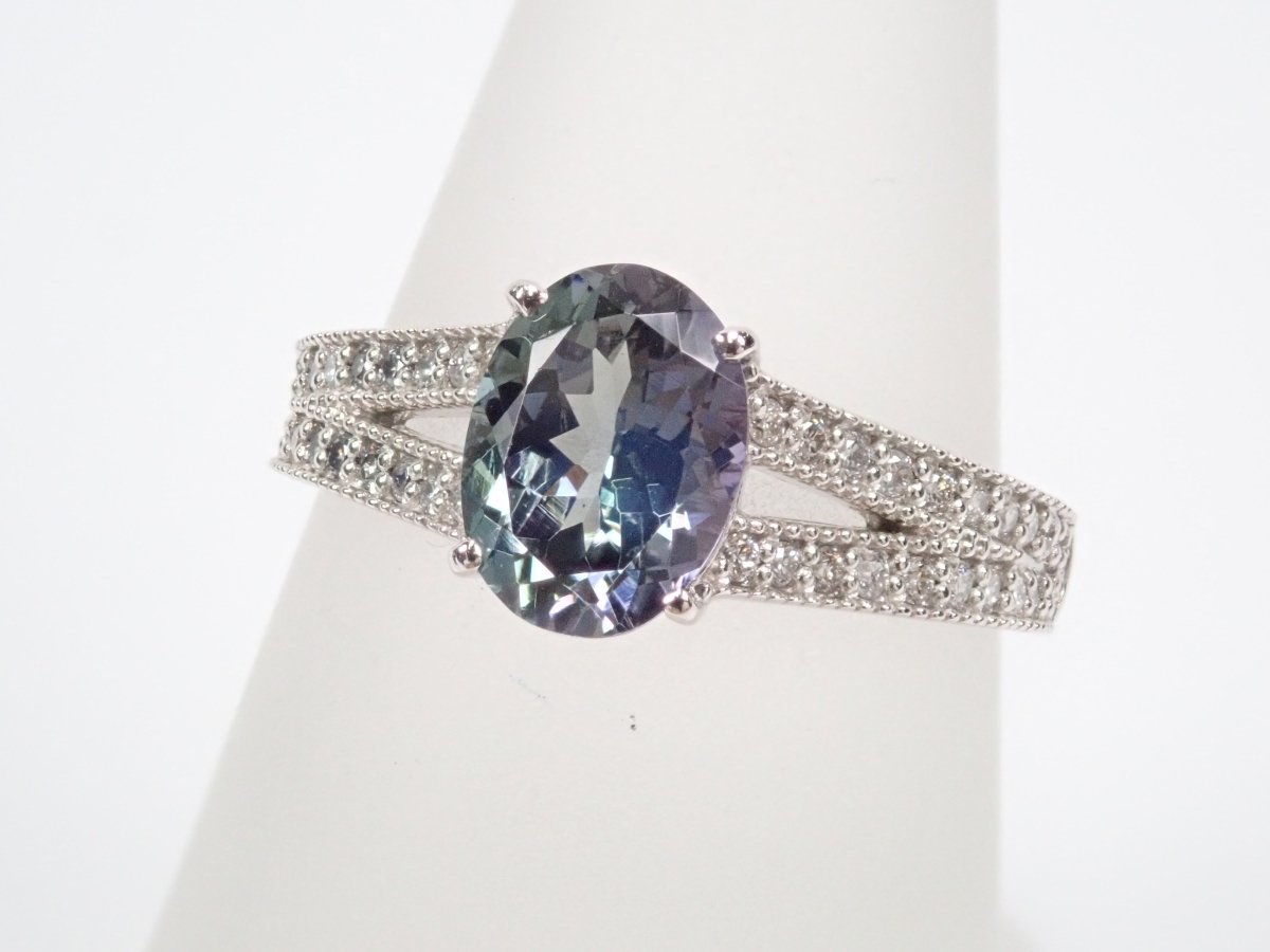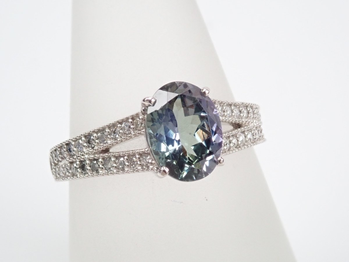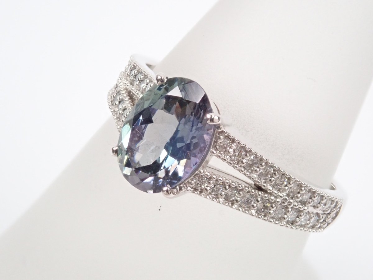 Pt900 雙色黝簾石 1.39 克拉戒指(雙色坦桑石)