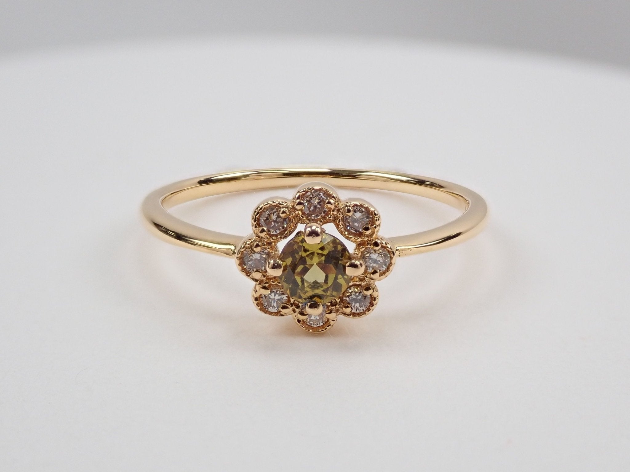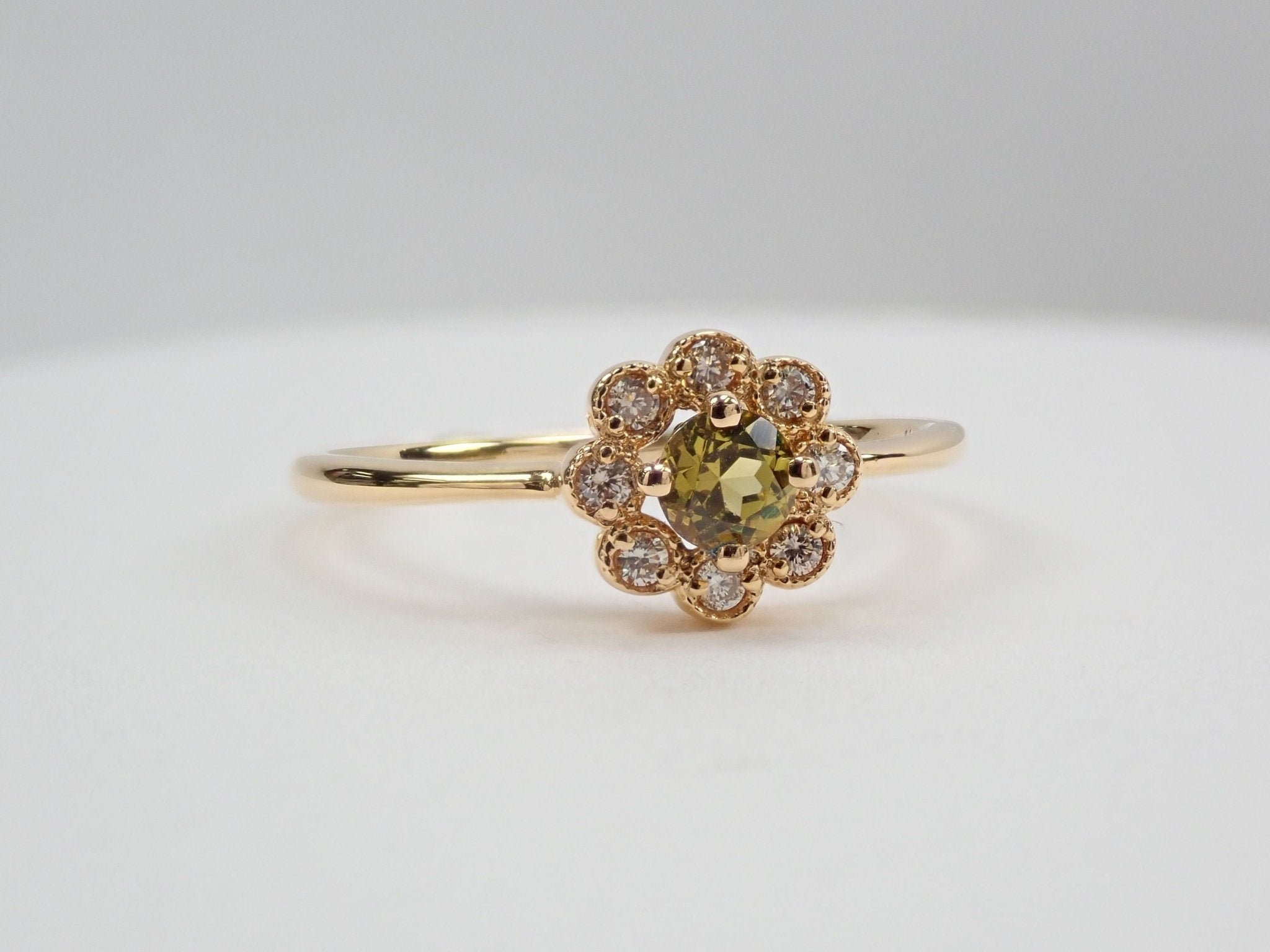 閃閃發光、華麗的石榴石俗稱馬拉里石榴石。它是由兩種石榴石的混合物製成的寶石:紅鐵榴石石榴石和鈣鋁榴石石榴石。石榴石以一月生日石而聞名。這款戒指還有經典可愛的花朵圖案設計。