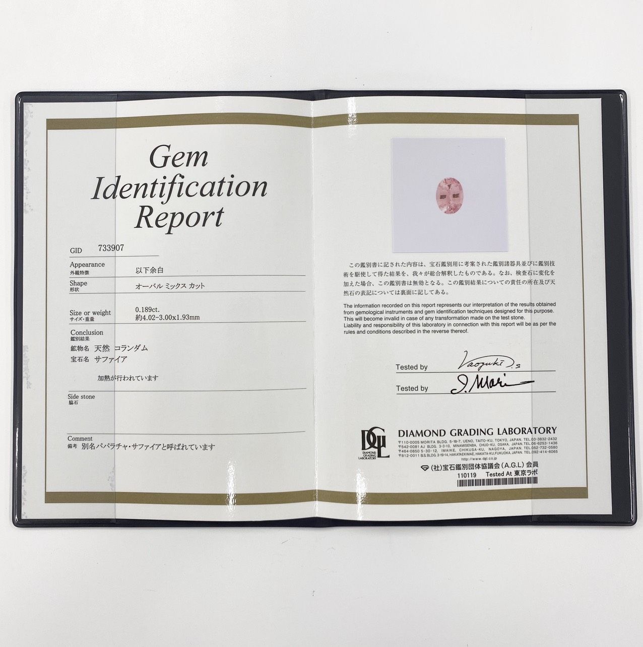 - 中石:帕帕拉恰藍寶石 0.189 克拉