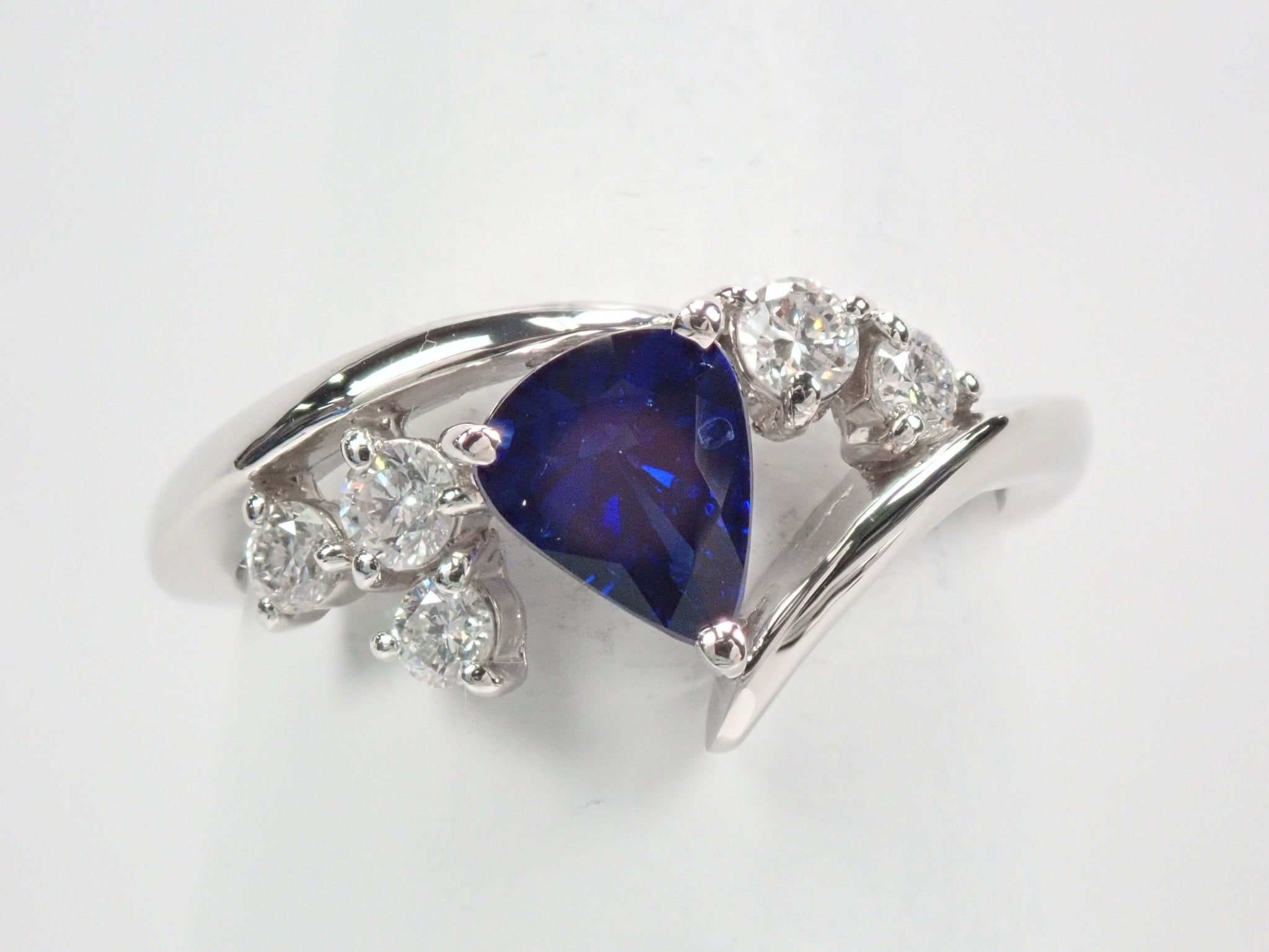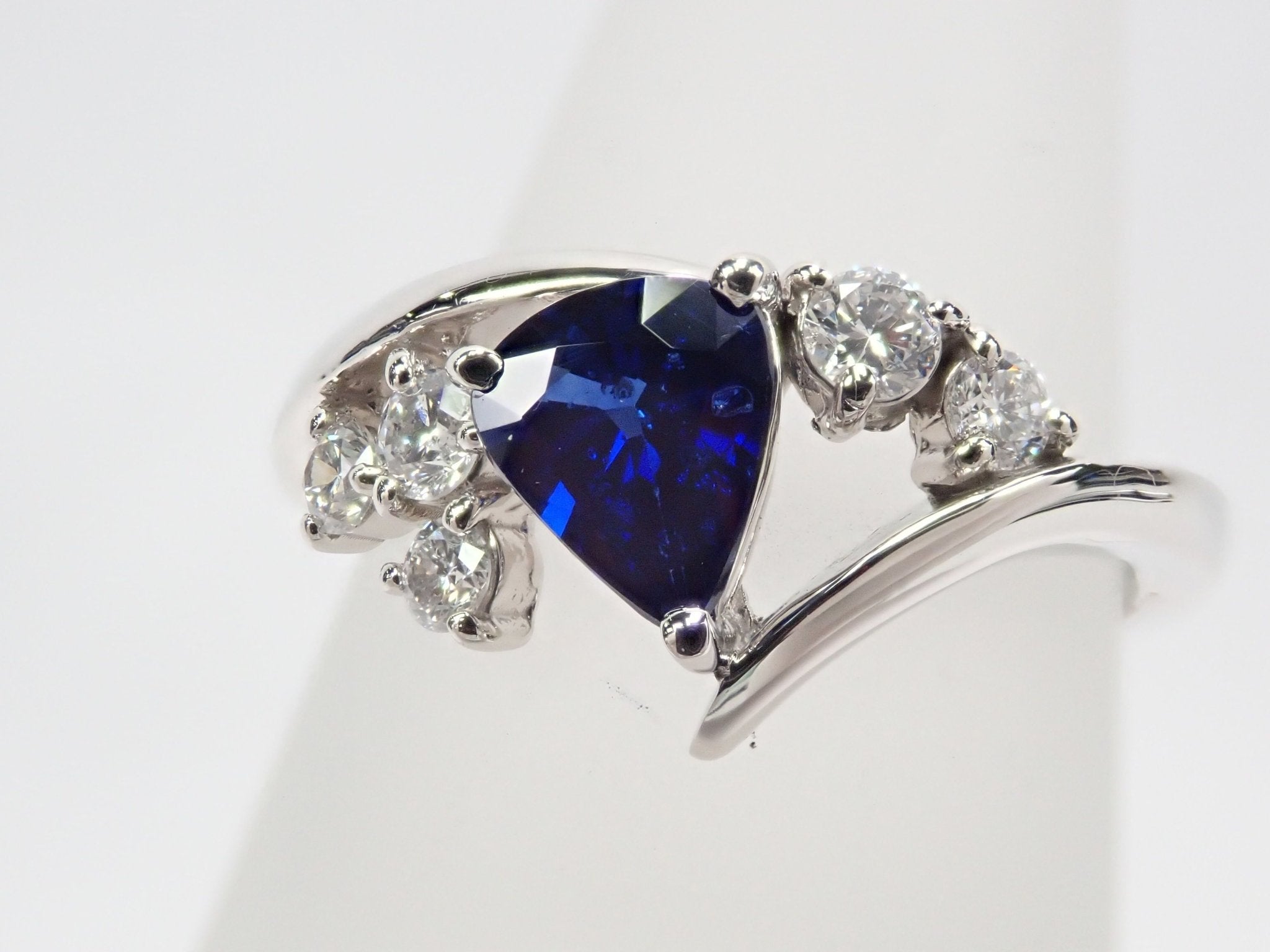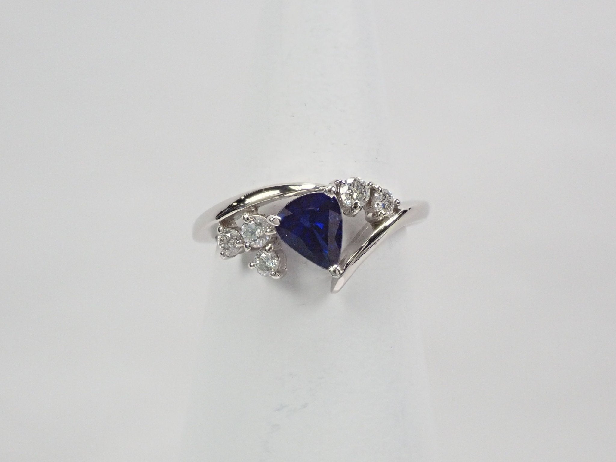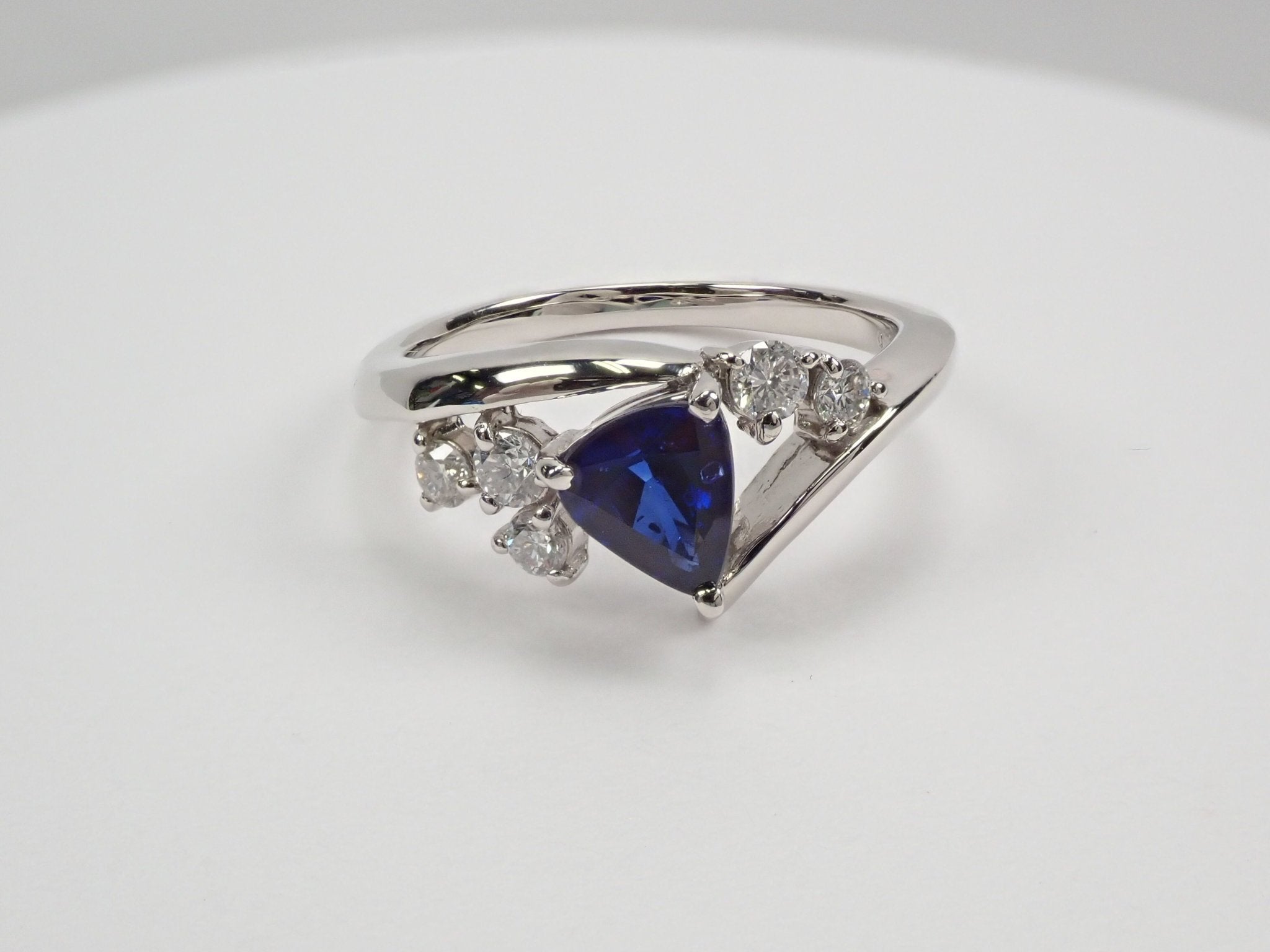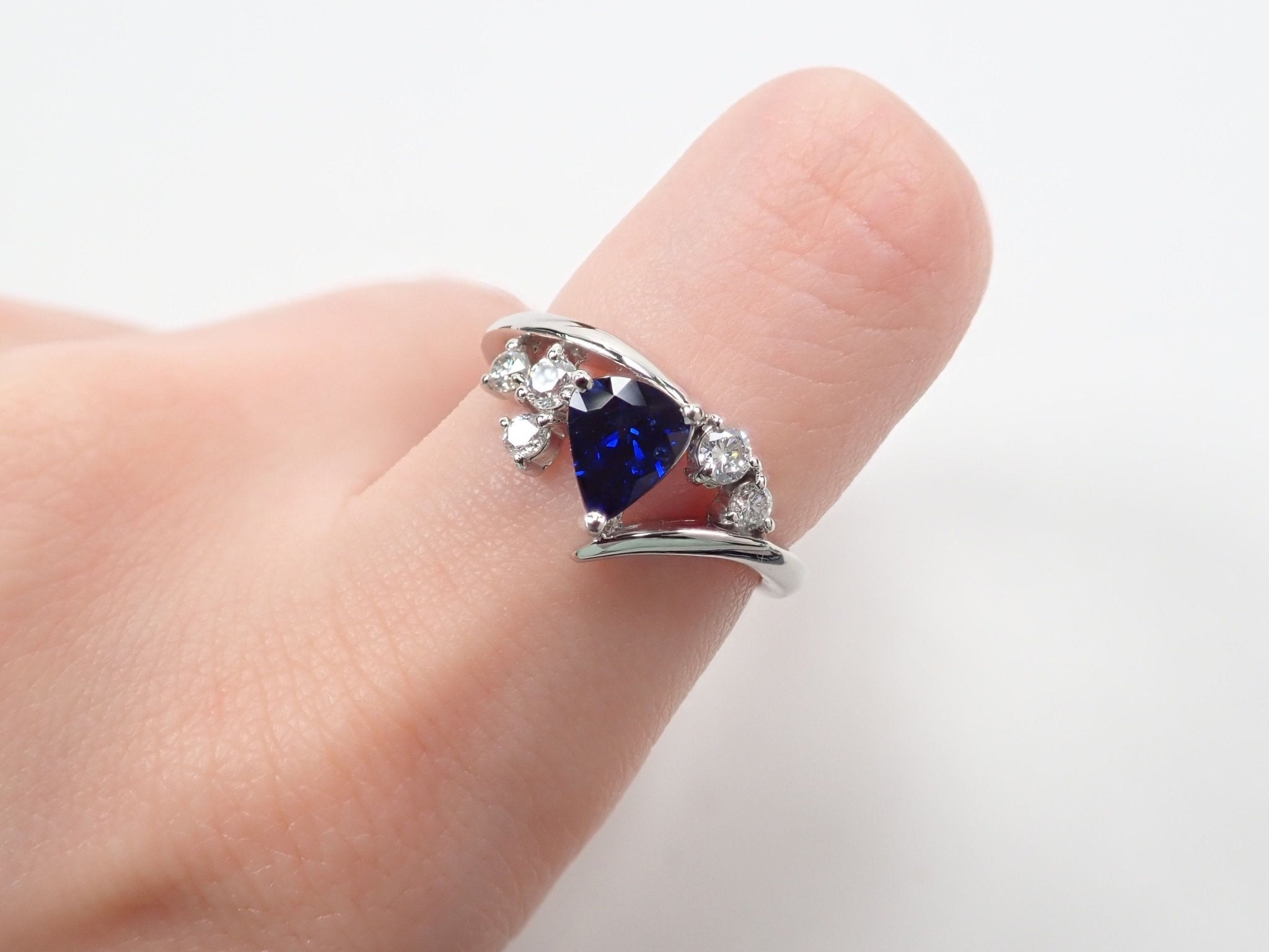來自馬達加斯加的寶藍色藍寶石,顏色深邃、深邃,給人一種高貴的感覺。當與周圍閃閃發光的鑽石對齊時,它呈現出星夜的形象。環繞手指的手臂是不是像流星的尾巴?這枚戒指會讓您想對著美麗的寶藍色夜空許願。