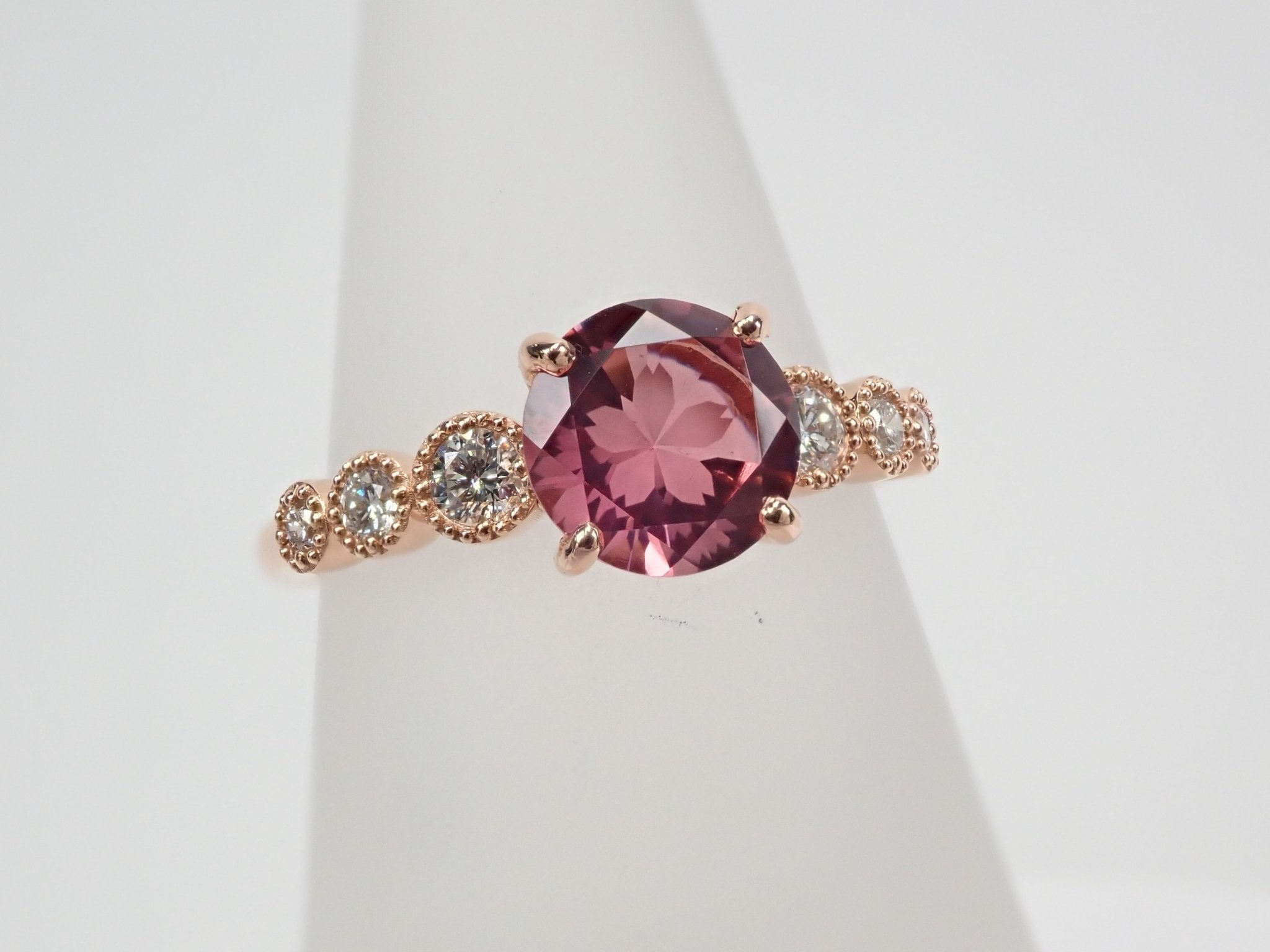 粉紅碧璽x粉金x鋸狀滾邊的組合非常美妙。