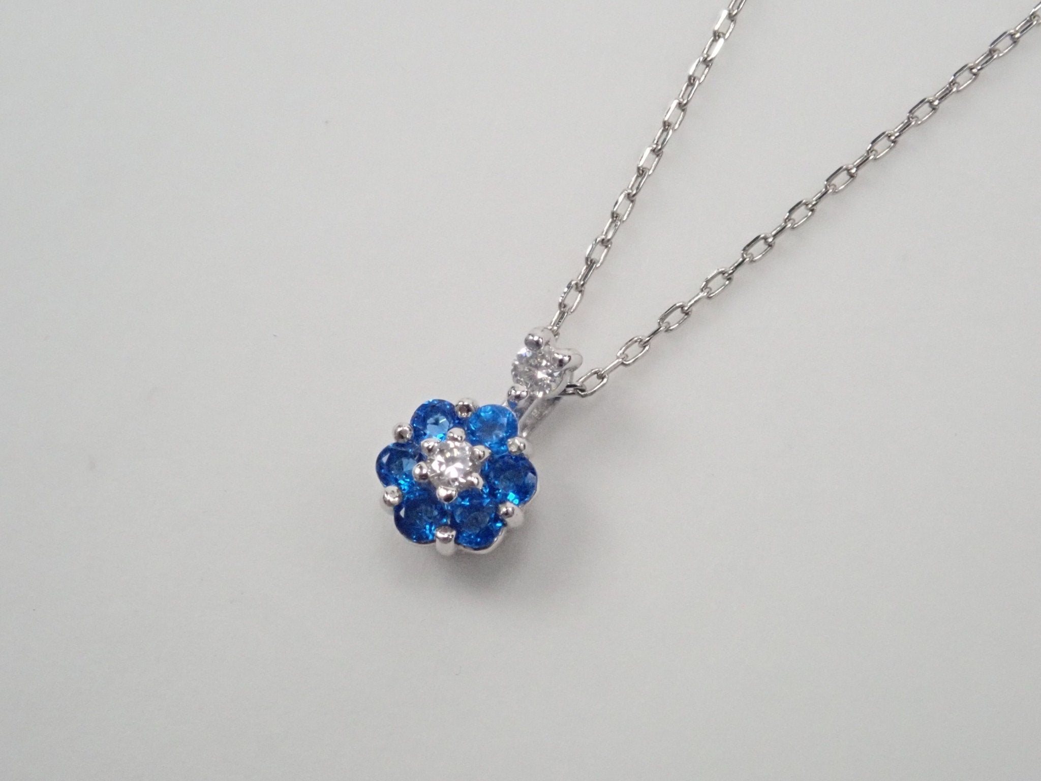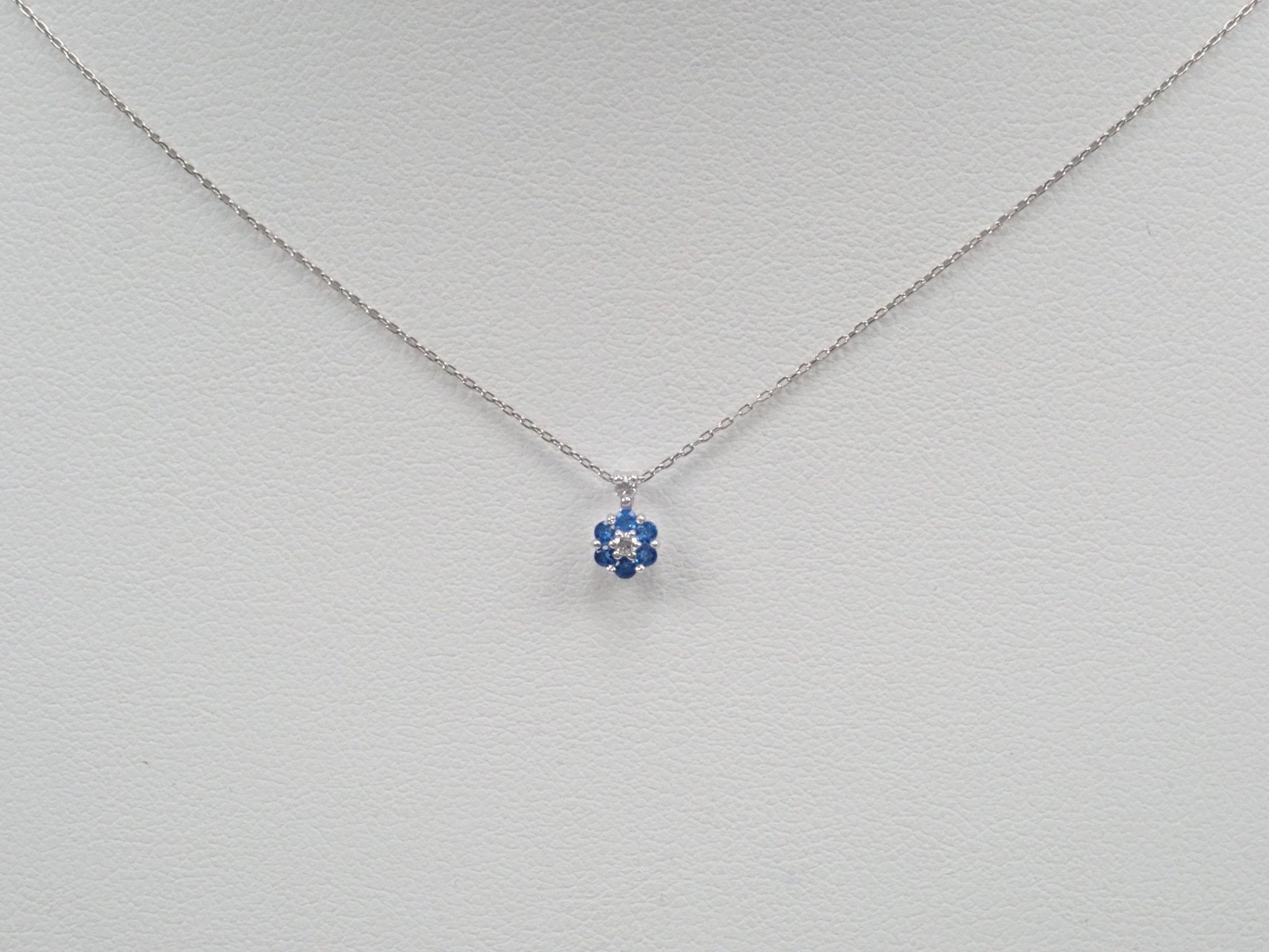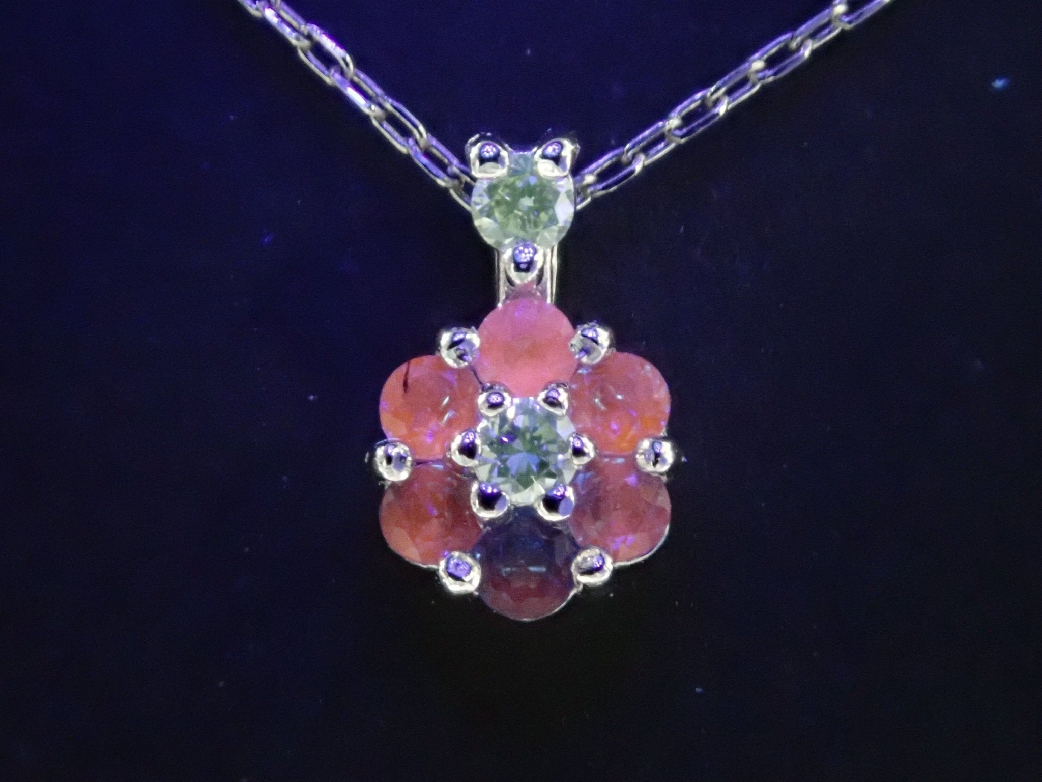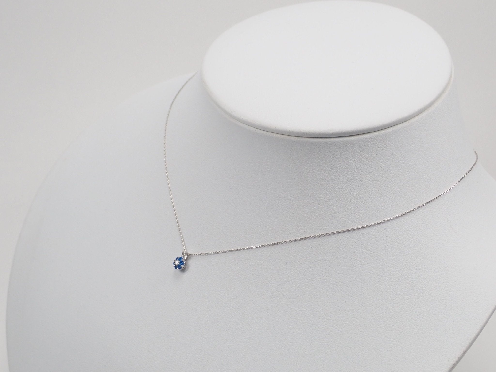 鐵鋁榴石是一種美麗、明亮、生動的藍色,會讓您大吃一驚。珠寶聚集成花朵狀,充滿了美麗和可愛。簡約的設計使其無論是正式場合還是休閒場合都可以輕鬆穿著。 Ouinite 是一種螢光類型。