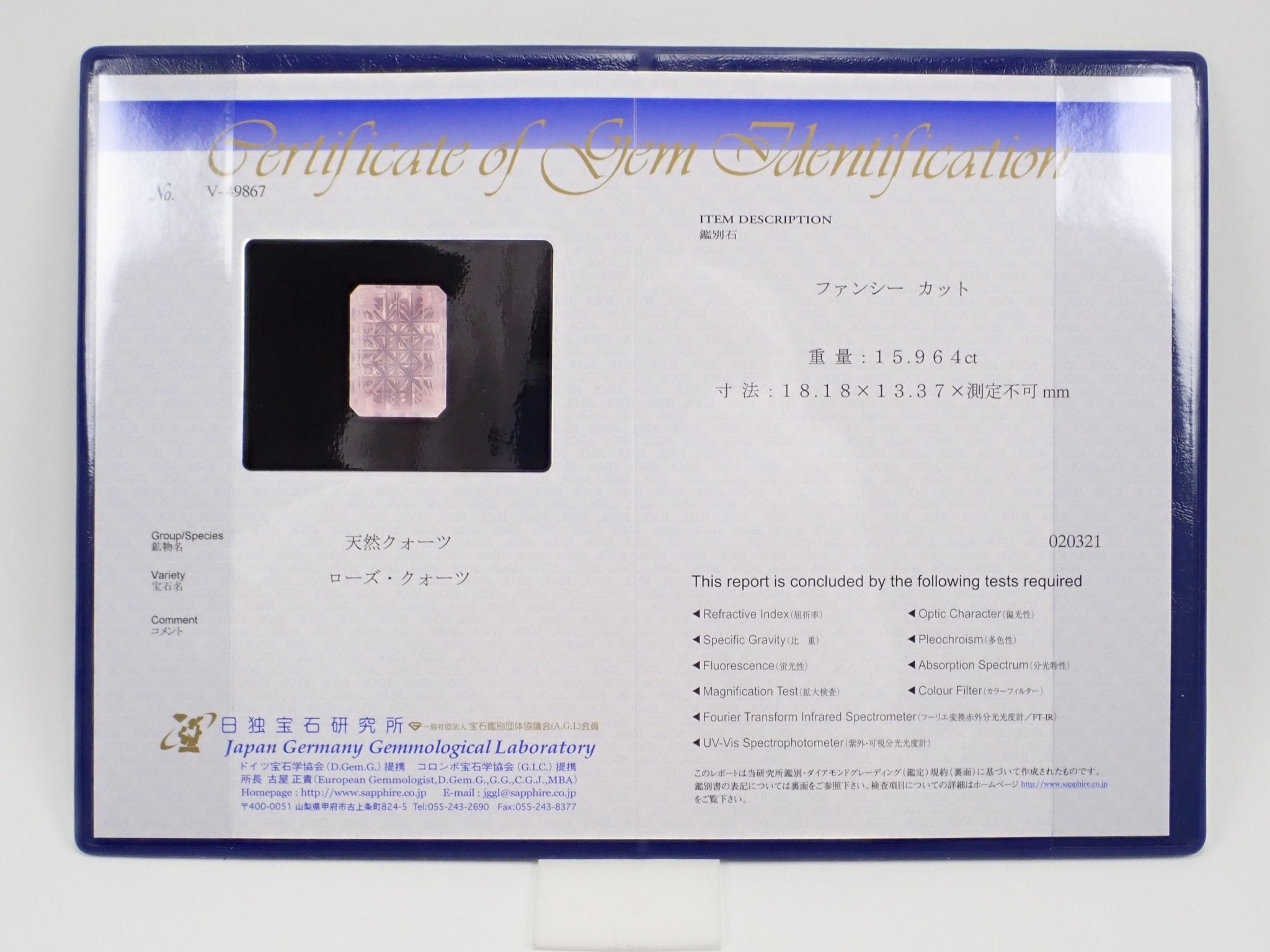 ・配件:甲州寶石切割玻璃卡、日德寶石鑑定所鑑定證書、盒子