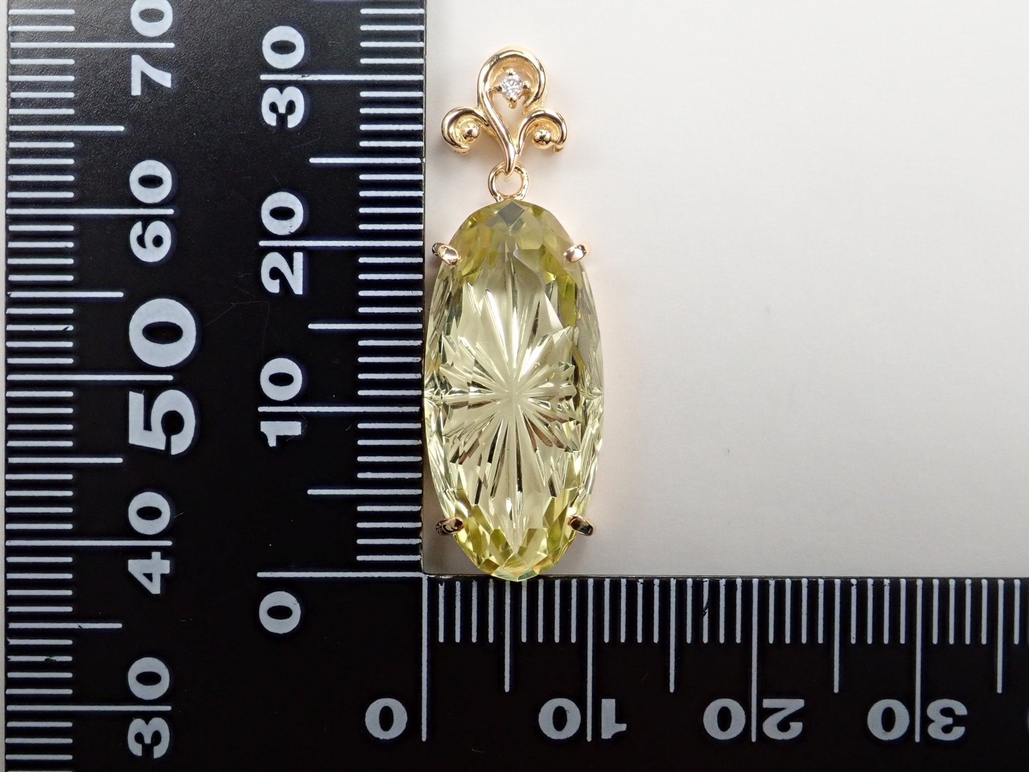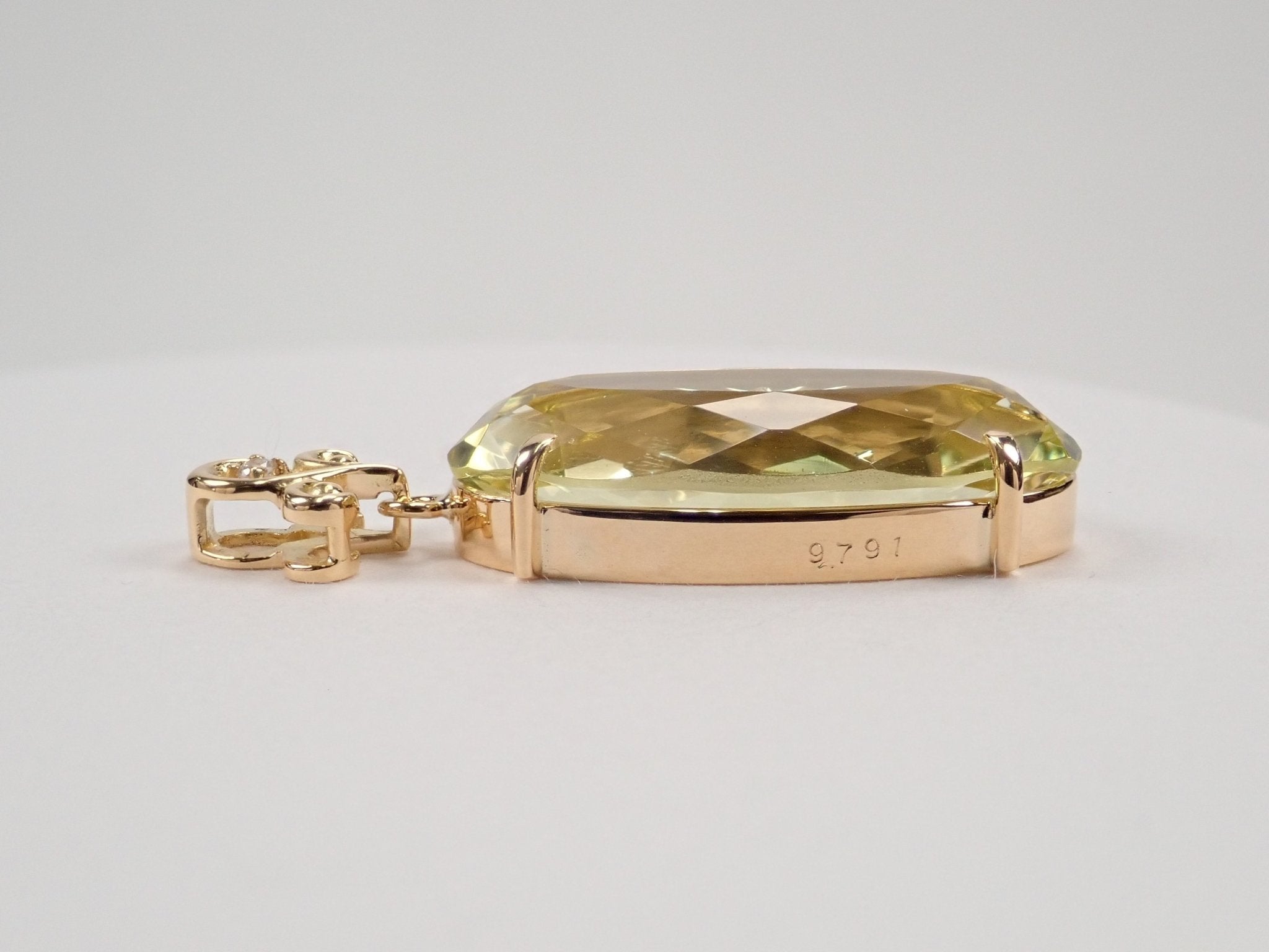 [甲州寶石 Kiriko] K18 檸檬石英 9.791 克拉 ・鑽石吊墜頂部