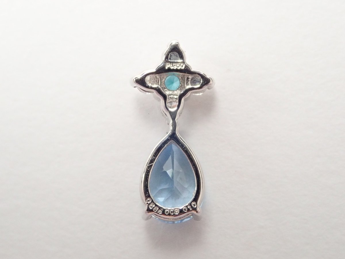 Pt950 聖瑪麗亞海藍寶石 0.564 克拉/巴西帕拉伊巴碧璽吊墜頂部