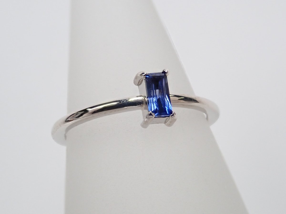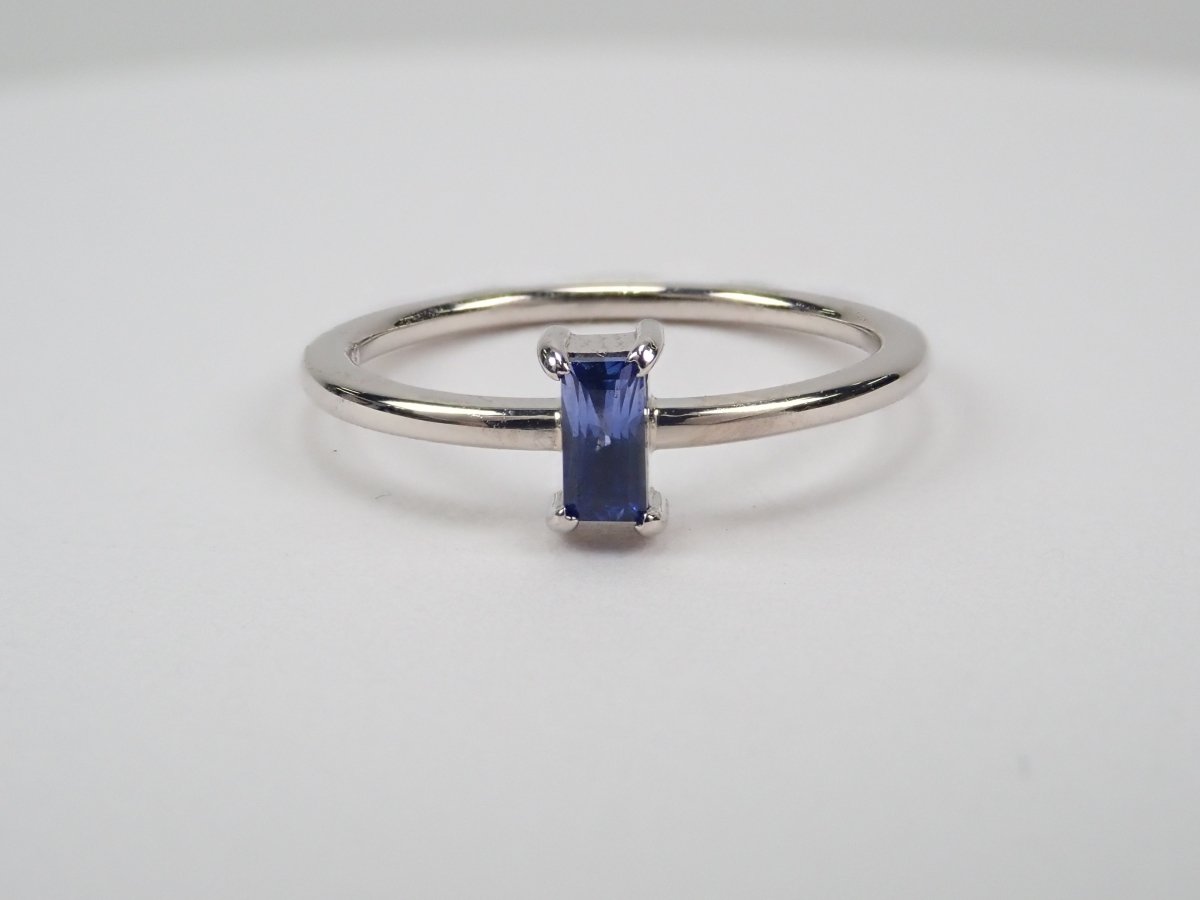 雙色藍寶石,呈現美麗清澈的深藍色。祖母綠切割散發著優雅的氣息。鉑金和藍寶石的組合是您想要長期珍藏的組合。