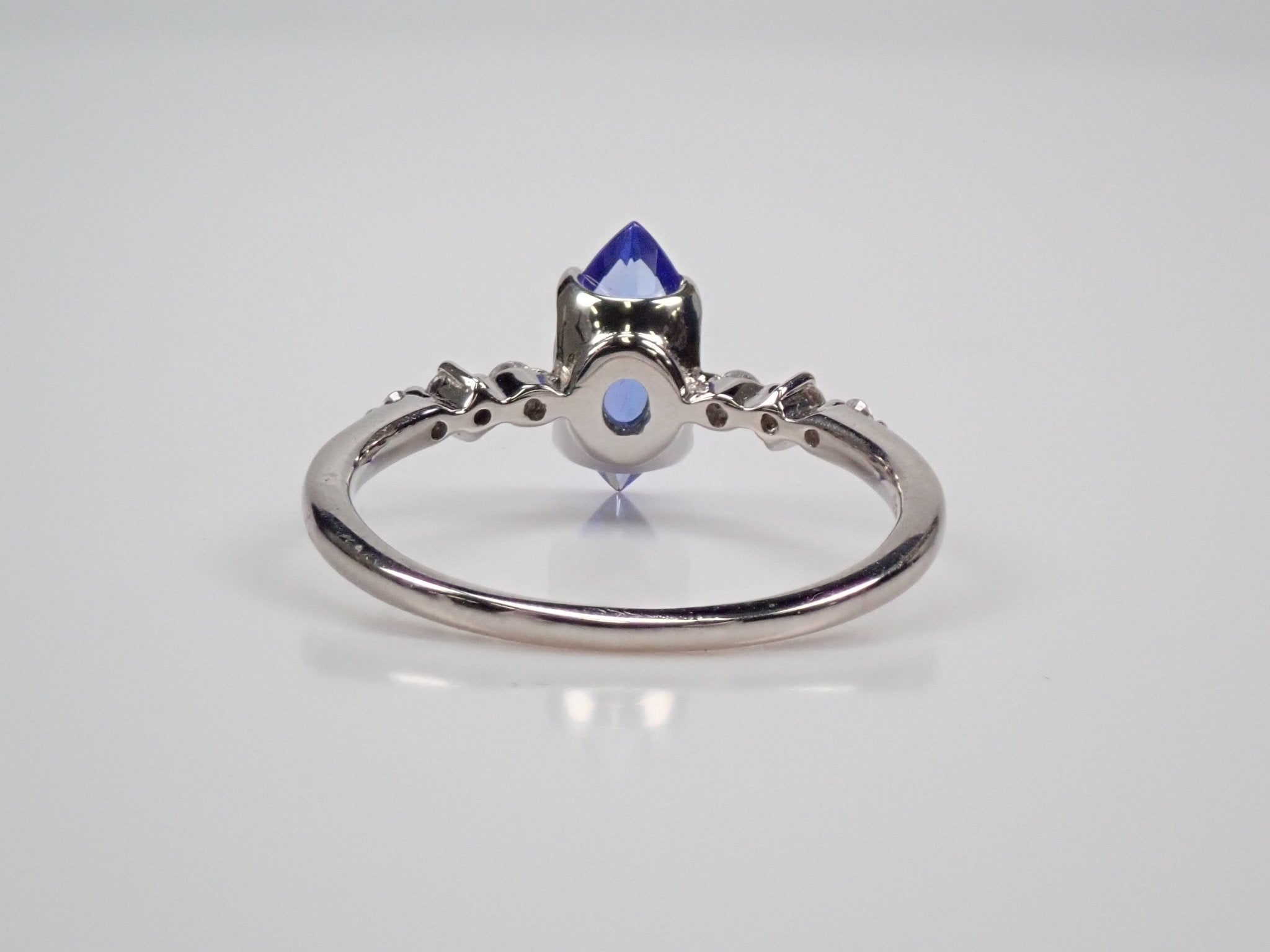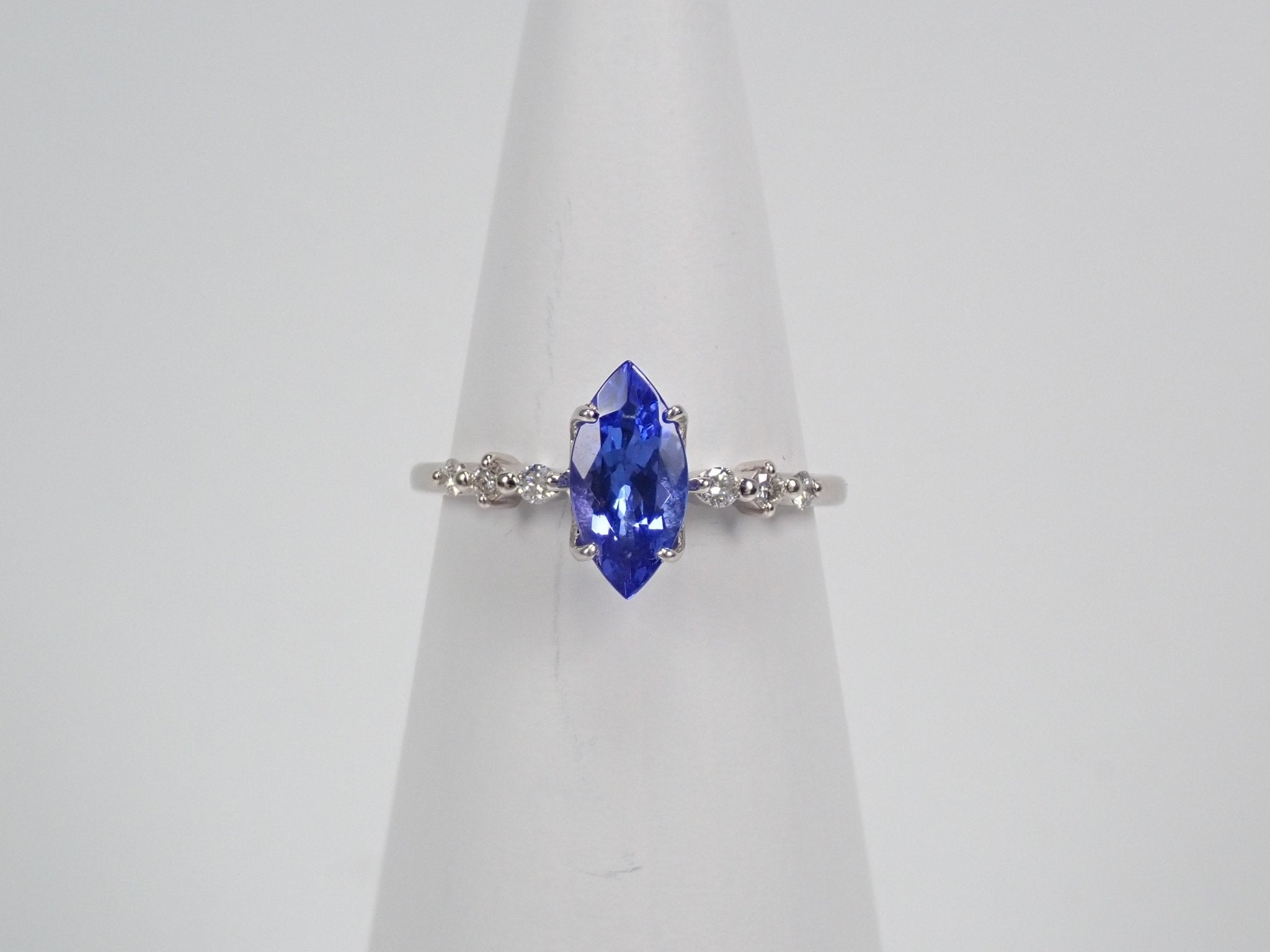 深藍色的欖尖形切割坦桑石,給人一種銳利的印象。鑲嵌鑽石的白金,賦予它彷彿置身冰雪世界的色彩!它擁有清涼幹練的形象,男女皆宜。