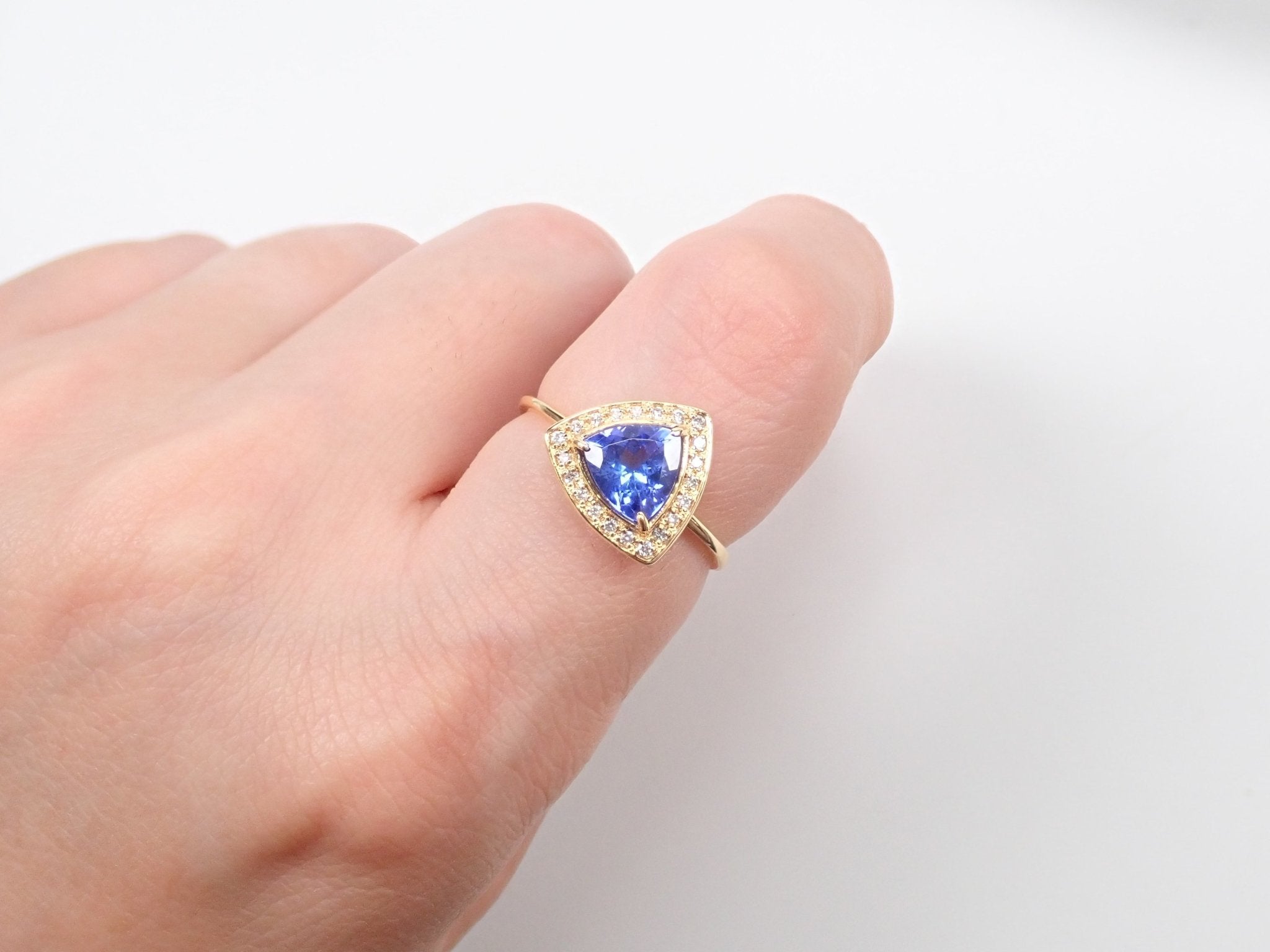 坦桑石具有令人印象深刻的藍色,類似於大海。方形切割很神秘。鑽石圍繞著珠寶的形狀,營造出閃閃發光的奢華形象。纖細簡潔的手臂與任何服裝都很相配,可以在多種場合使用。