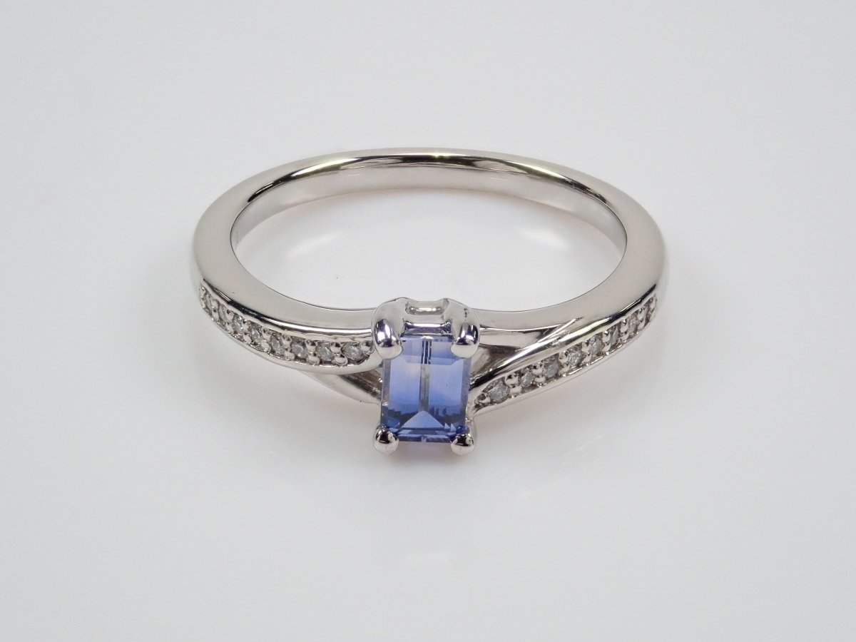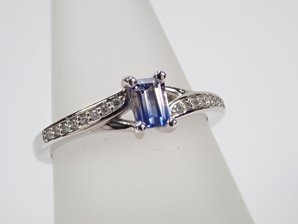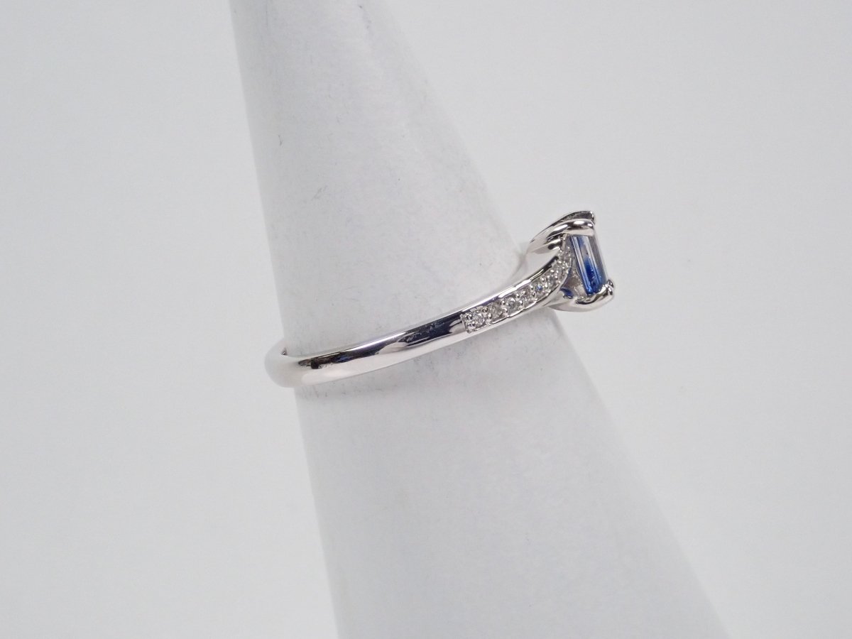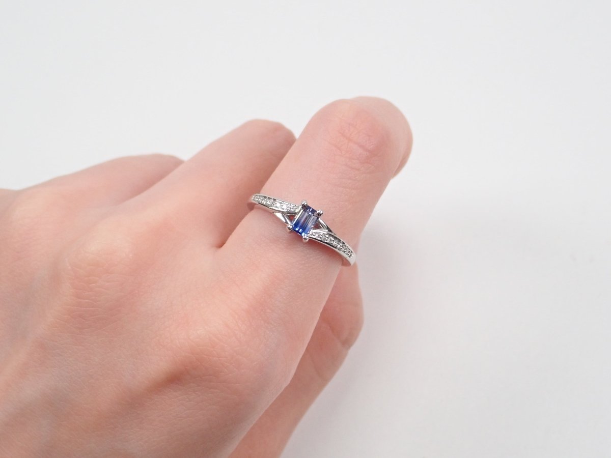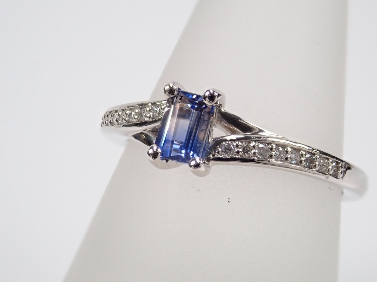 雙色藍寶石戒指,藍色清爽,配色清晰。優雅的手臂設計搭配閃閃發光的米粒鑽,也很漂亮,給人一種精緻的感覺。這是一款無論場合、年齡都可以長期配戴的戒指。