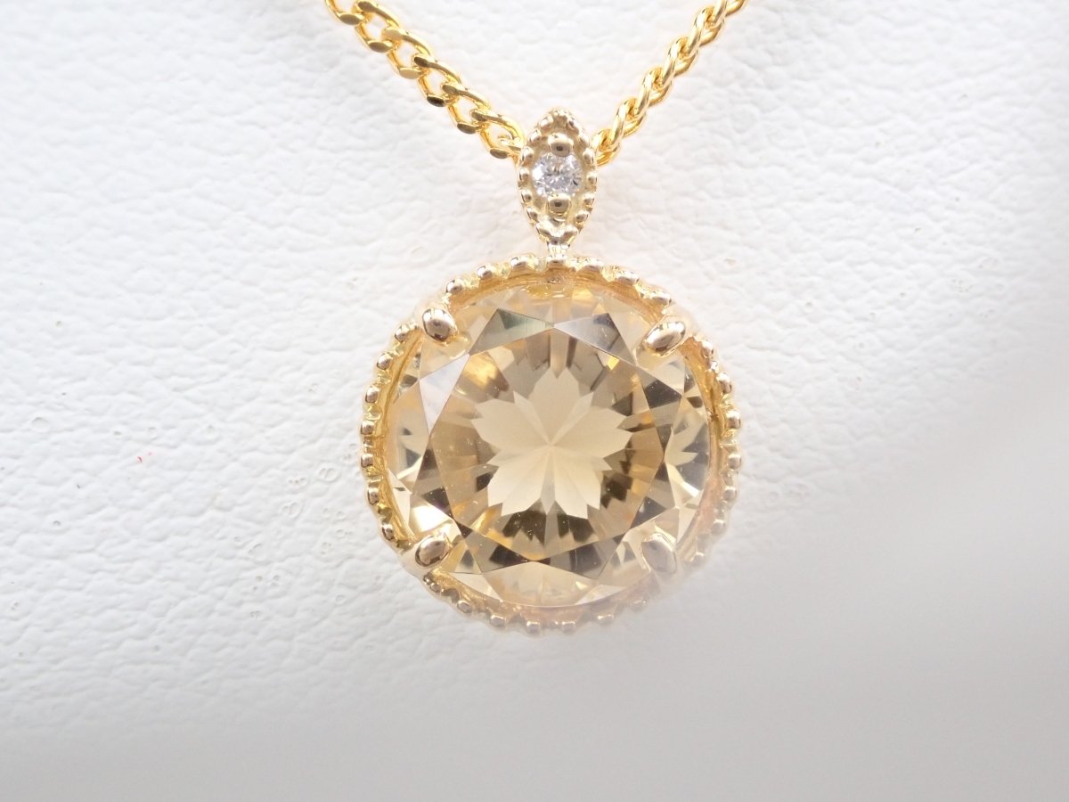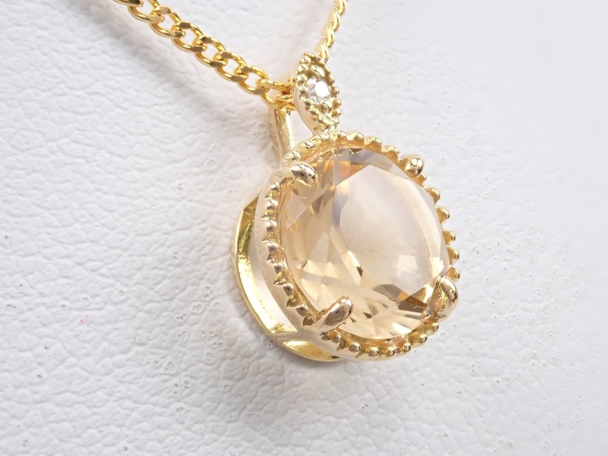 這是Shimizu Kiseki 製作的櫻花內切黃水晶吊墜上衣。櫻花在淺黃色的黃水晶中閃閃發光。梵蒂岡以鑽石裝飾,設計令人印象深刻。