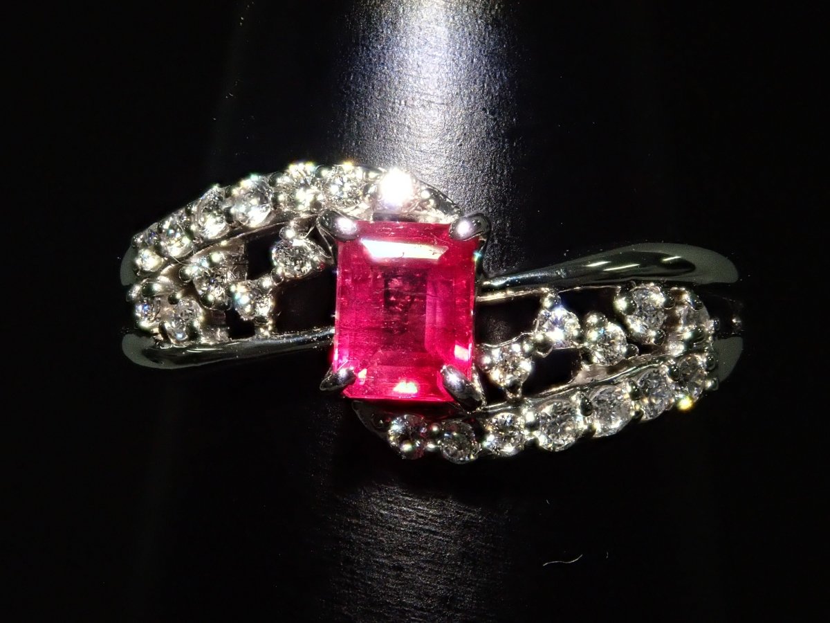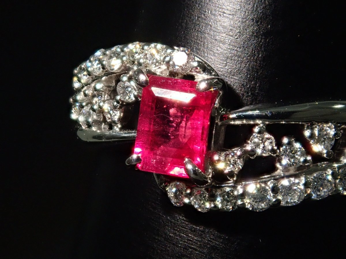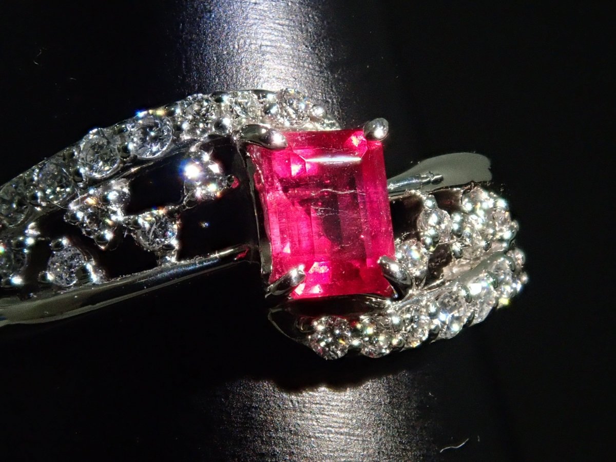 這款紅色綠柱石和鑽石戒指以其鮮豔的色彩令人著迷。紅色綠柱石非常美麗,內含物很少,尺寸高達 0.26 克拉。重量約3.8公克。該鑽石為相當於 VS 至 SI 級的無色鑽石。 [ 多彩] 點擊此處查看產品清單。
