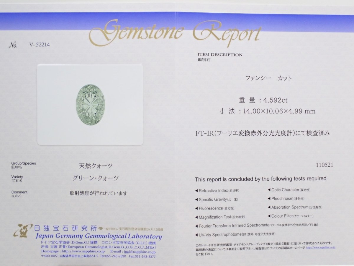 ・附件:鑑定書(日德寶石研究所)、甲州寶石 Kiriko 卡、盒子