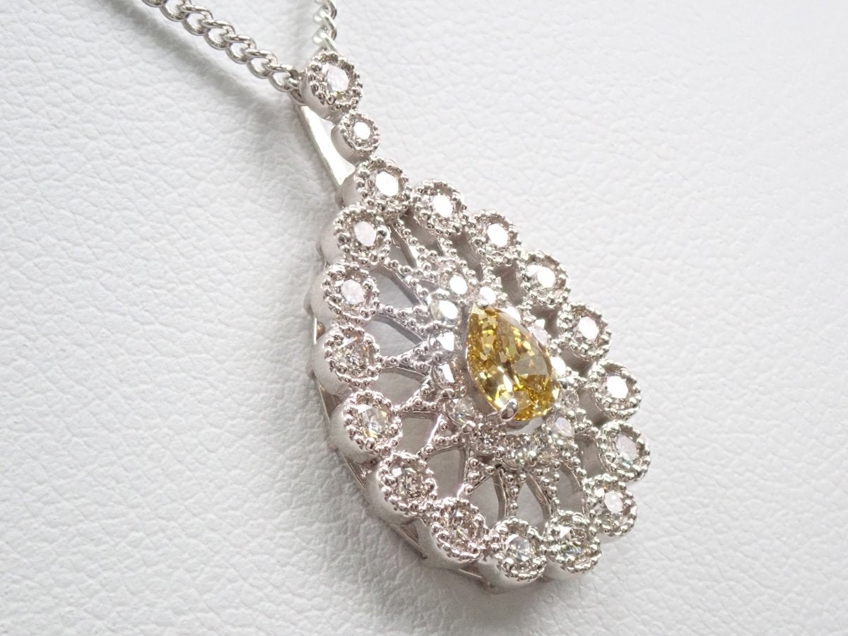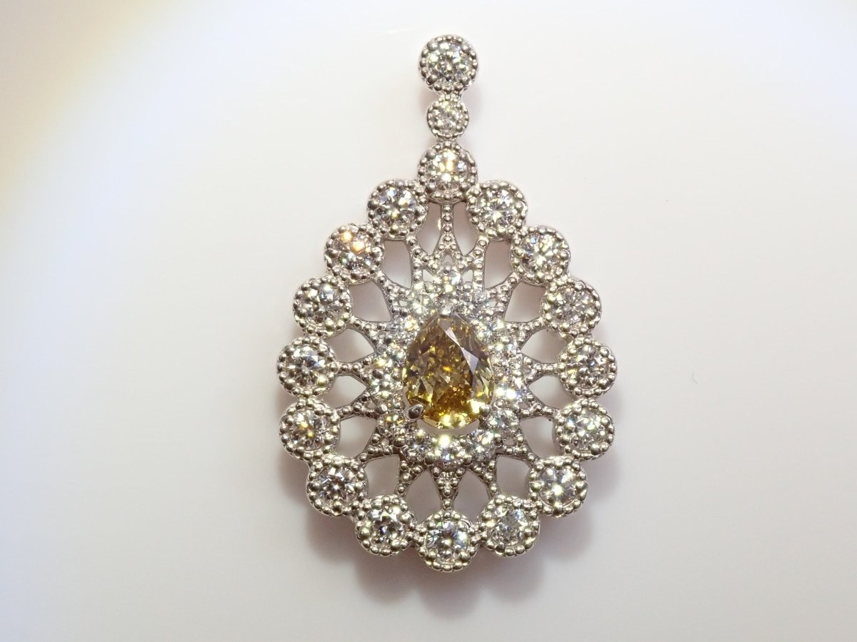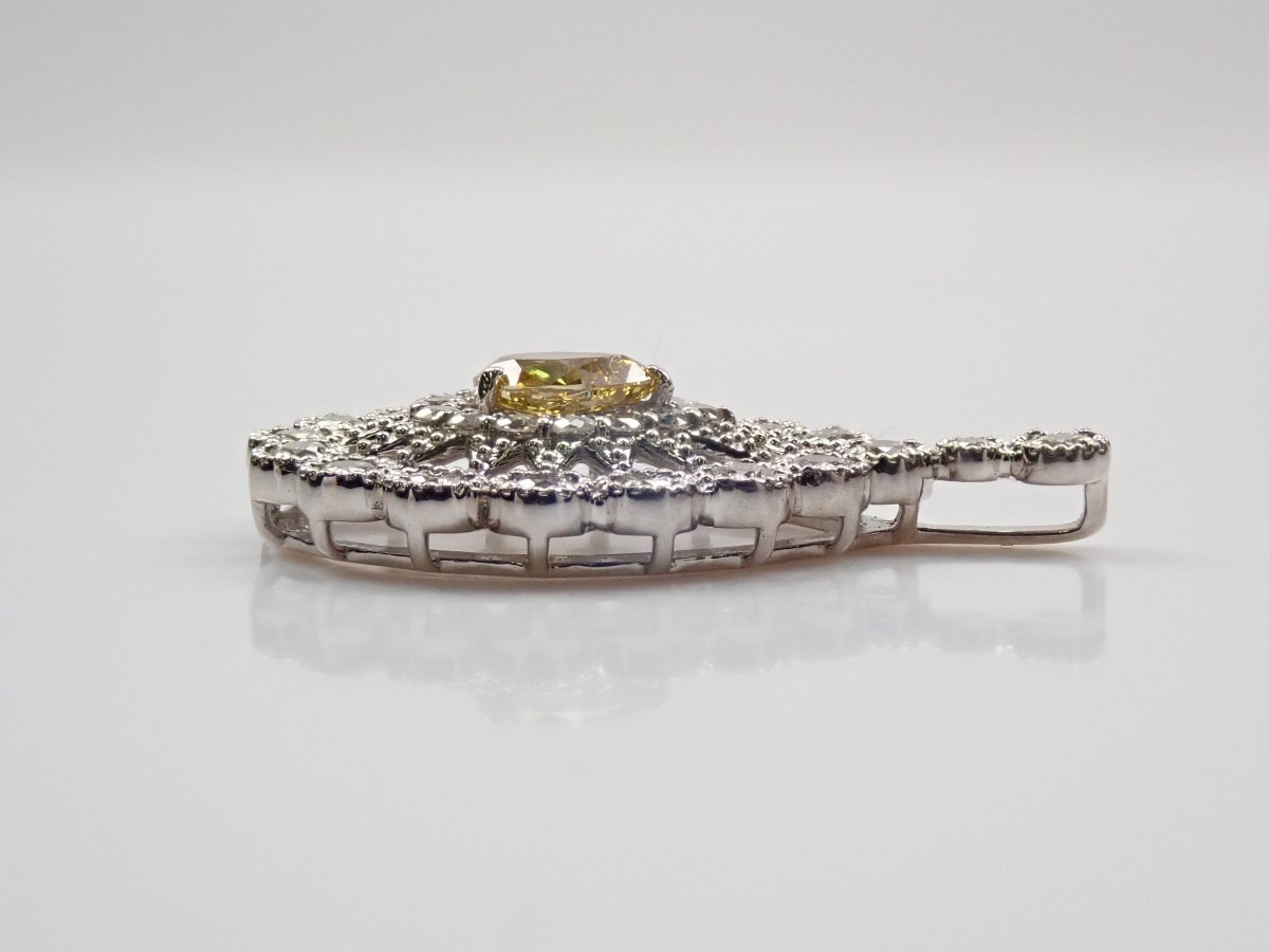 Pt950 黃鑽 0.312 克拉/鑽石 0.51 克拉吊墜 (VS-2)