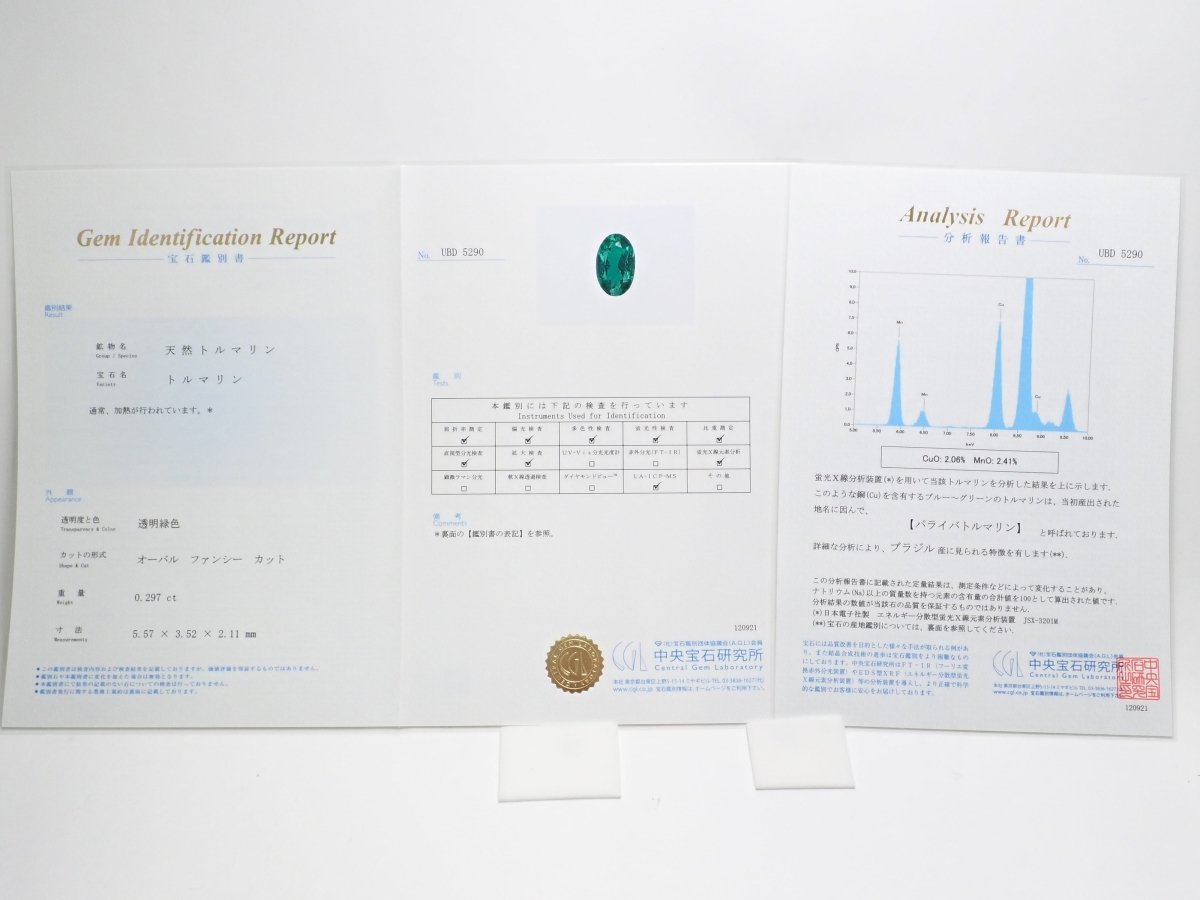 ・附件:鑑定書(中央寶石研究所(附分析報告))、盒子