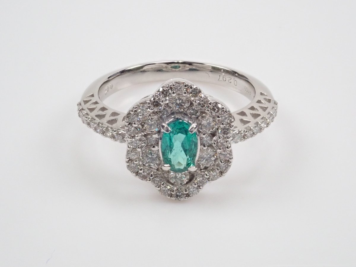 Pt900 巴西帕拉伊巴碧璽 0.297 克拉/鑽石 0.62 克拉 戒指 Nakahobu 報告